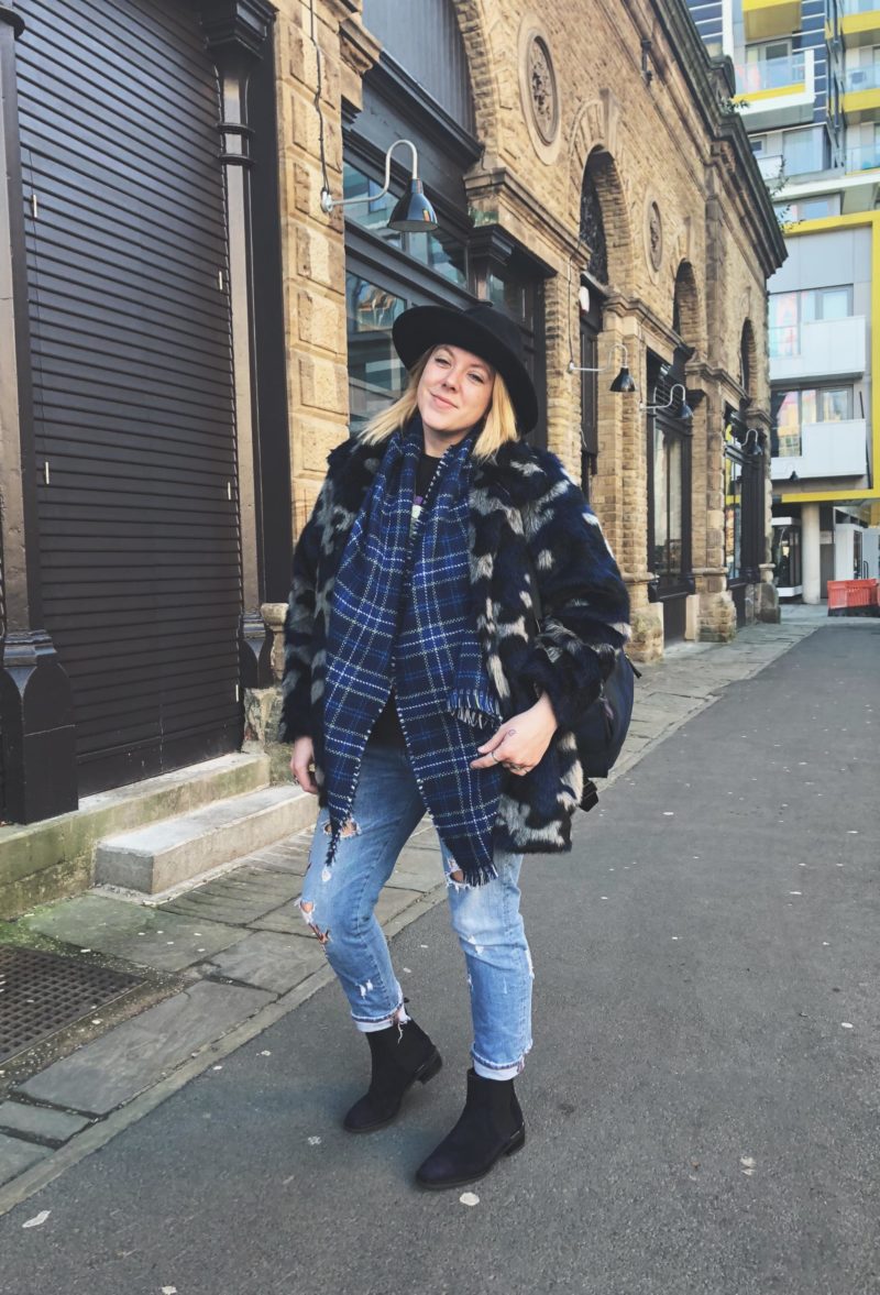 I really wanted a comfortable style for our Manchester trip and these Zara jeans, my Monki faux-fur coat, my Knomo bag and these Cara boots were ideal!