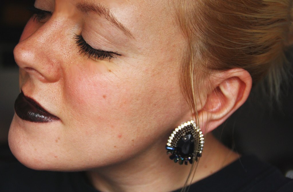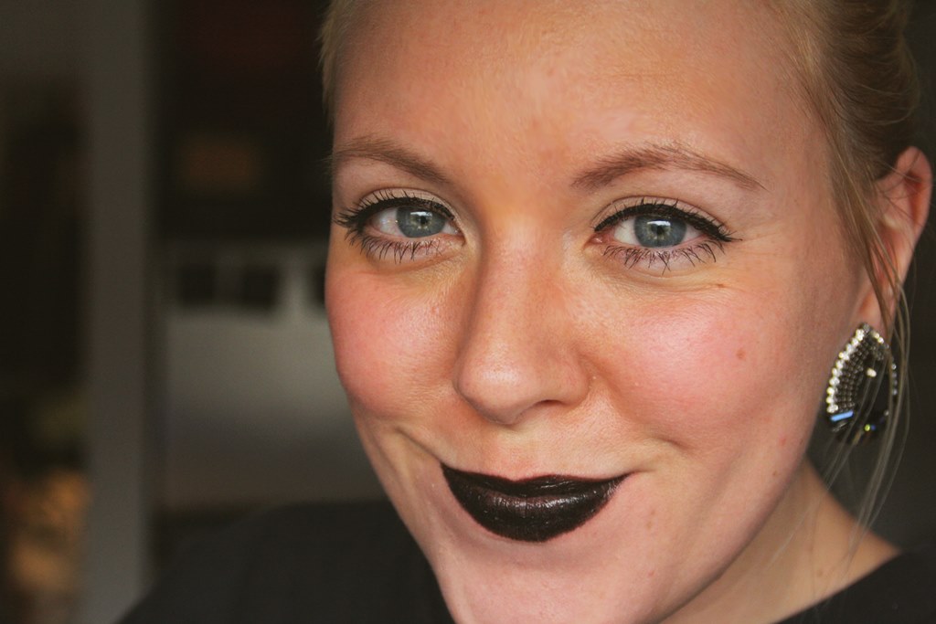 I think I’m not alone when you relate black makeup to Halloween but I wanted to wear this lipstick in a glamorous way that shows it can be worn all year round. For only £3.49, this lipstick is a complete steal and I love how it looks with my eyes and some statement earrings! You will need to apply it often as it is such a dark colour but you could always try a gloss over the top which will seal it and give your lips more kissable look. I am totally smitten with this lipstick and I will defo wear it for LFW next season as it looks too nice to only wear when the ghosts and ghouls are out and about.
