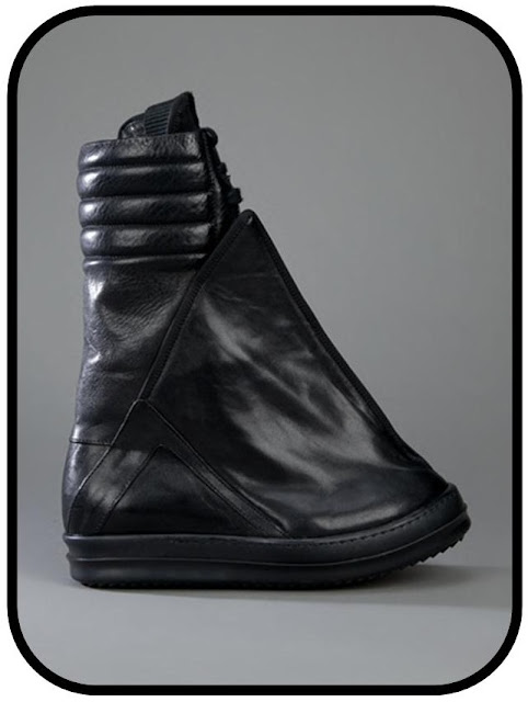 Shoe wise, there is so many different choices to look at. Givenchy have a lovely rubber riding style boot that is perfect for the festival season and for the Autumn Chill and Rick Owens has created some breathe-taking High-top trainers in a Basketball style and are great for an attention grabbing piece!