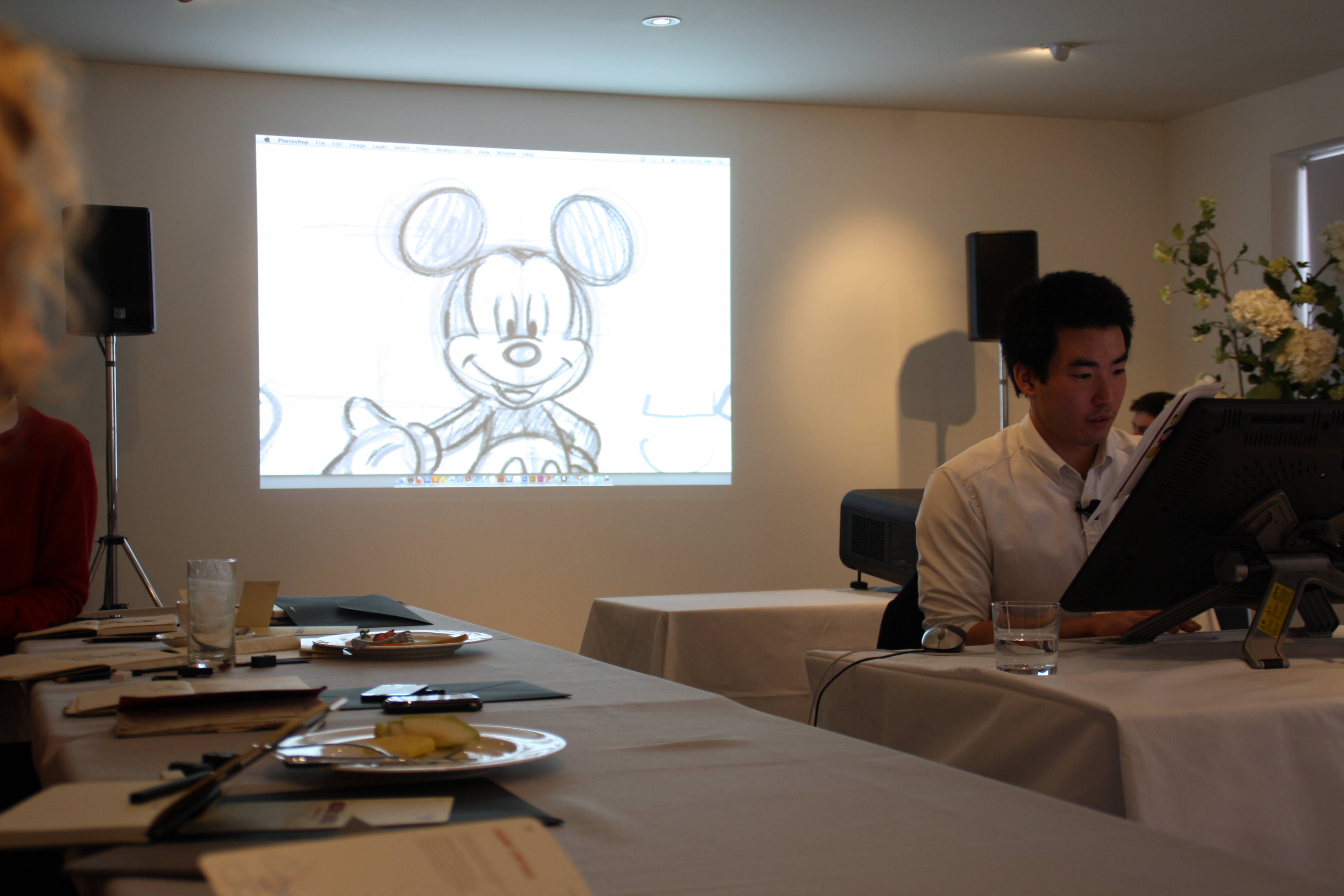 Disney invited some press people over to the Saatchi Gallery to have a Master class with Disney Artist Seiji Lim. The class was to promote the Moleskin notebook that Seiji has worked on with Disney. With Mickey’s decorating the front cover and a guide inside on how to draw the famous character, this notebook is a great item and gift for any Disney fan.