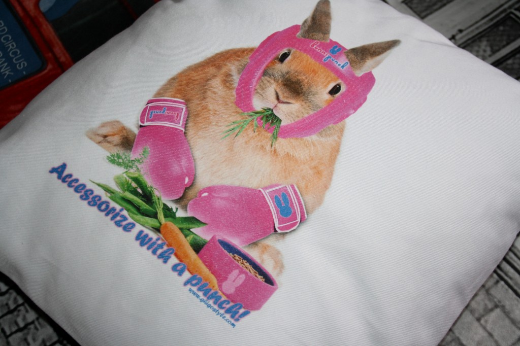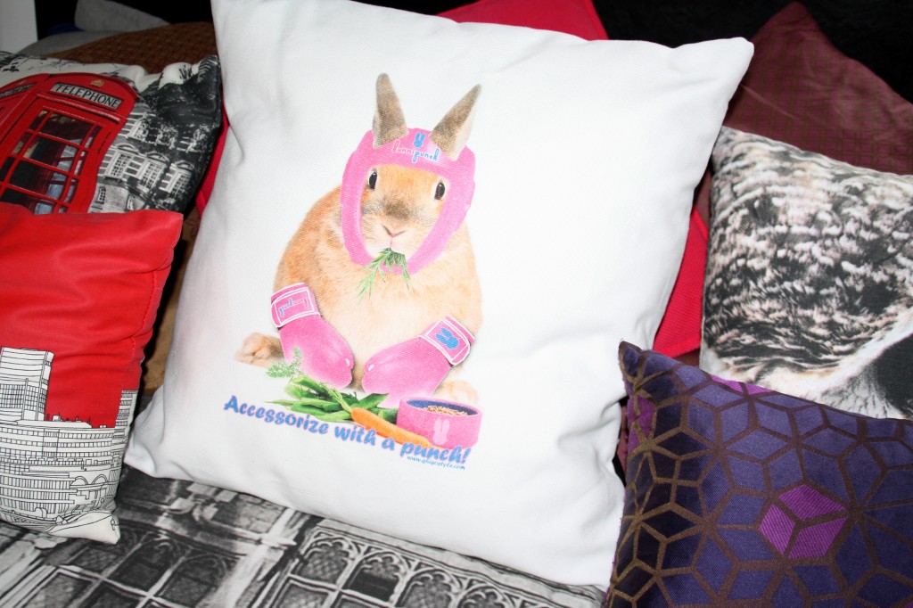 I love collaborating with brands and Ghigo Style have a great vision and love to create fun pieces. With designs dedicated to greats like Karl Lagerfeld, Anna Wintour and Coco Chanel, it was an honour to work with Ghigo Style and create this gorgeous pillow and t-shirt design that embraces Bunnipunch and its tough yet soft personality. Made from a very good cotton/canvas material, this pillow has taken pride on my bed and has attracted a lot of attention!