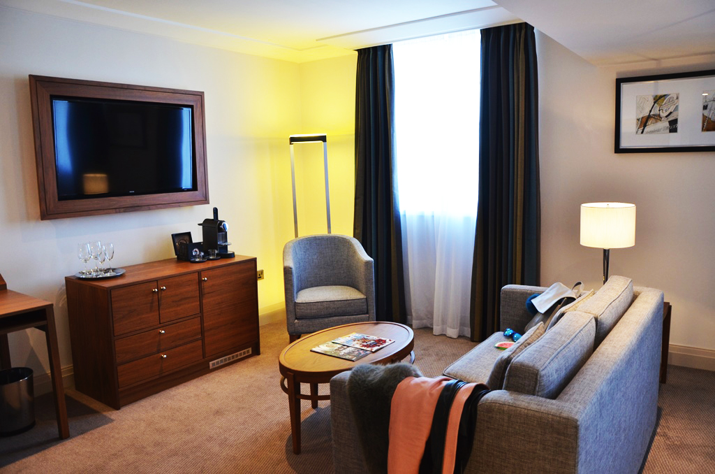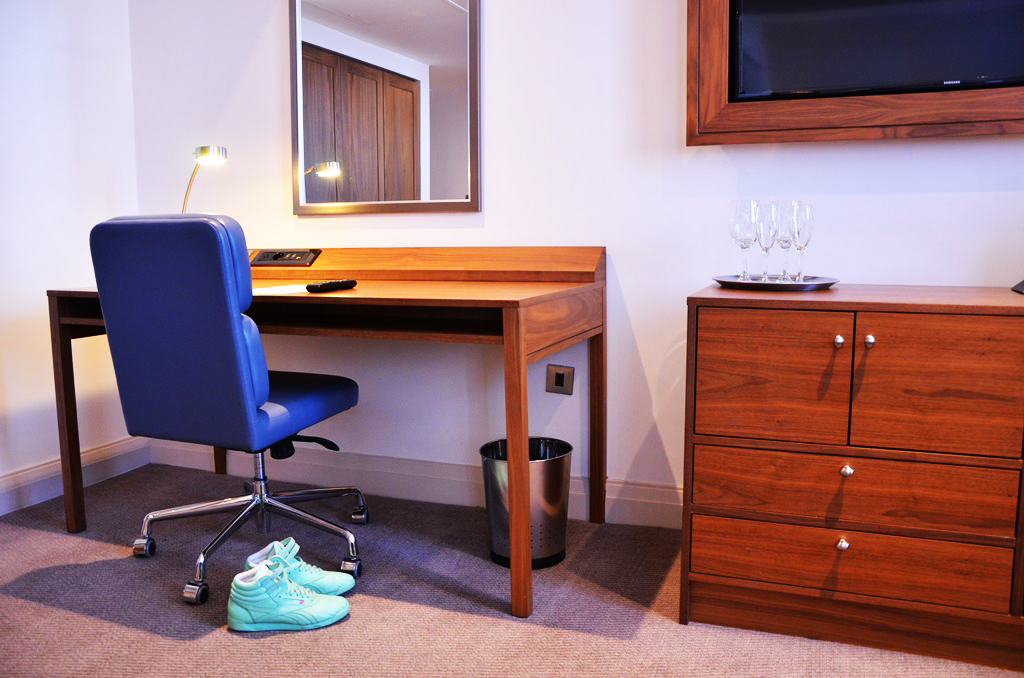 Our hotel room was pretty amazing too. With a simple yet designer-esque layout, there were plenty of features including the wooden work desk, huge flat screen TV, comfortable bed, complimentary mini bar and a luxury shower that had room for two. Even the view was pretty stunning and it was great to see Londoners passing by our window in the sunlight.
