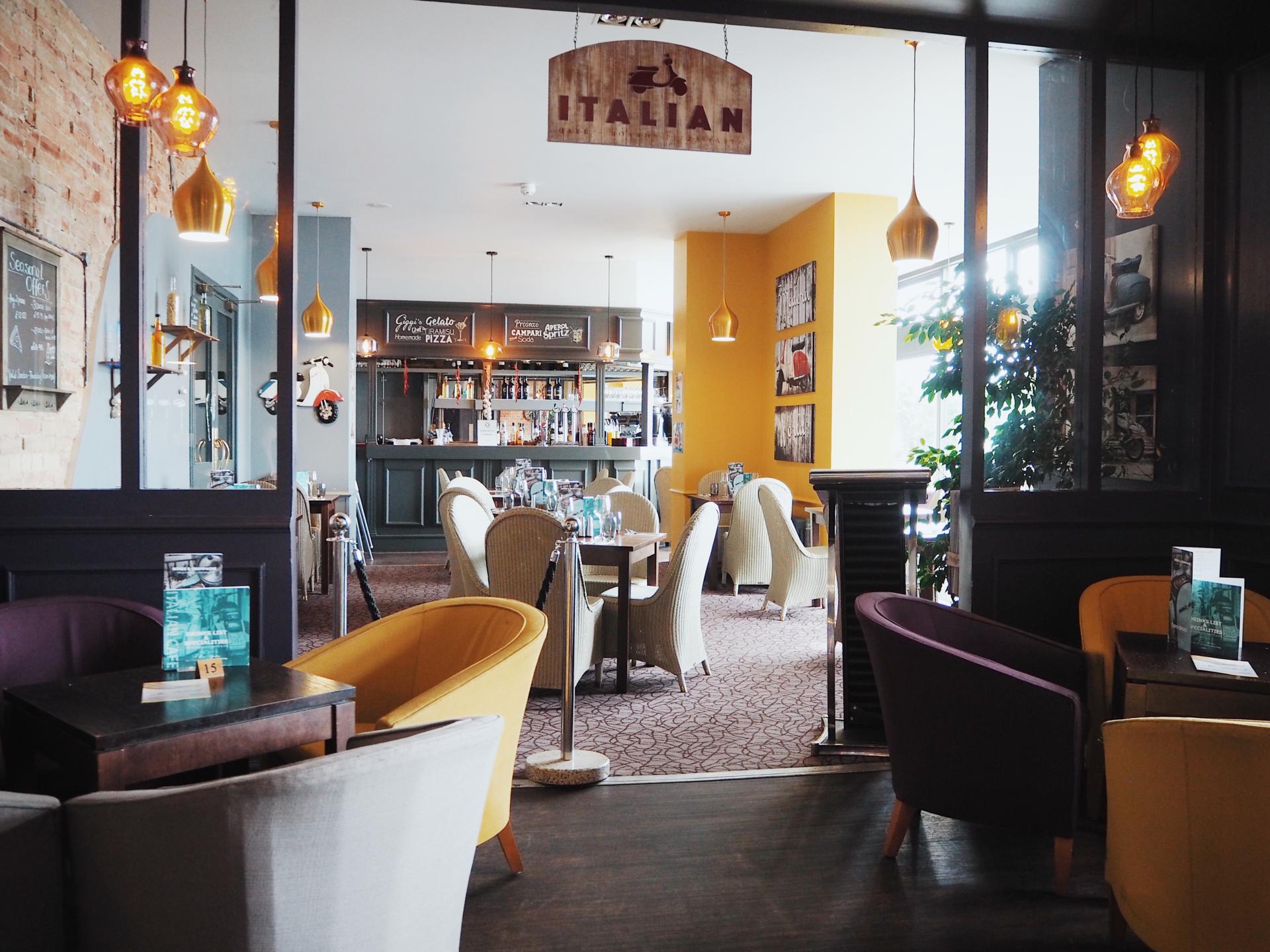 After we had a good catch-up with our family, Gary and I headed back to the hotel to dine at the Italian Café. Located on the ground floor, it is a colourful and fun restaurant that had classics on the menu including grilled ribeye steak, carbonara and Margherita pizza. I opted to try the veal cooked with parma ham and vegetables as I don’t normally have veal and Gary ordered the hot spicy ground beef, fresh chilli and mozzarella pizza.