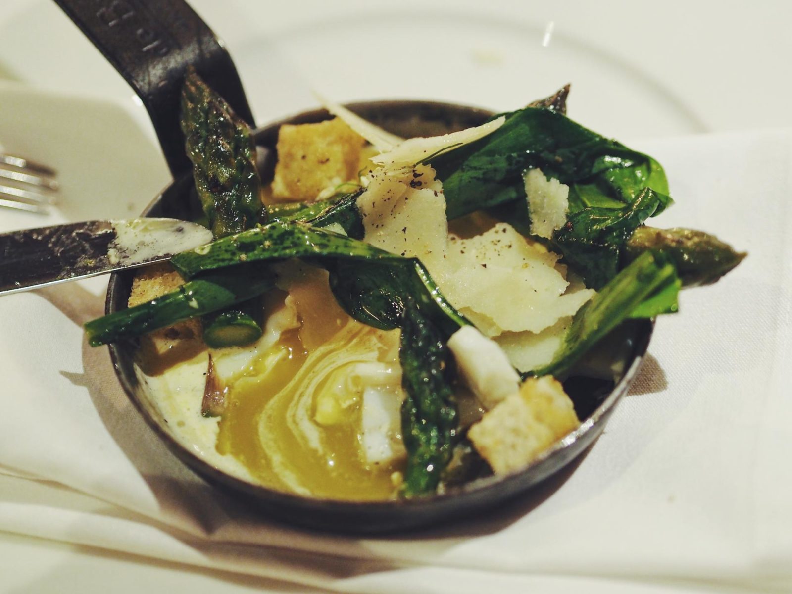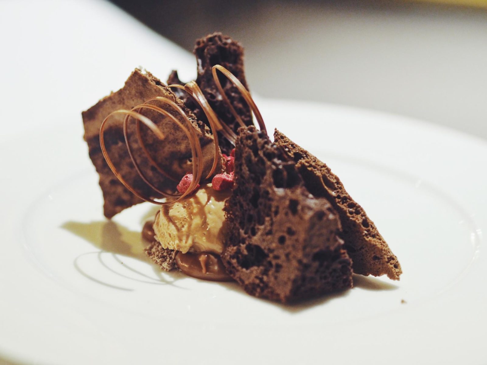 After scanning the menu, I ordered the Asparagus with duck egg and parmesan for a starter and the beef with mushrooms and foie gras potatoes. The beef was cooked to perfection, showing off its lovely red centre and my dessert made up of chocolate textures(think of a very cold Aero), was just magnificent and it left me wanting more and more!