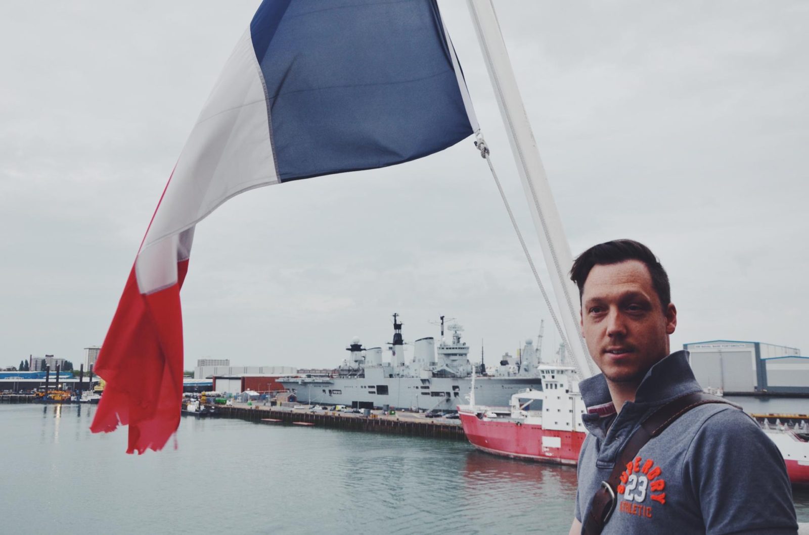 We all met up in the main reception area of he boat and had a chat with the team from Brittany Tourism and Brittany Ferries. We were due to meet in 40 mins or so for dinner so me and Gary took the opportunity to drop off our luggage in our cabin(which was comfortable and travel chic) and have an explore. Gary was pretty keen to see the Ferry cast off so we walked to the back of the boat and watched Portsmouth start to drift off. It was great seeing the French flag flapping in the English wind as we sailed slowly out to the channel.