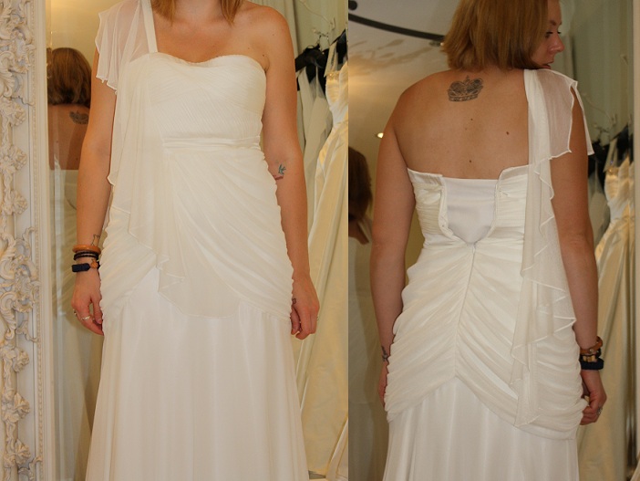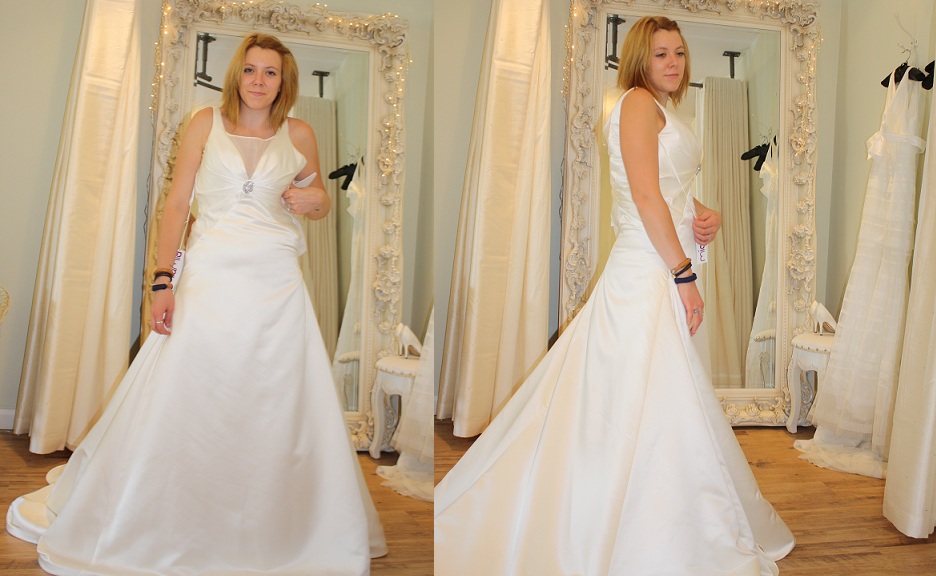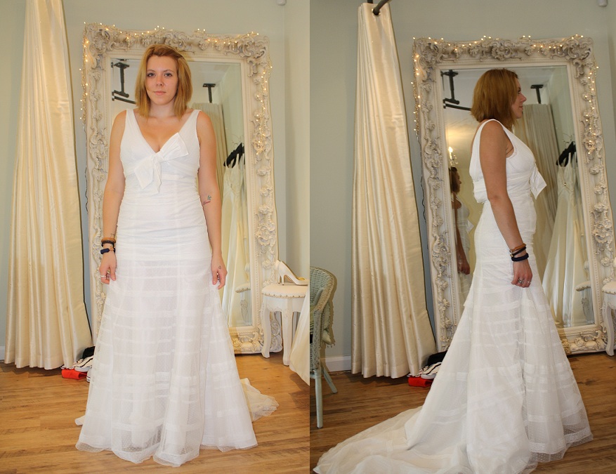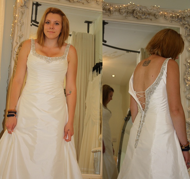 The First dress I tried on was definitely more traditional but I really like the embellishment on the front and the back. I did feel supported in this dress but it was a little too bridey for me!