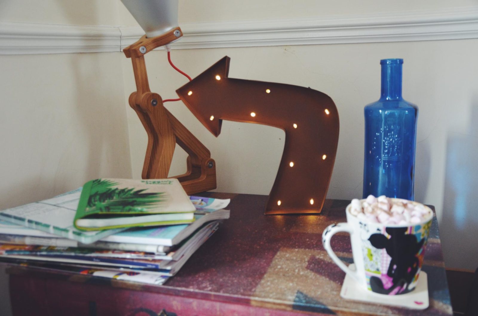 Lighting has come a long way from bed side lamps and shades and battery-powered lighting is a great way to add some magic to any room. I love this arrow design from I Just Love It. It takes AA batteries and I decided to keep it in our living room as we really needed something special in there. It has a real industrial look too which is great as this is a huge influence for me and Gary when we eventually decorate.
