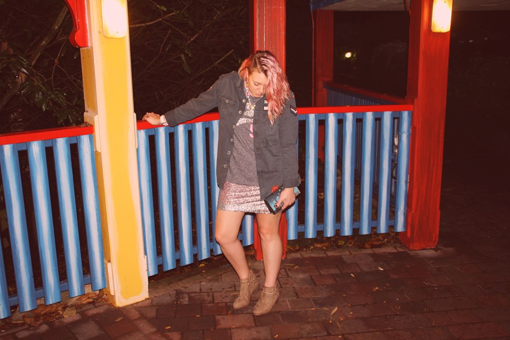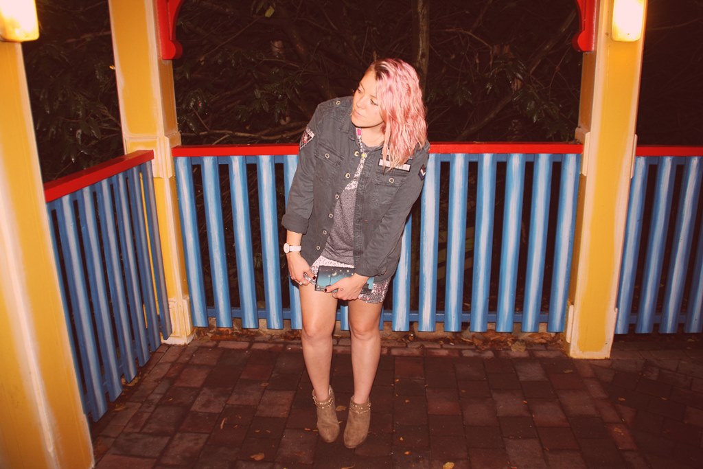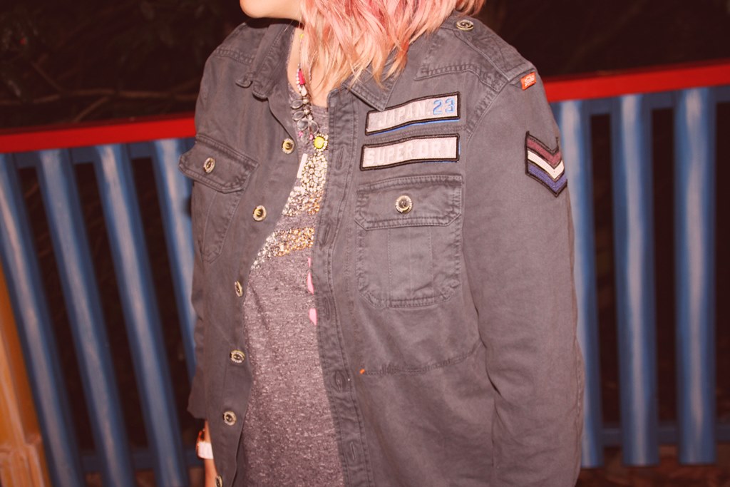 I wanted to experiment a little with my outfit here as I wanted to try out this gorgeous military inspired shirt from Superdry. Surprisingly it is meant to be a Men’s shirt but by getting a bigger size, it just looks like a beaten up old jacket and that was exactly the style I was going for. I really love the dark petrol shade of the thick fabric and the army style badges and wording, just gives it a really fun edge.