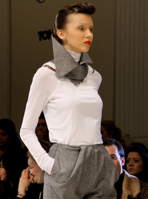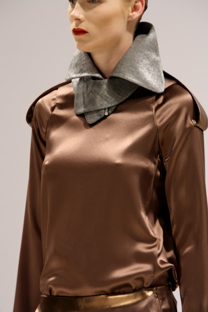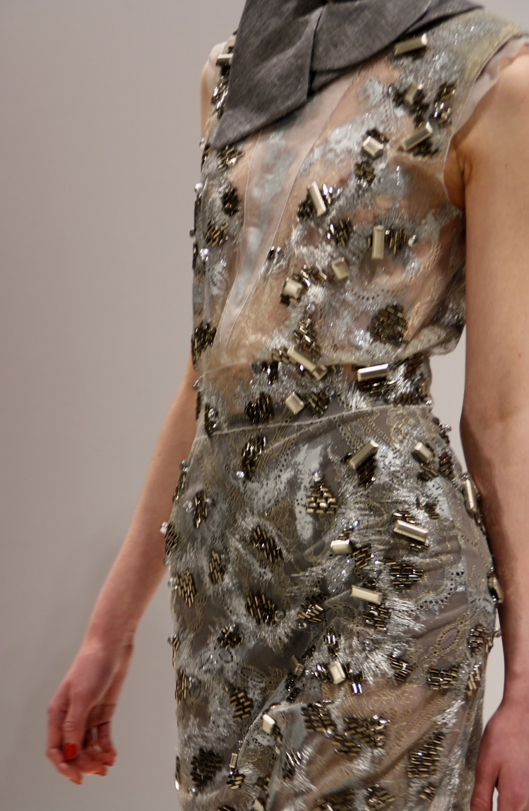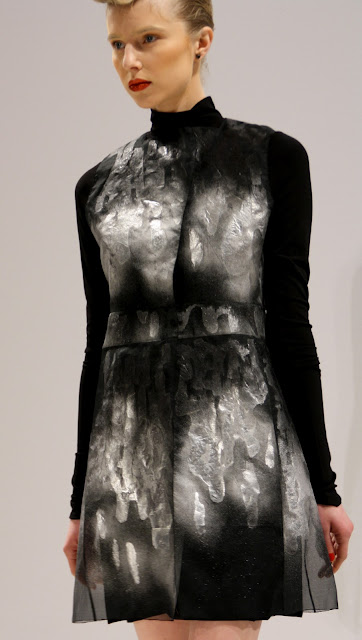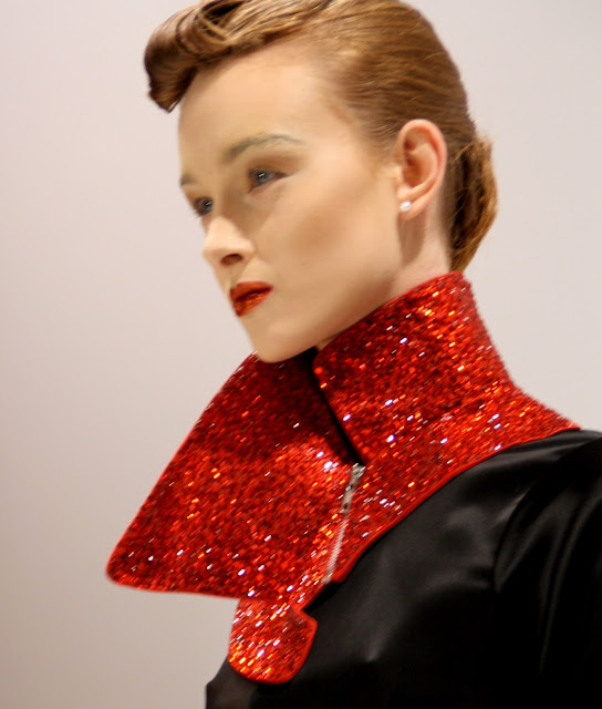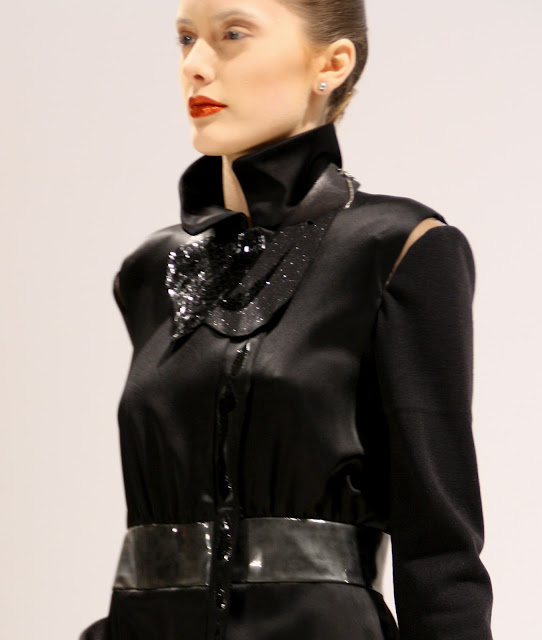 For an ultra feminine and visually stunning collection, Bernard Chandran is the master and commander of all things ‘Beauitful and lush’. As a designer who frequently embodies the womanly shape and celebrates their frames, Bernard has created a tailored yet strong evening based collection that is embellishment heavy and ideal for celebrating. With a simple colour pallet, embroidery and plastic inserts, Mr Chandran has a luxury A/W ahead of him with some very different extras.
