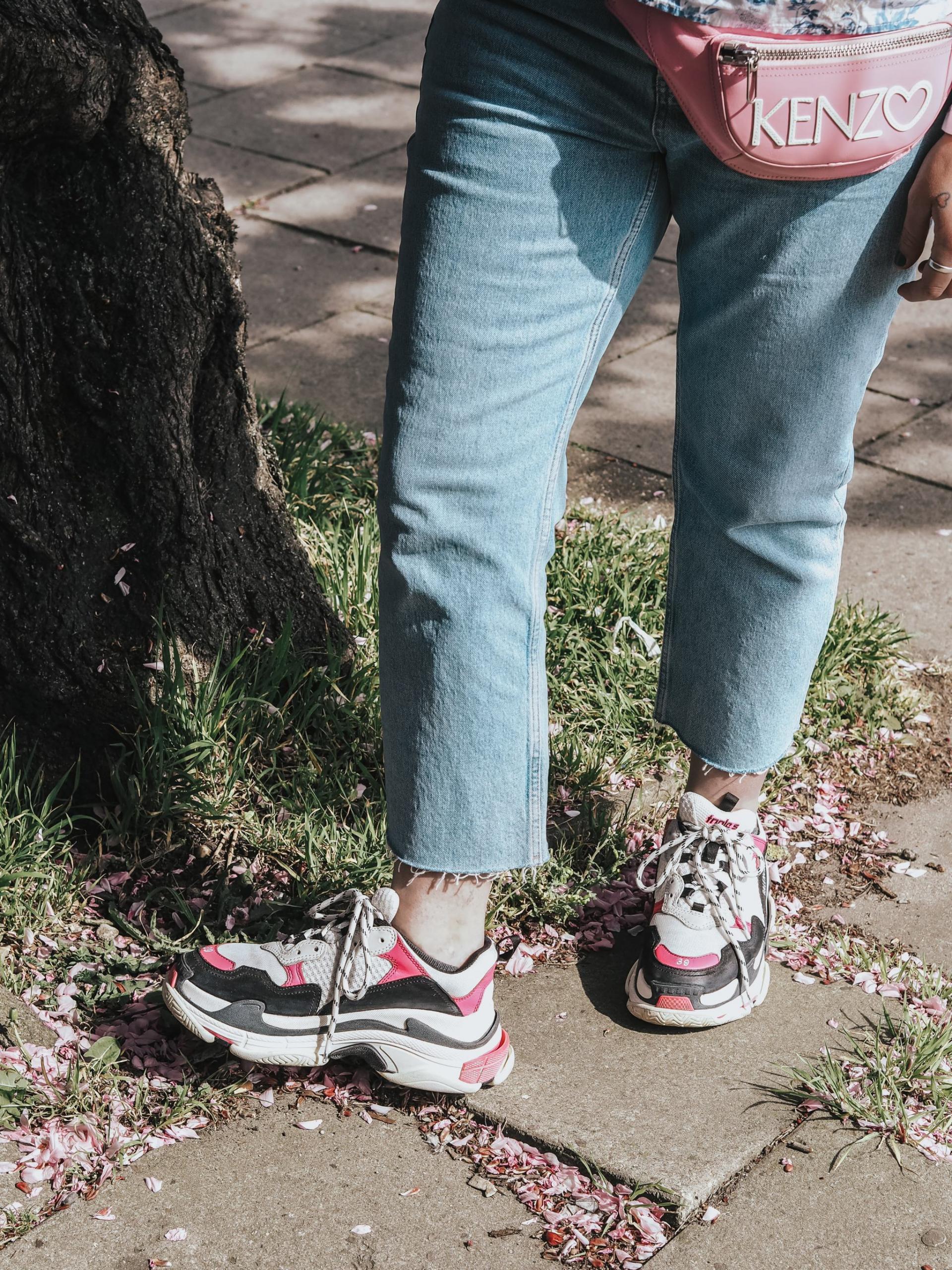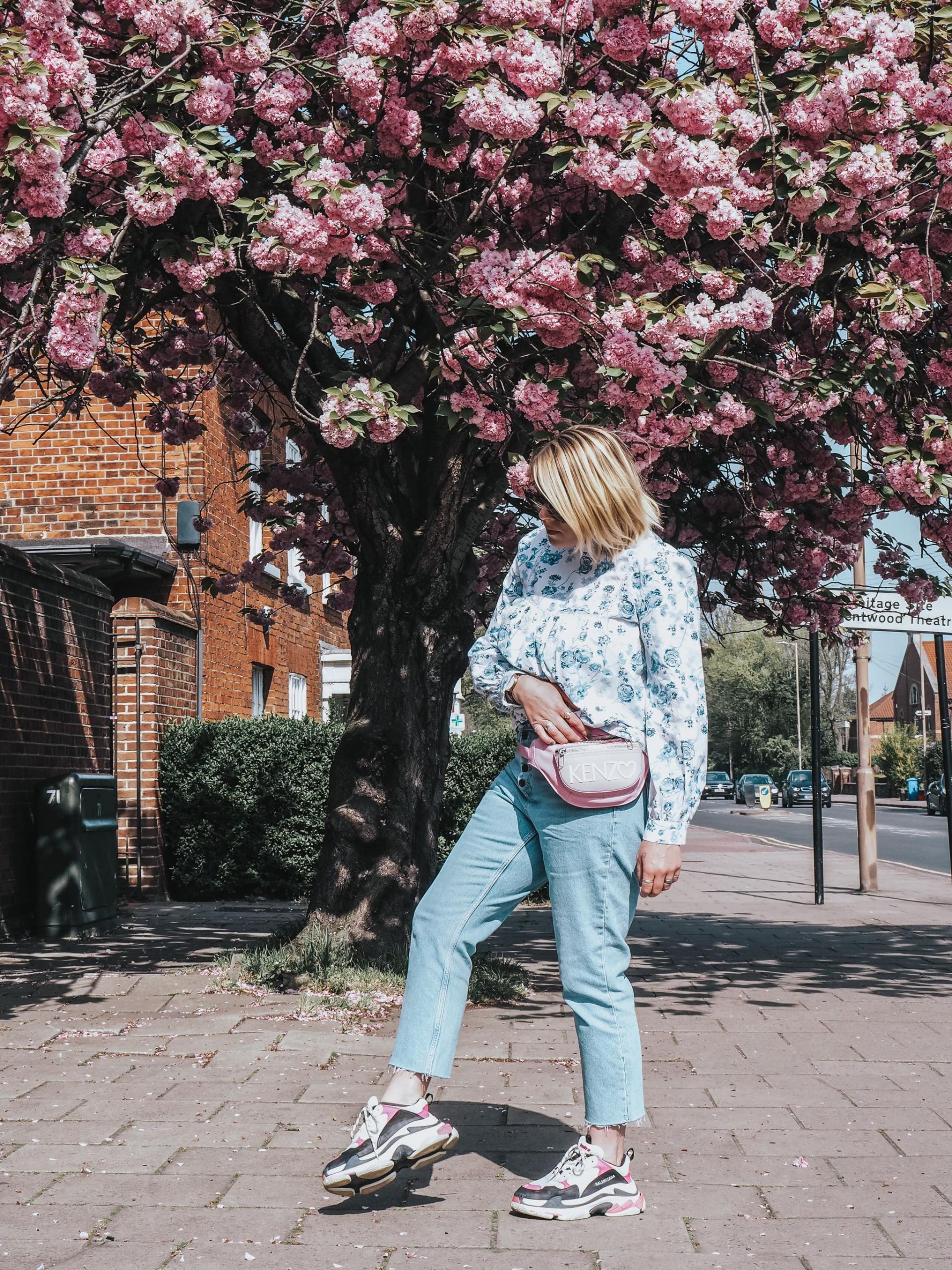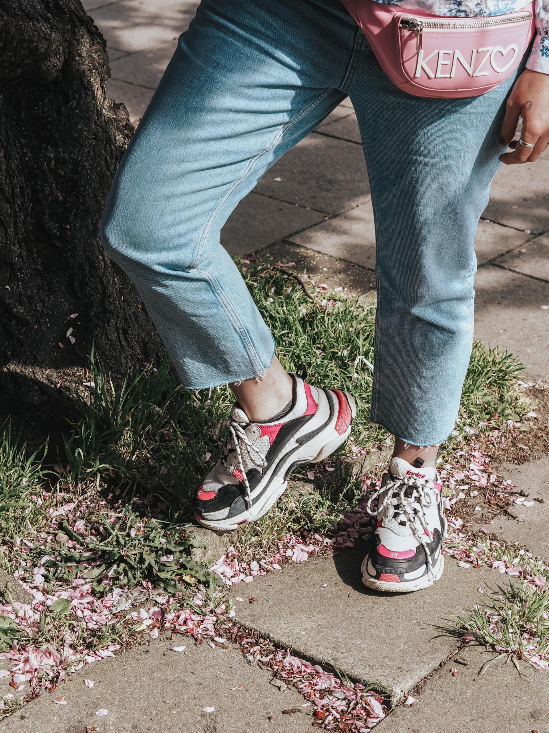 Sunglasses – Bailey Nelsen (similar here), blouse – Zara (similar here), Jeans – Topshop (here), Trainers – Balenciaga (here) and Bumbag/belt bag – Kenzo (similar here).