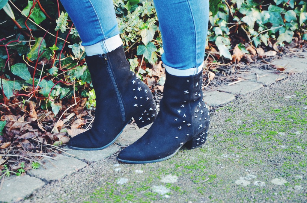 Last up, I had to show you these amazing boots I just got from Missguided! They really caught my eye recently and with their velvet look and stars they look totally bohemian! They are really wearable too with a comfortable heel and I adore how they look with this outfit here!