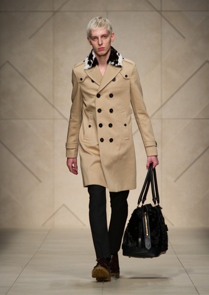 Burberry Menswear have taken the transition from Spring/Summer to Autumn/Winter in one easy whoop with Summer’s Color blocking trend injected into Coats, jackets and jumpers to continue the season as it means to go on. With a very strong heritage inspired feel that is taken from England’s past, the new products have been reinvented for a more modern approach such as the large puffa, Pea coat and the mac, shaped for the colder season in a beige and black button coat. This collection just shows that many old traditional English pieces can be teamed with Burberry’s 2011 Winter wardrobe, showing old and new pieces can be easily mixed.