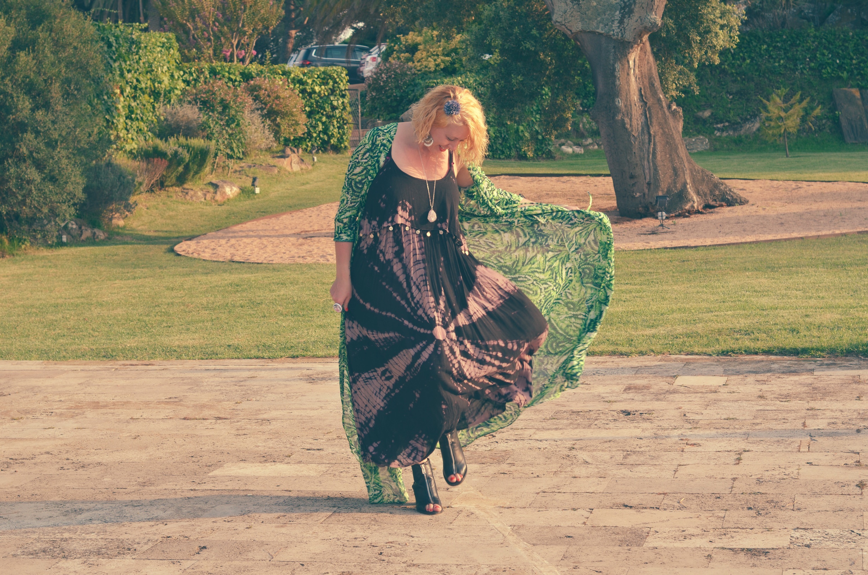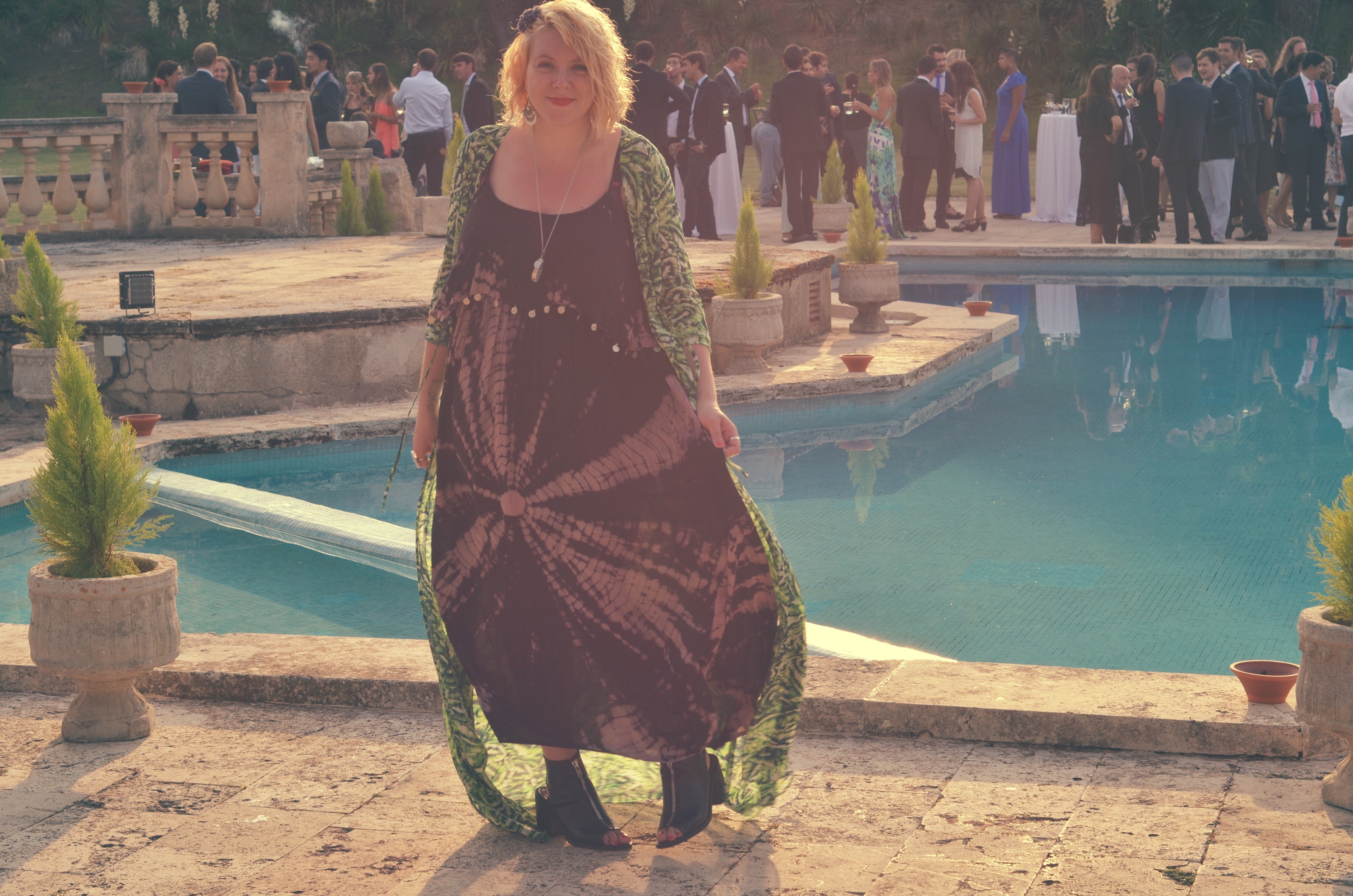I’m not one for normal wedding attire as it sometimes feels like a very stuffy affair but as we were going to Spain and it would be warm, I decided to wear this bohemian outfit to challenge the normal wedding styles and show off my personality. Even though this outfit is filled with relaxed cuts and really summer-esq prints it still looks quite smart with my black peep-roe boots and gold accessories.