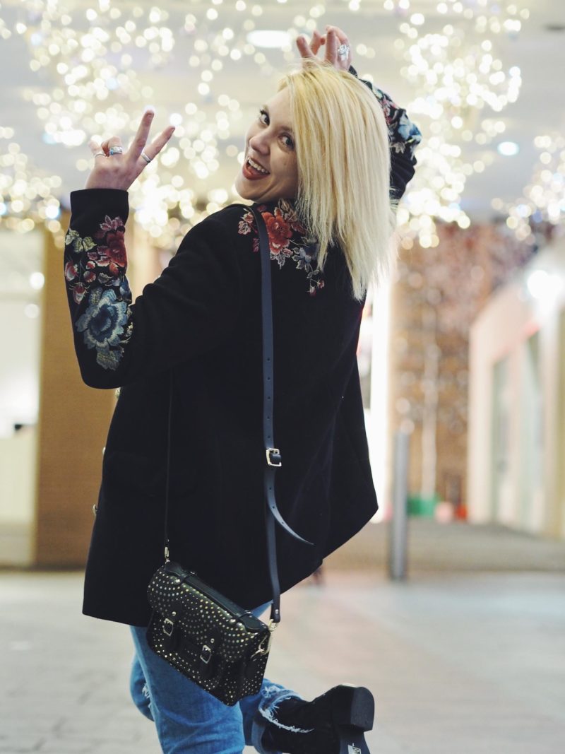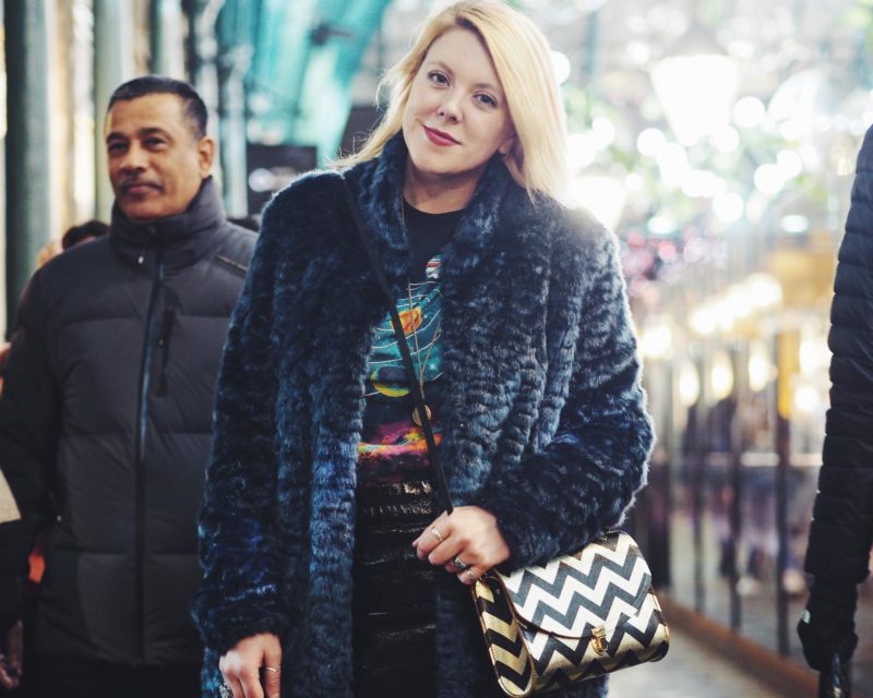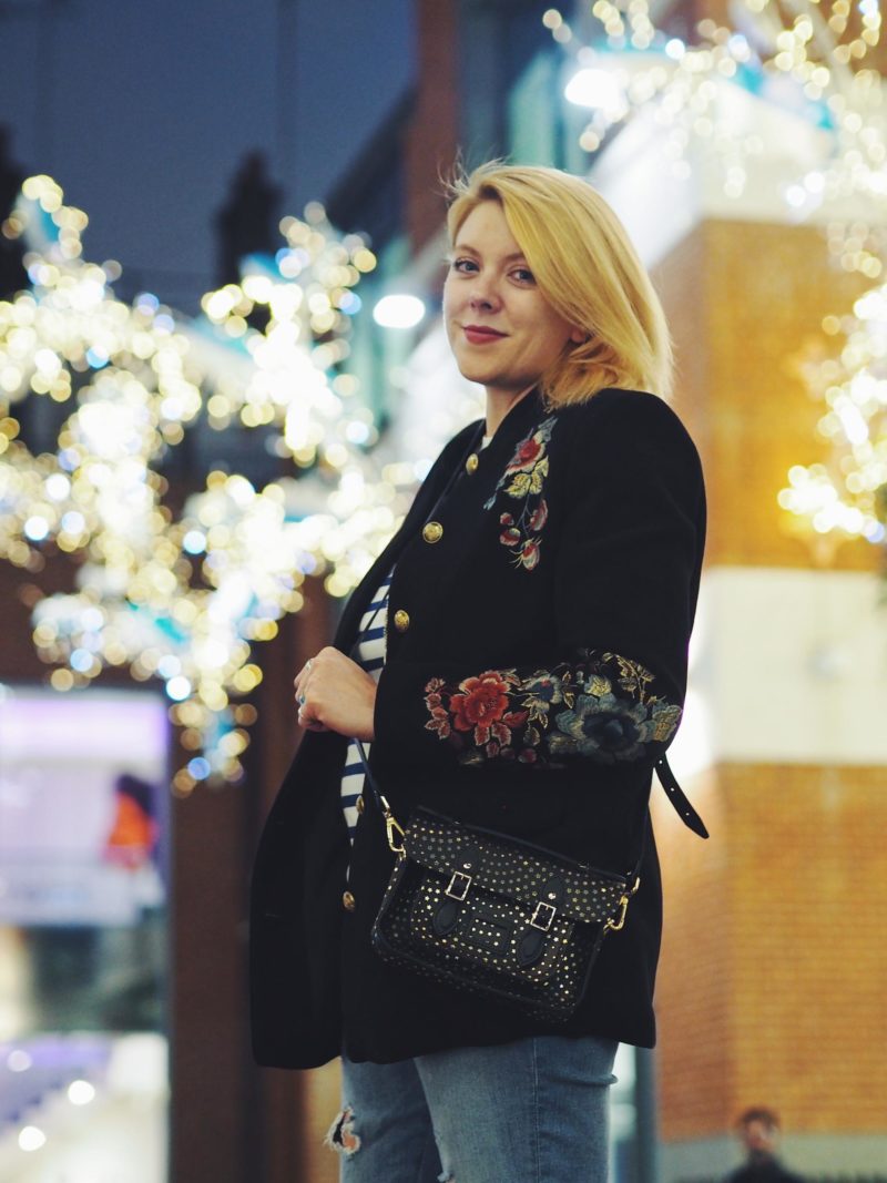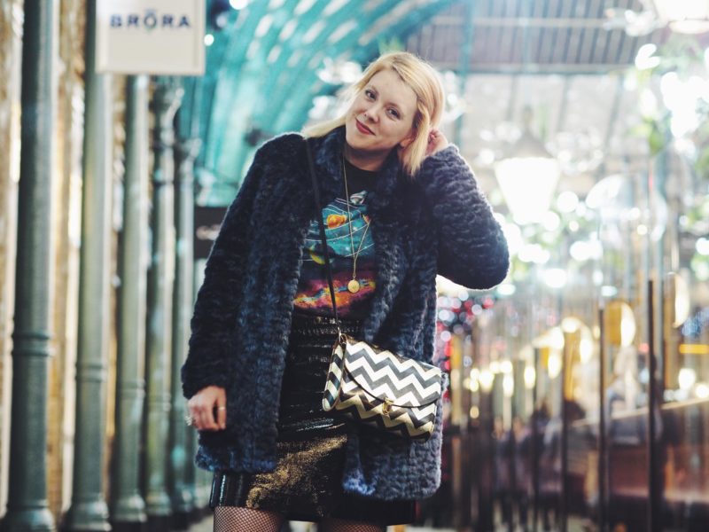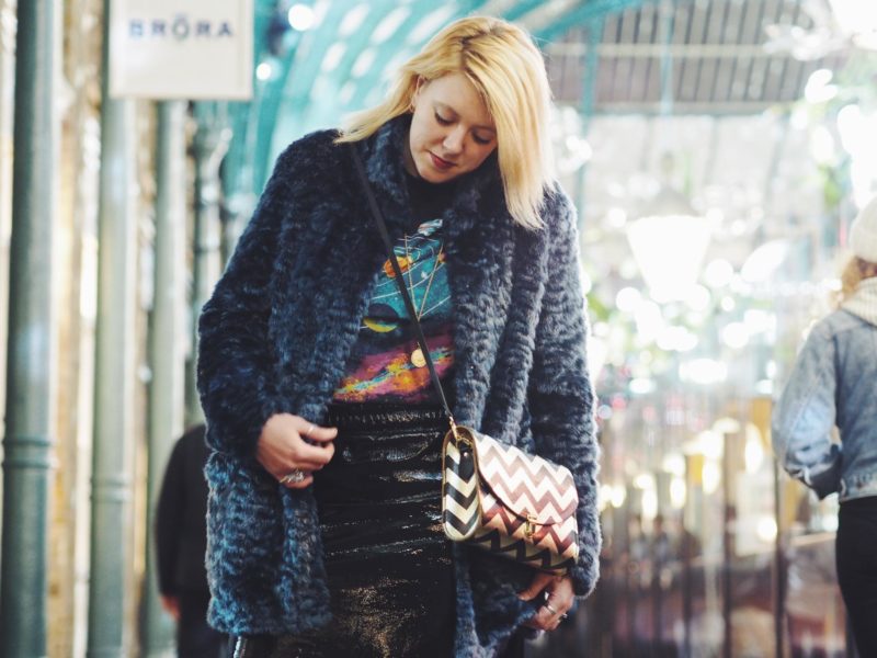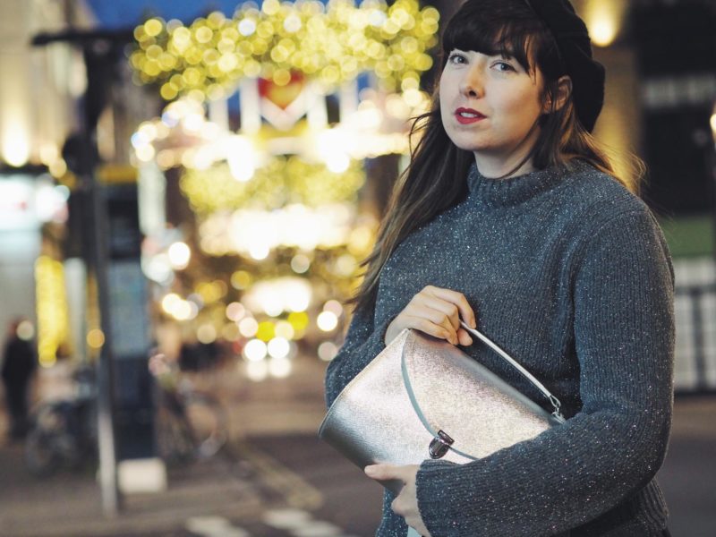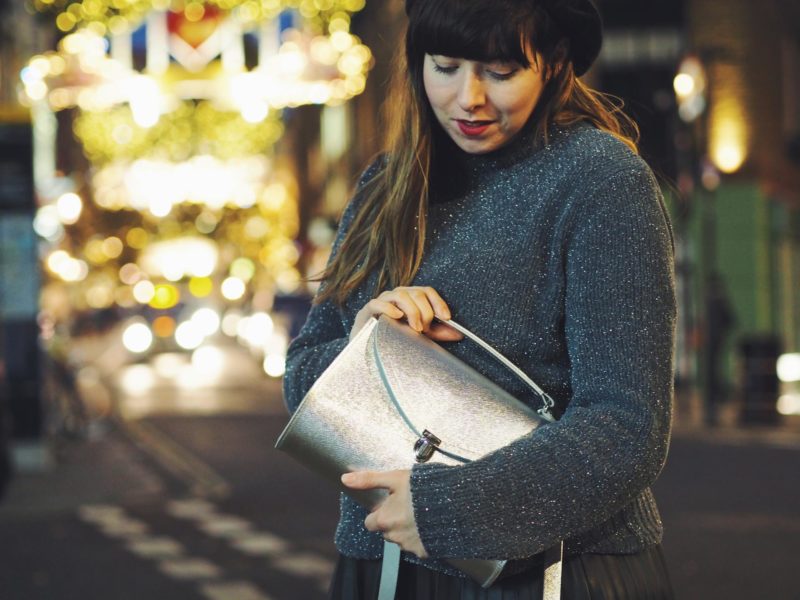 Such a cute bag! I’d wear it with a sleeveless, high neck black velvet top, dark skinny jeans & a pair of metallic flats… with little to no jewellery (just my wedding rings and some interesting metallic studs in the ears perhaps), a fresh blow-dry & a lovely warm coat on top if out & about! xx