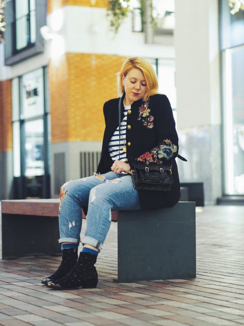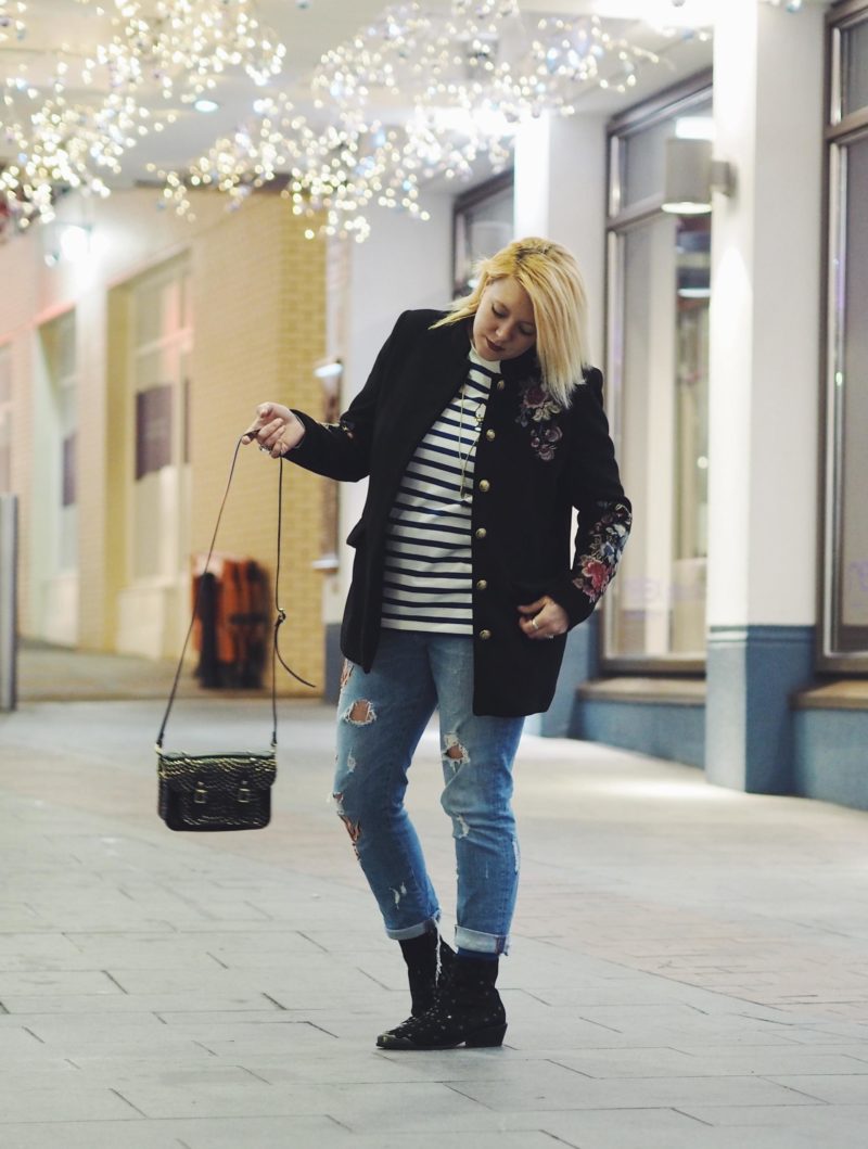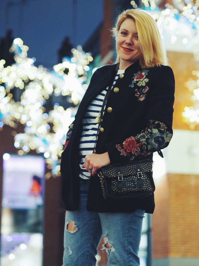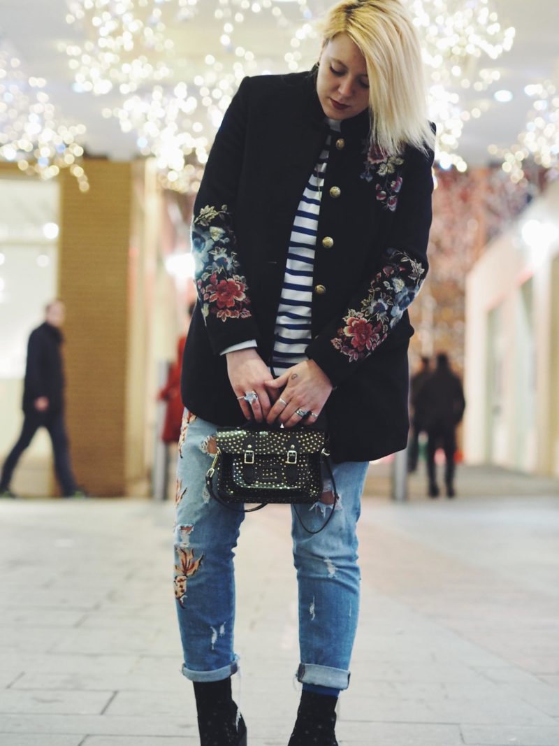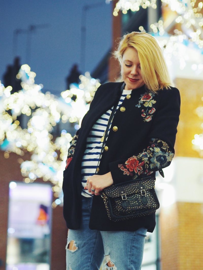 Such a cute bag! I’d wear it with a sleeveless, high neck black velvet top, dark skinny jeans & a pair of metallic flats… with little to no jewellery (just my wedding rings and some interesting metallic studs in the ears perhaps), a fresh blow-dry & a lovely warm coat on top if out & about! xx