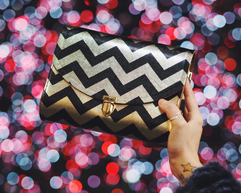 I would wear this bag for New Year’s Eve with a sequin dress and heels. It would be a perfect ouftif!