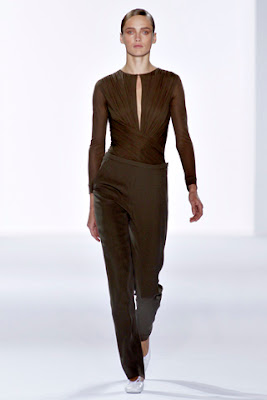 The Inspiration for Hannah MacGibbon’s next collection continues to be minimalism with a touch of futurist space girl with split front blouses and dresses, one shouldered Grecian style dresses in mink and white was a massive feature with wrap round blouses, tailored trousers, mesh jackets, dresses and footwear.