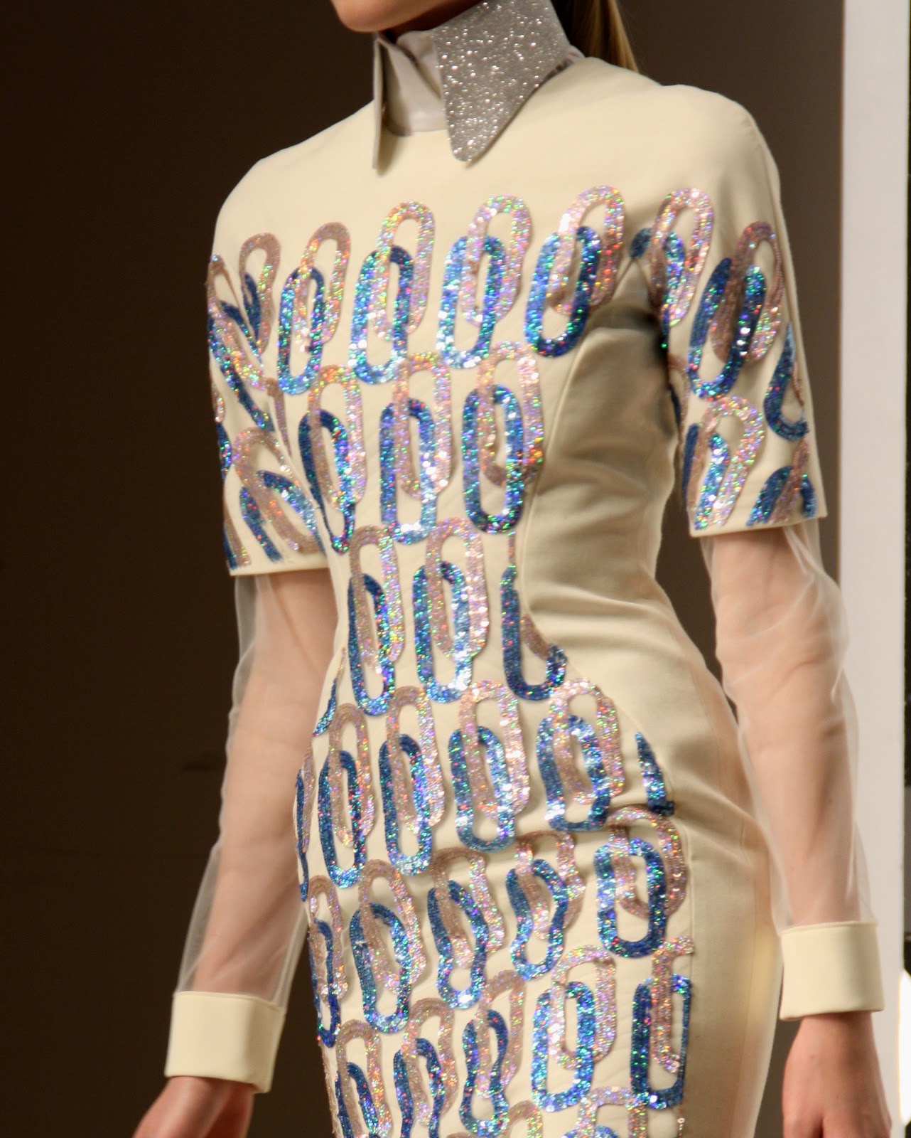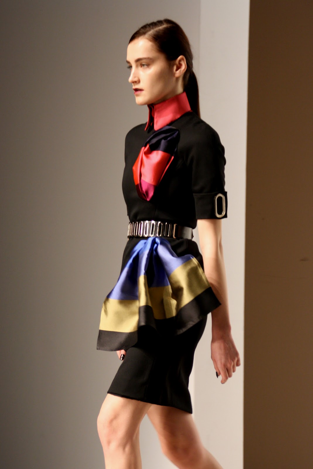 Sports Lux and evening wear have joined together for David Koma’s A/W 2012 collection. With mental loop details, cut out bodies and glitter, David’s new collection is original, dynamic and above all, feminine. With a slight 80’s feel with kick frills, clashing colours and mesh sleeves, Mr Koma really has moved on from this perplex fun collection from S/S 2012 and I love it.
