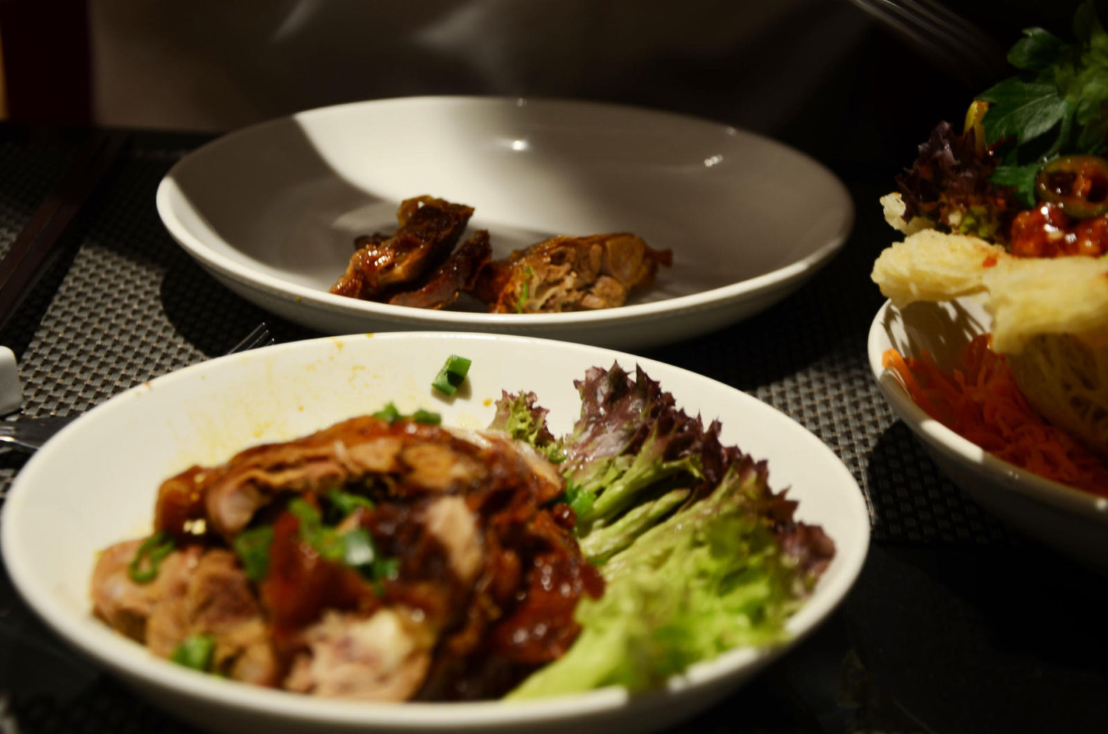 For our mains we ordered the Traditional cantonese roast duck with soy sauce, crispy shredded beef with chilli, Fried noodles with beanshoots and the classic egg fried rice. We have both been huge fans of duck for ages so it was great to try that with the soy sauce. The meat tender, tasty and bursting with flavour and there wasn’t too much fat either as ducks can be like that. The chilli beef was heaven served in a birds nest and the sauce was devine too. The noodles were a great addition especially if you’re vegetarian and the rice was soft and fluffy. I’m not sure what dish I preferred more but all tasted supreme when I gobbled them up with chopsticks.