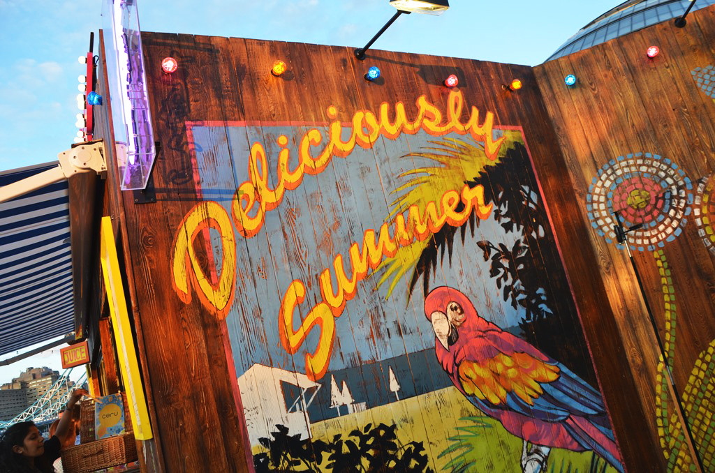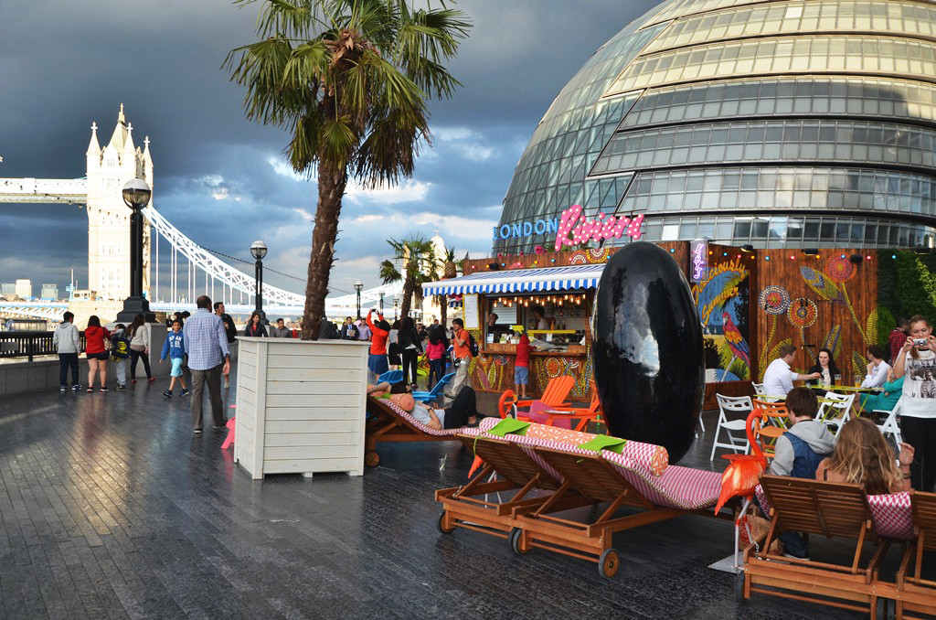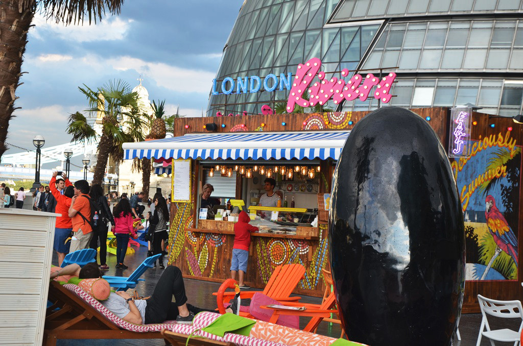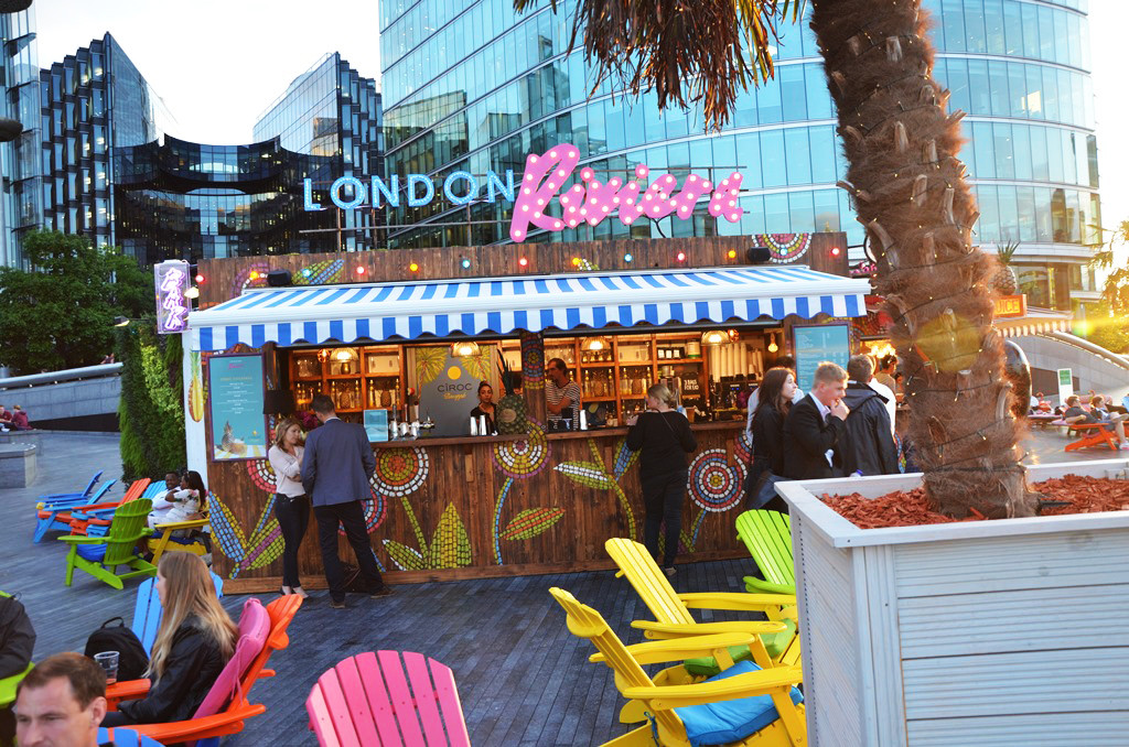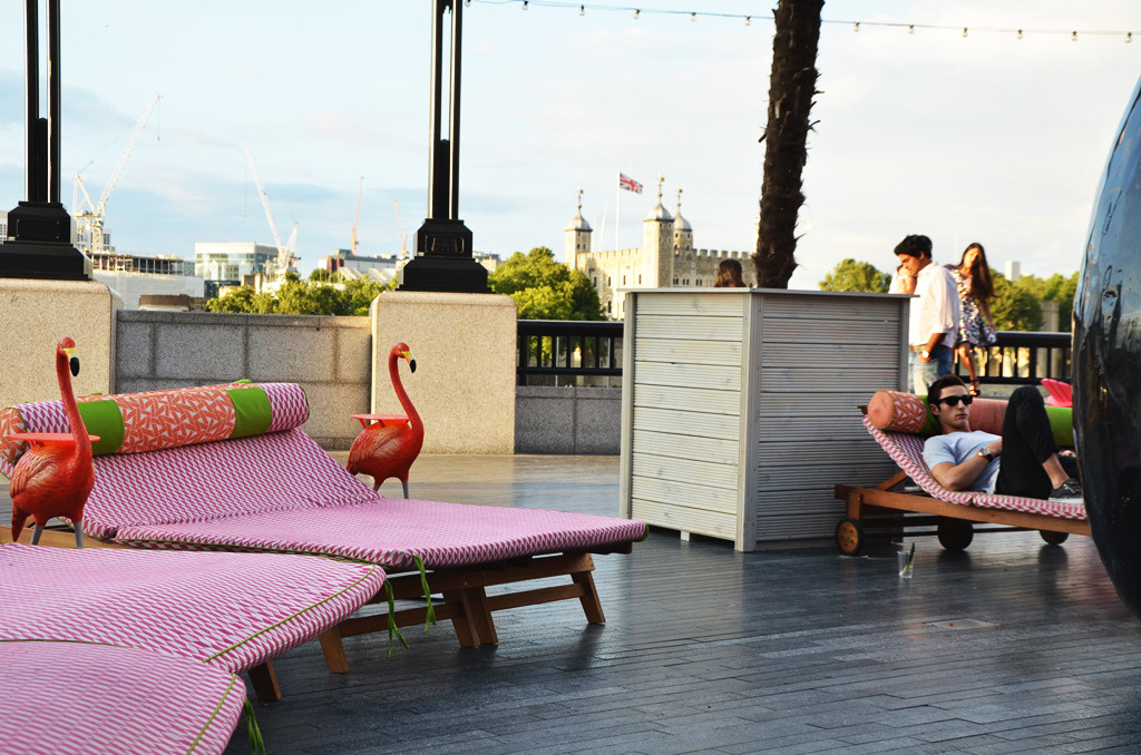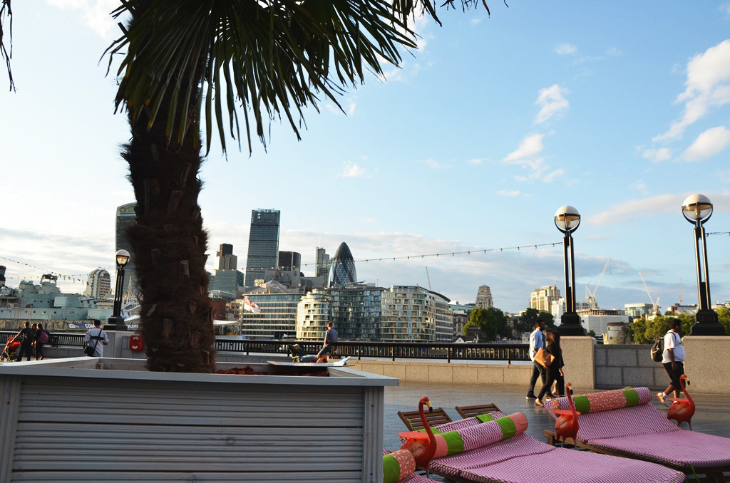 With our British weather all over the place, enjoying those odd spots of sun and light breezy evenings are sacred. Pop up restaurants and cinemas are helping get us outside more and among these saviours is the London Riviera. Situated along South Bank just by the Mayor’s office, this tropical venture really embraces that reflexed summer feel that all Londoners crave. Double sun loungers and colourful tables instantly give a holiday feel to this pop-up and with cute flamingo tables(I really need one of these) and uber friendly staff, it’s the perfect place to chill out with your mates after work.