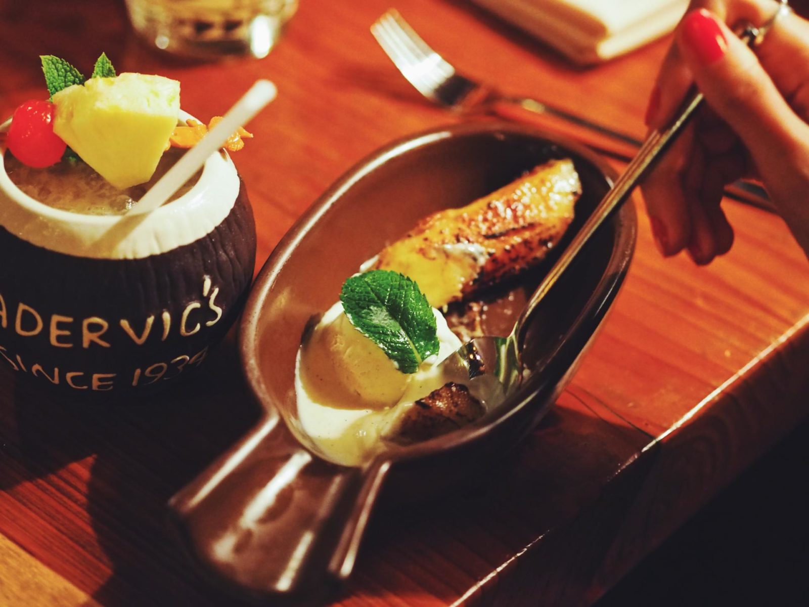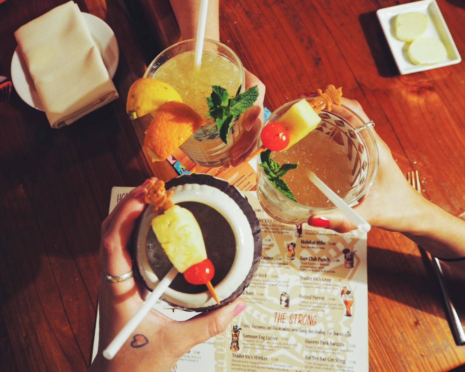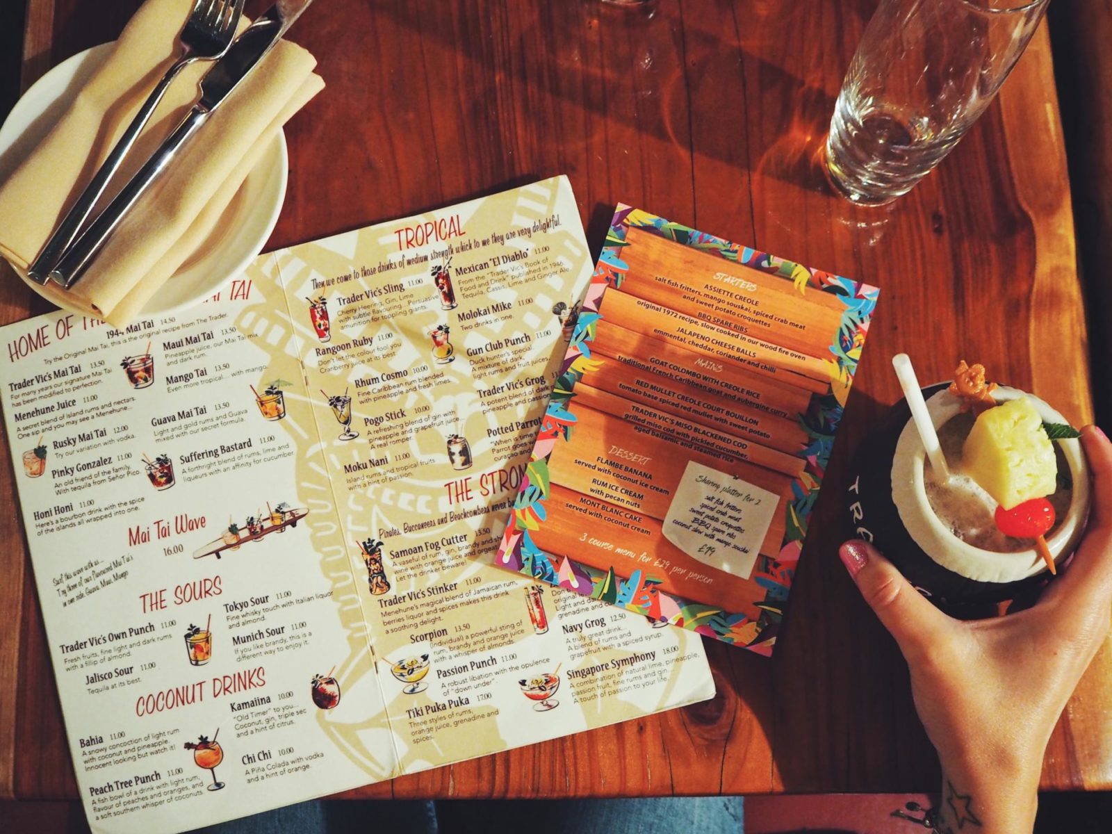 And that’s where Trader Vic’s came in. Located right on Park Lane in the London Hilton hotel, this restaurant was the perfect place to enjoy some food and have a girlie chatter with cocktails. It also had the right slice of the tropics too which was well needed as the sun doesn’t show itself as much in autumn.