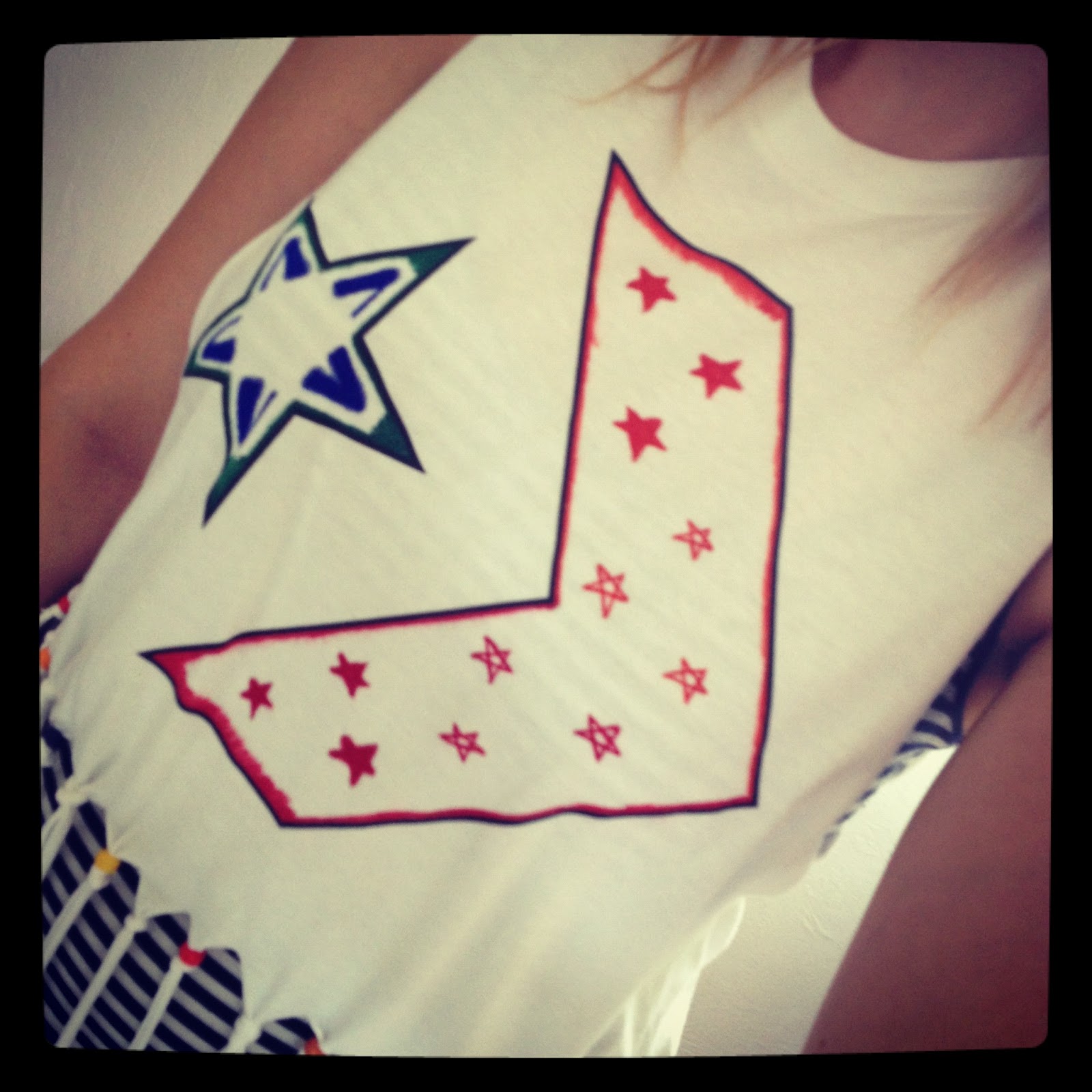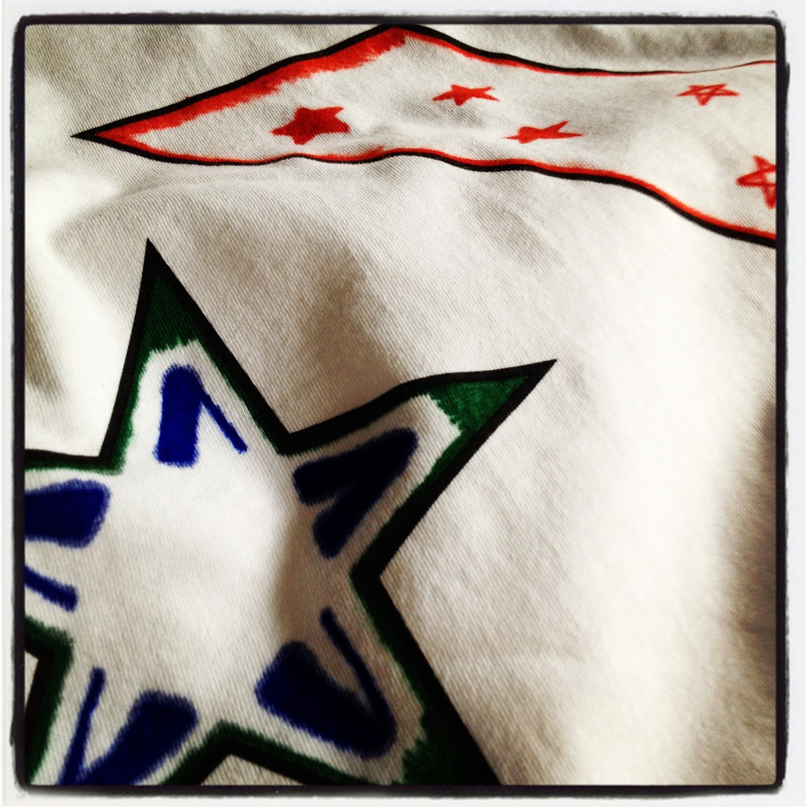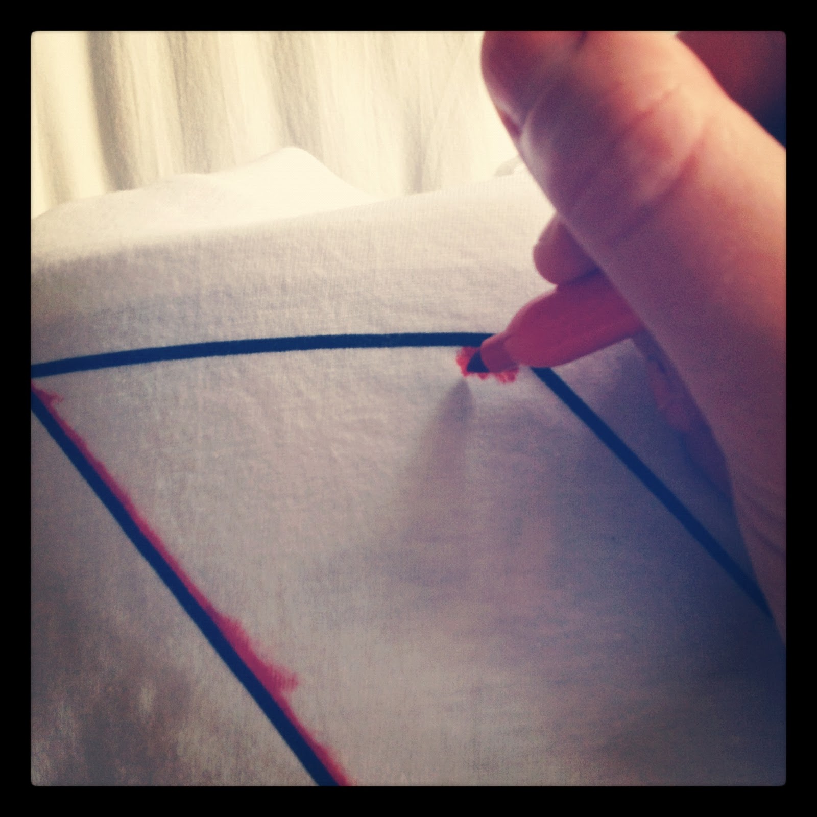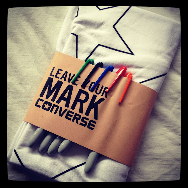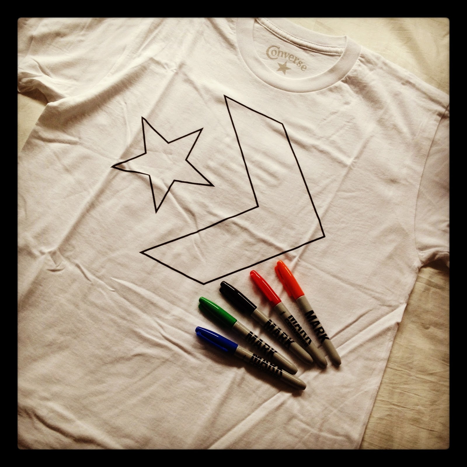 So starting off, I used the fabric pens provided by Converse and coloured in the shapes on the Tee……