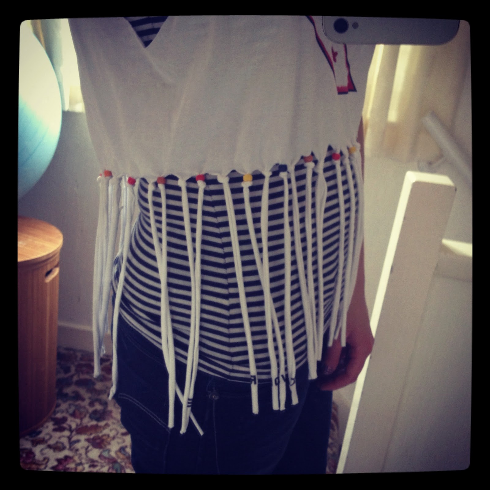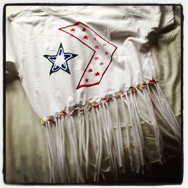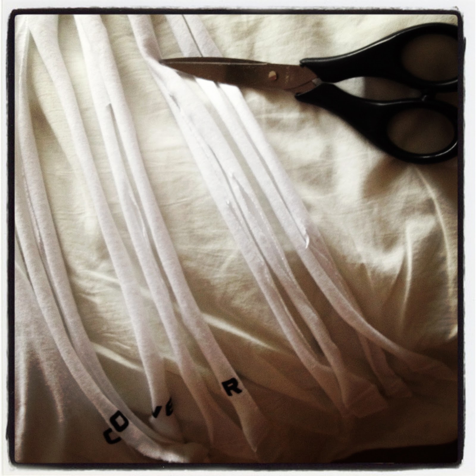 Once the colouring was finished, I decided to create tassel’s at the bottom of the T-shirt. So with that in mind, I made sure the front and back of the T-shirt were together and cut them into sections.