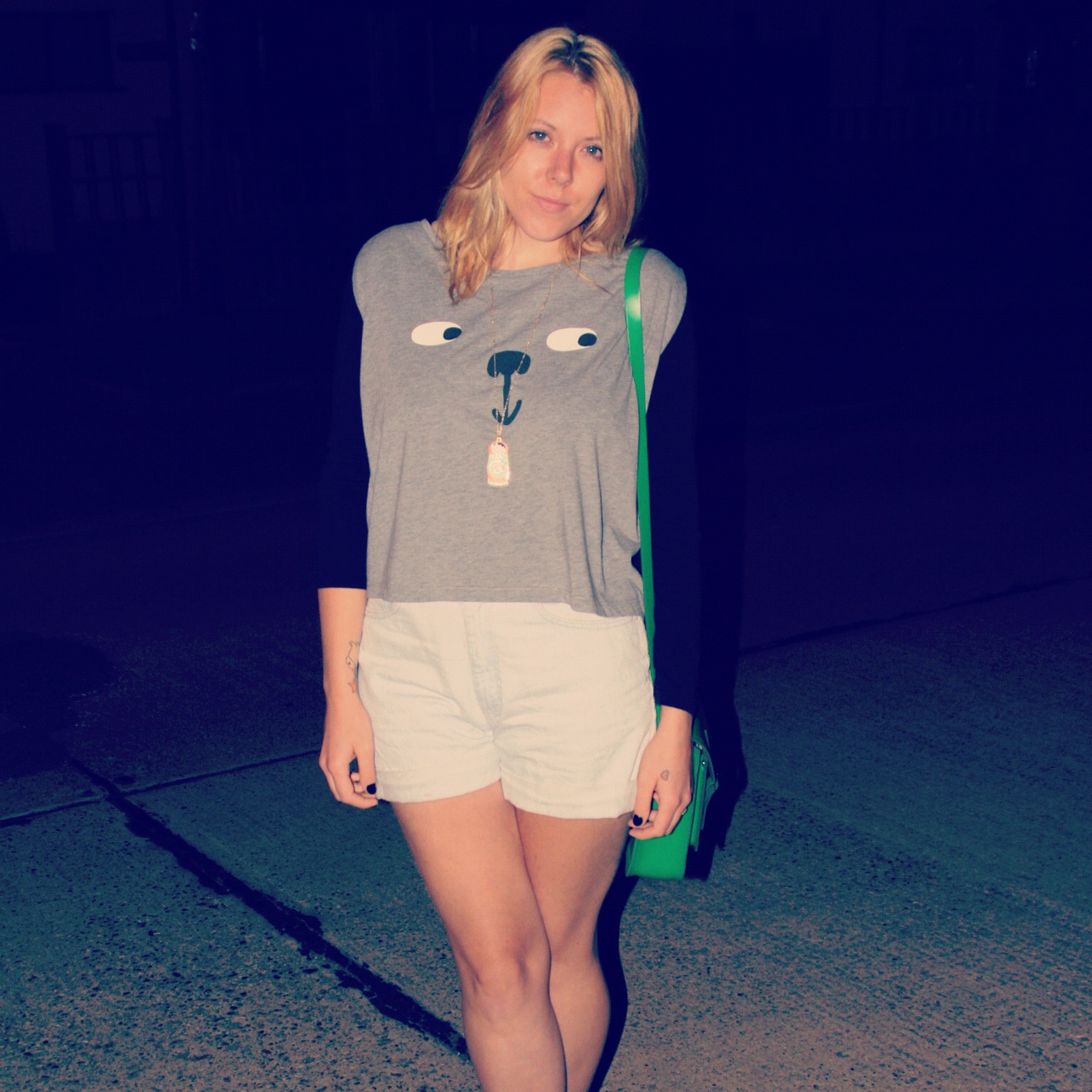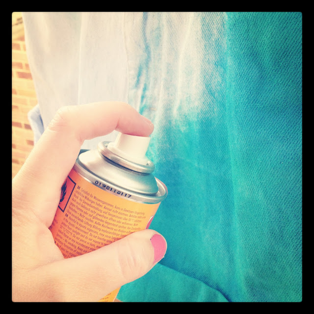 After a trip to my local craft shop, I bought two cans of acrylic spray paint(one in a mint and one in blue) I pulled out my vintage shorts I had recently purchased from Beyond Retro.