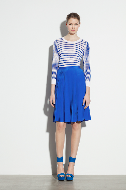 Ultra feminine and very pretty seems to be the theme for DKNY‘s new Pre Fall 2012 collection. With lace injections, Aztec prints and nautical blues, the new season looks fresh yet classic from the American fashion house. I especially love the lace top with the bottom frill,