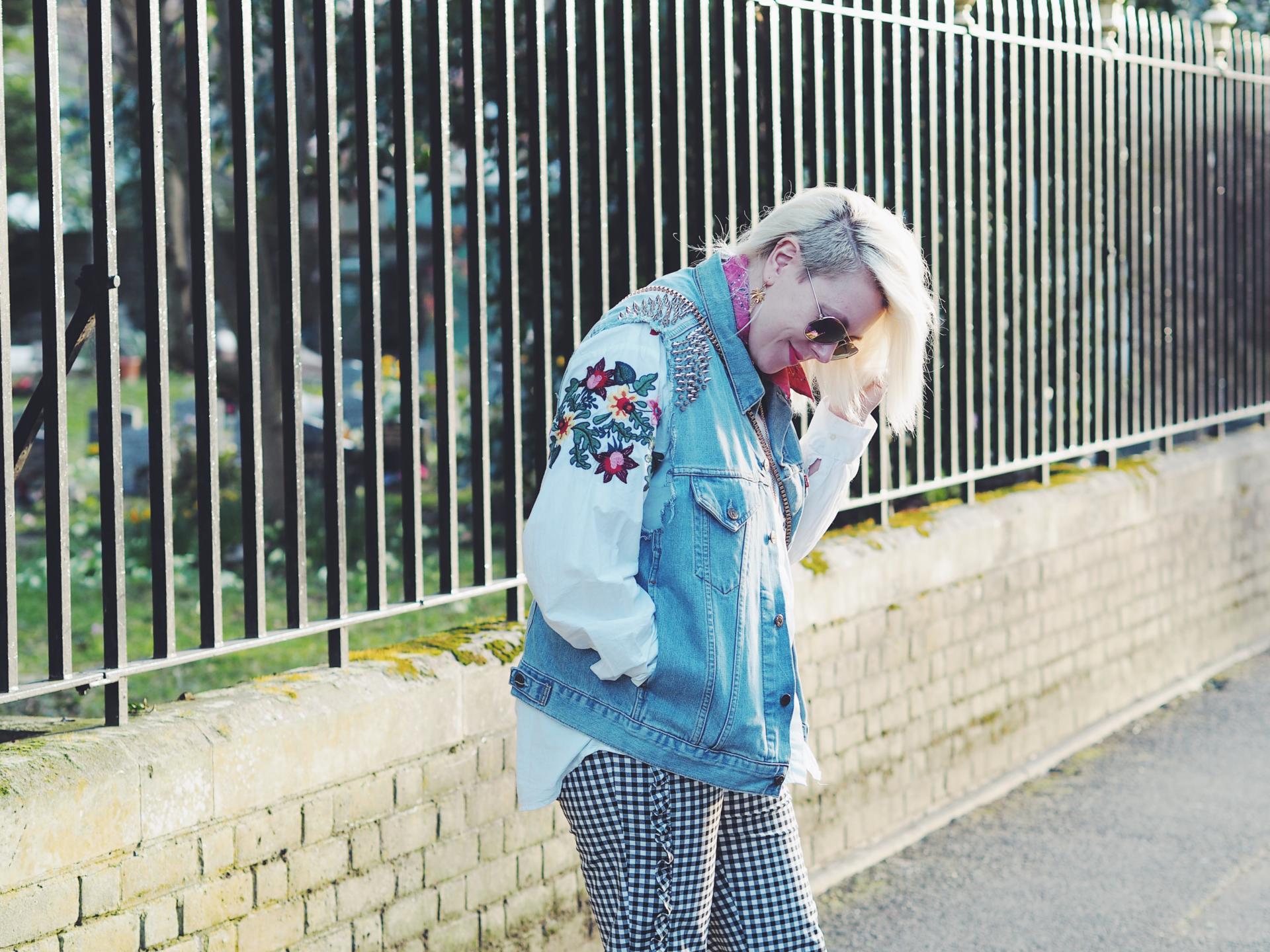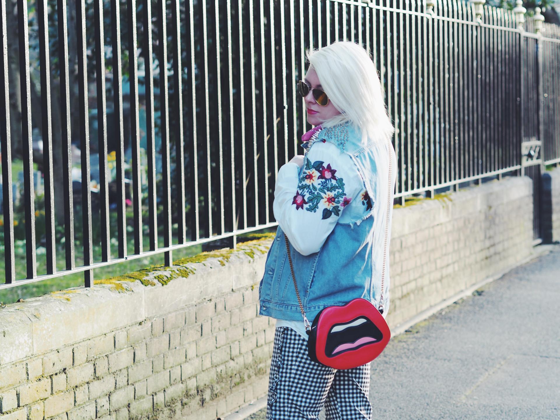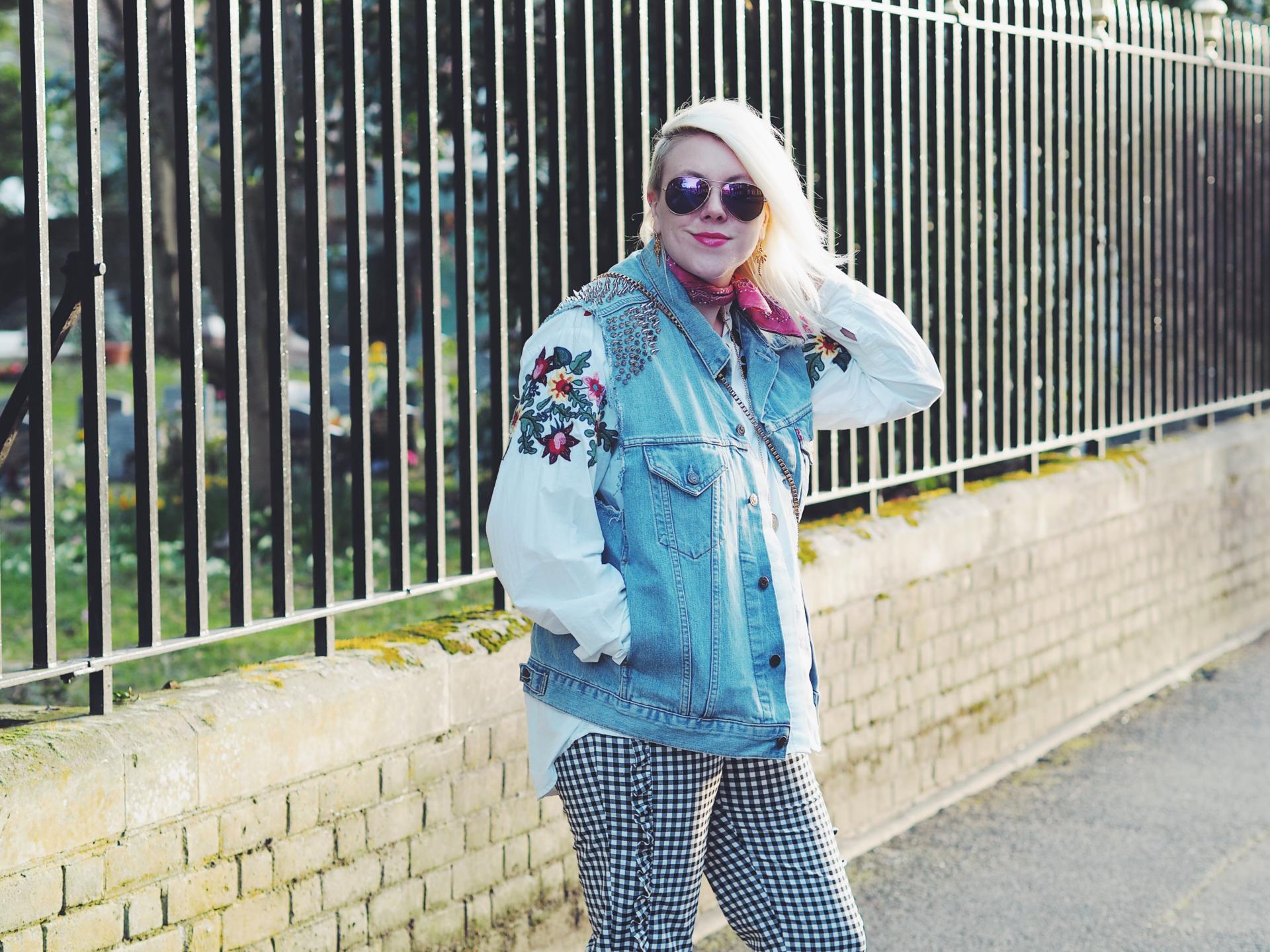 Love your gingham pants and love how you styled the embroidered denim jacket!
