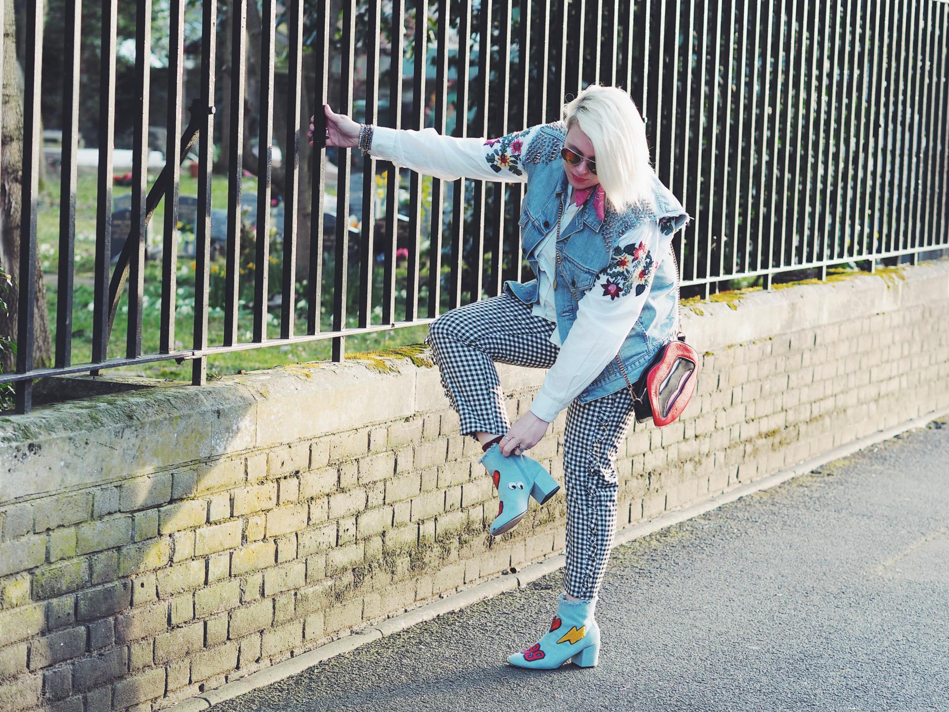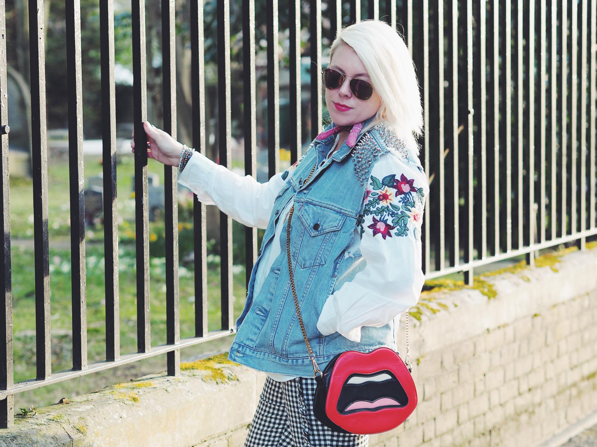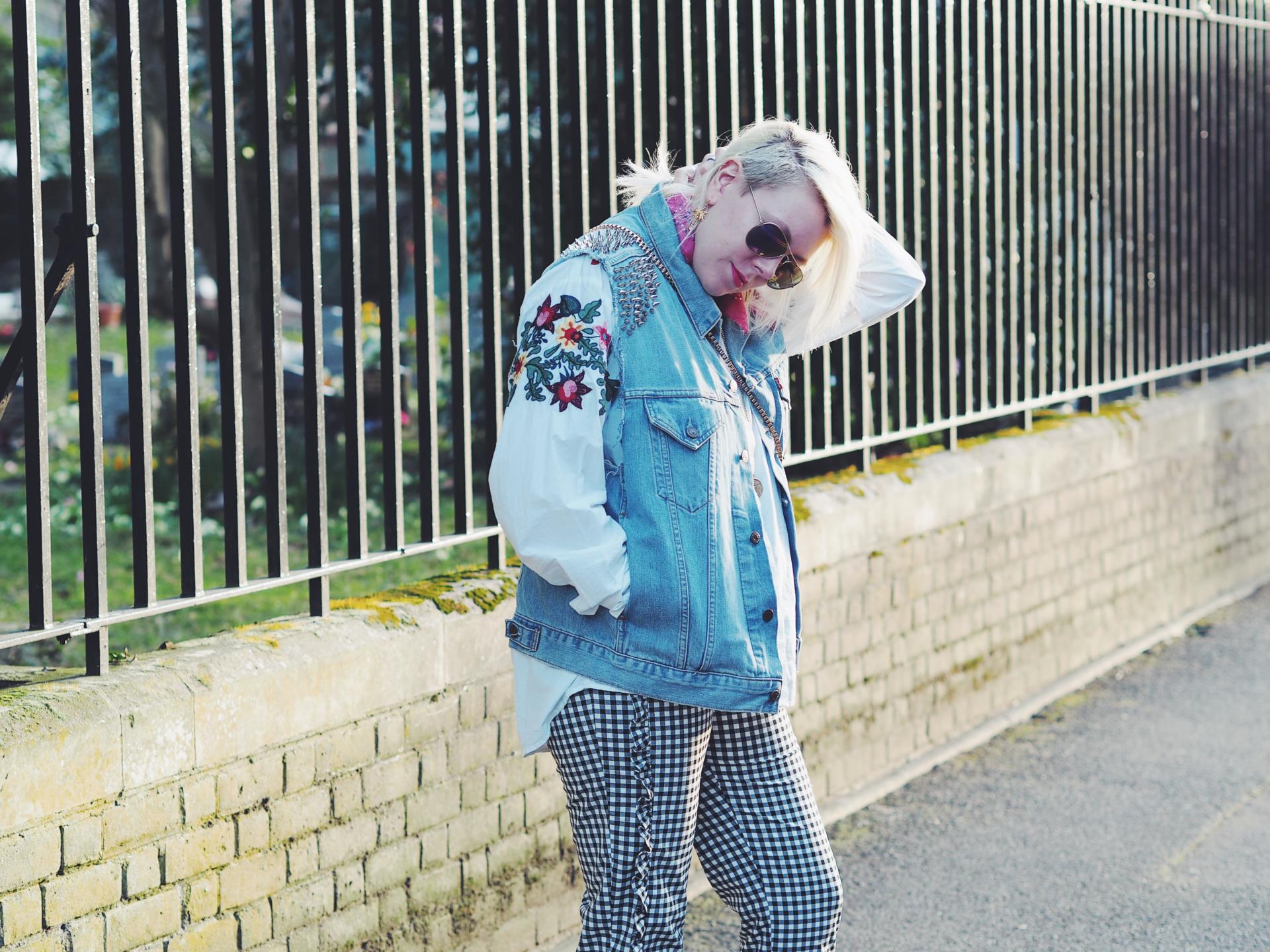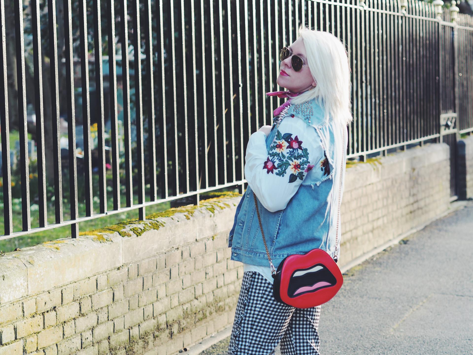 Love your gingham pants and love how you styled the embroidered denim jacket!