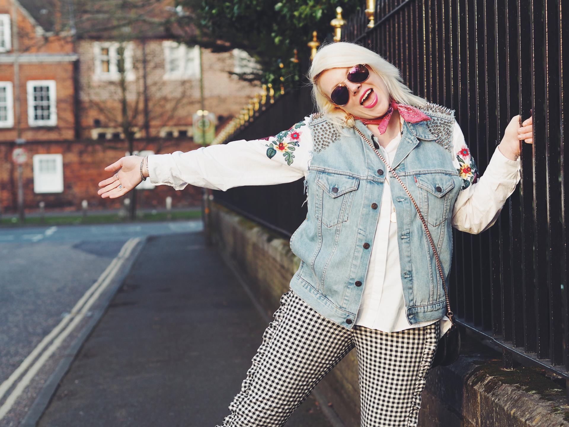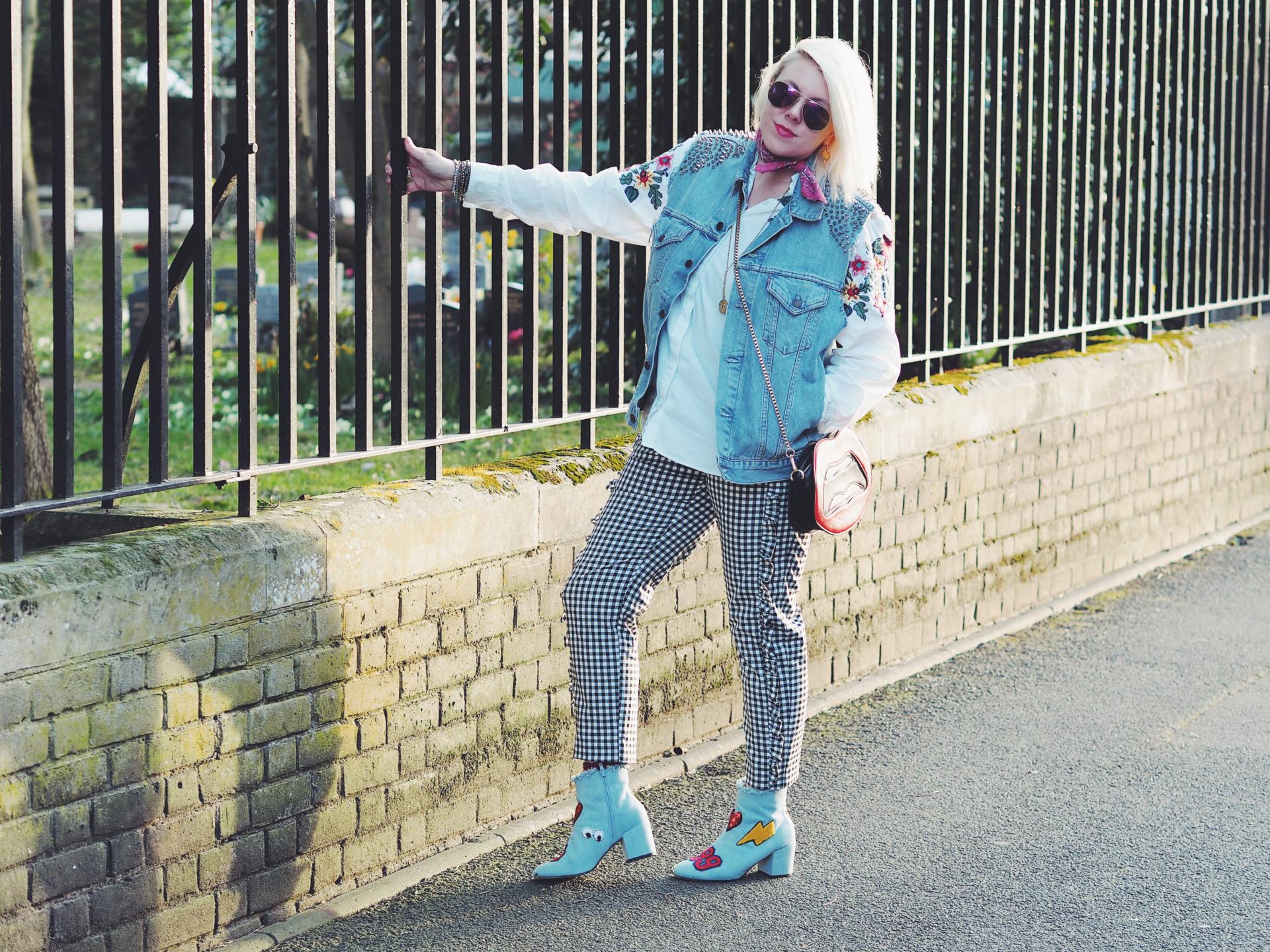 With this pattern, I pulled together this embroidered white shirt from Zara and this denim oversized gilet. This isn’t normally a outfit I would create but I think it looks really different and embraces everything I love; oversized cuts, denim, cute boots and killer accessories.