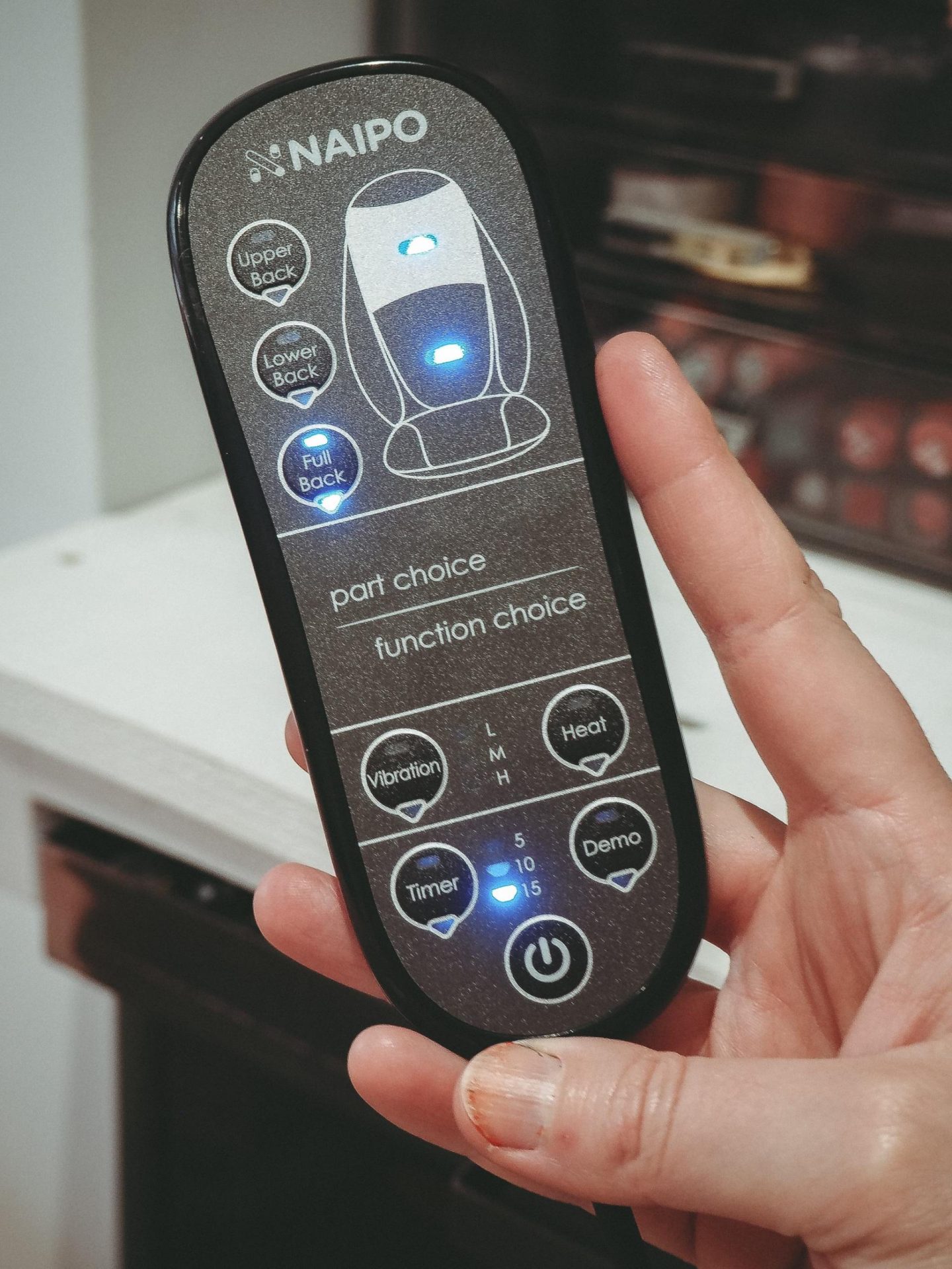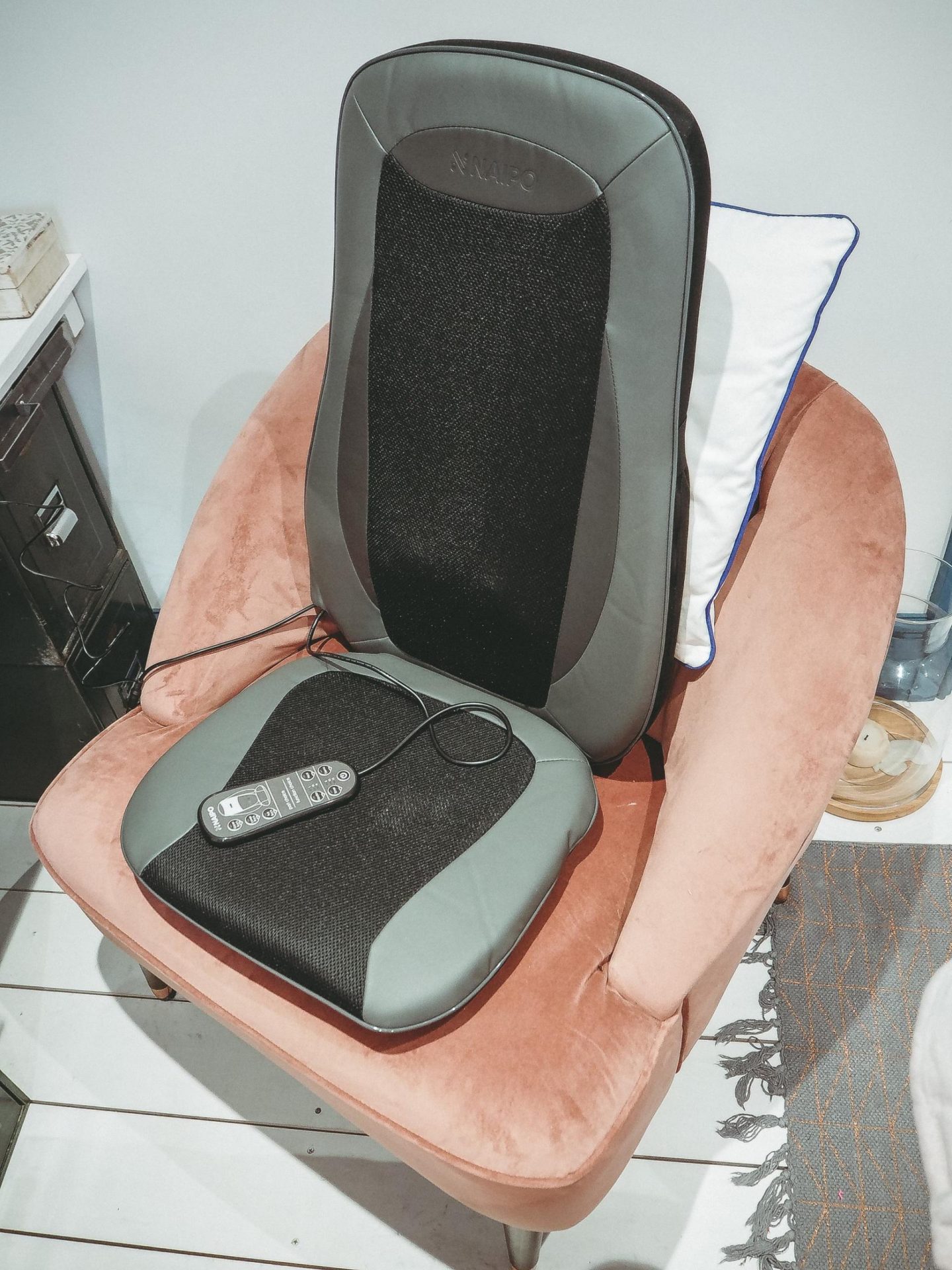 You can select to have a full, lower or upper back massage and there is also an option to have your seat heated while you enjoy your massage. I opted for a full back one and let the chair do its work. The balls that move in a circular motion really do apply a bit of pressure which is good and they are great for working out some knots. I have a lot of tension in my upper back and the chair helped tons with that.