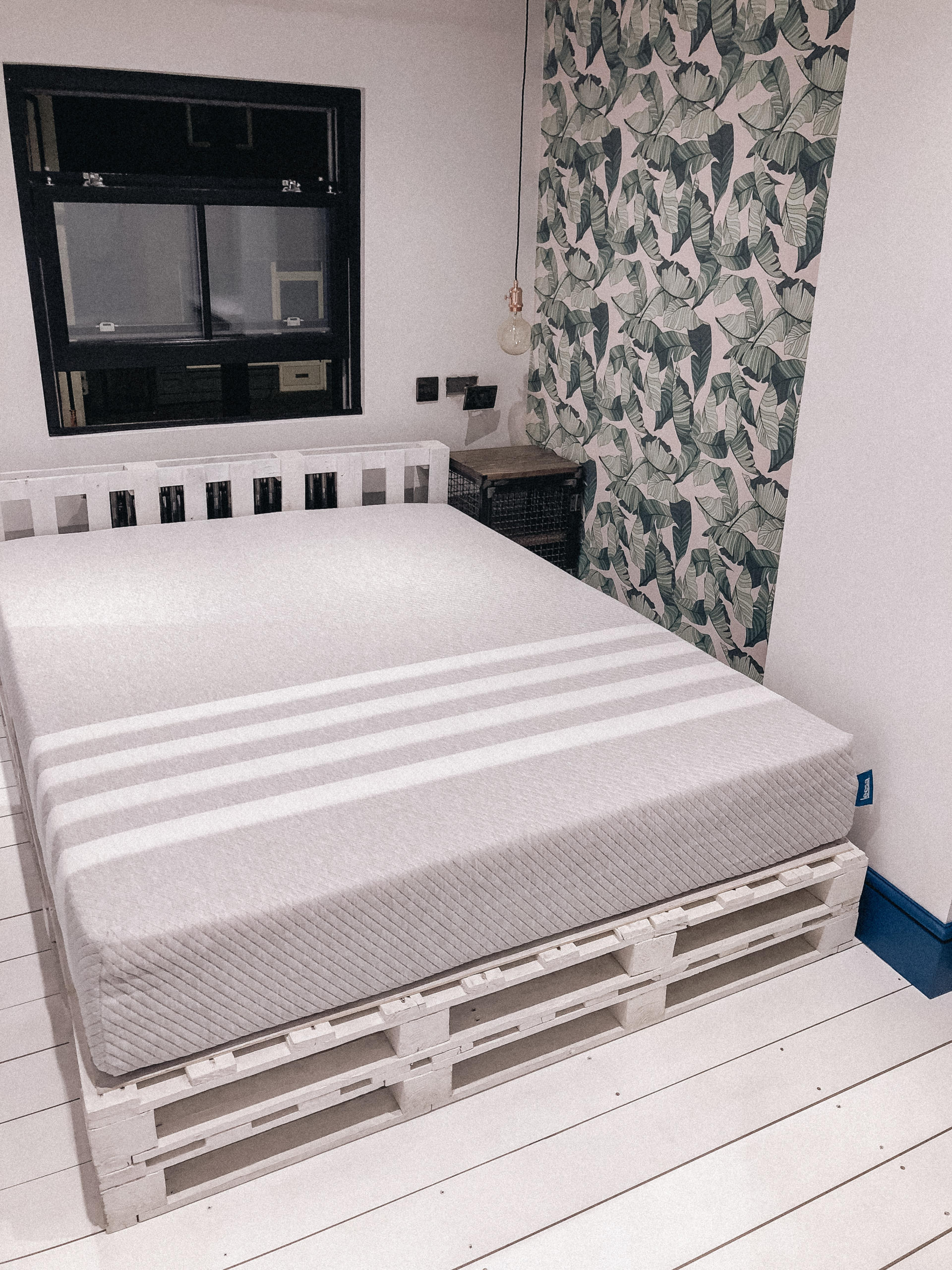 There are 8 sizes available and you simply order what size you need and it’s delivered straight to your home. I was a little unsure as I prefer to try out a mattress before I decide on one I want but both me and Gary are totally impressed with Leesa and we love just how sturdy and comfortable the mattress is. We ordered a UK King size which fits our pallet bed perfectly and it was really lovely having a new mattress to use in our newly decorated bedroom.