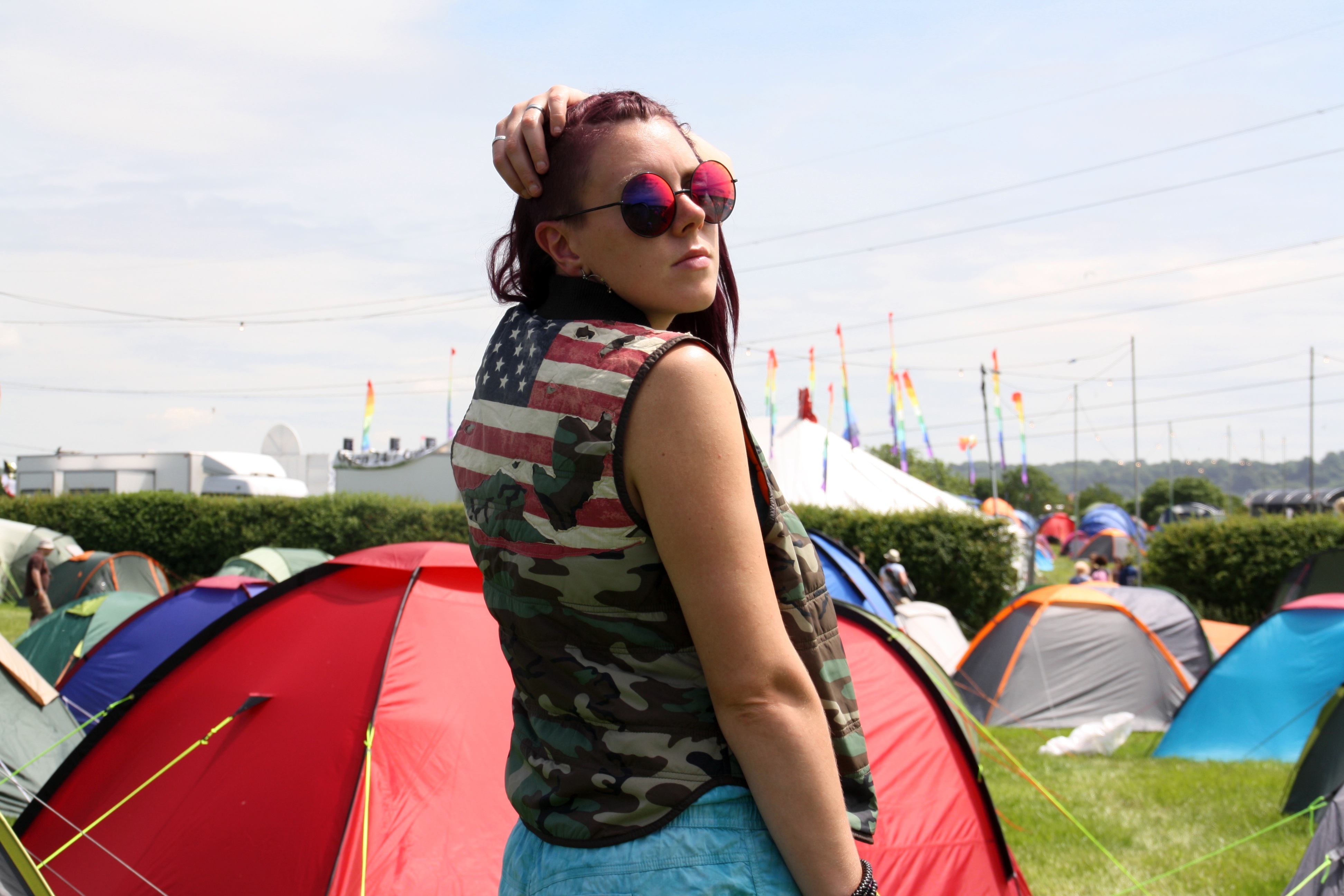 If you have ever been to Glastonbury, you know that the setting up on your tent and moving your bits from the one of 49 car parks to your camp site can be a long and tiring one. It probably also doesn’t help that for us, as soon as we parked up our car, the heaven’s opened and poured until the early hours of the next morning. I was totally in the festival spirit and was wearing this little number but taking pictures in the pouring rain was possible so I waiting until the sun was out again.