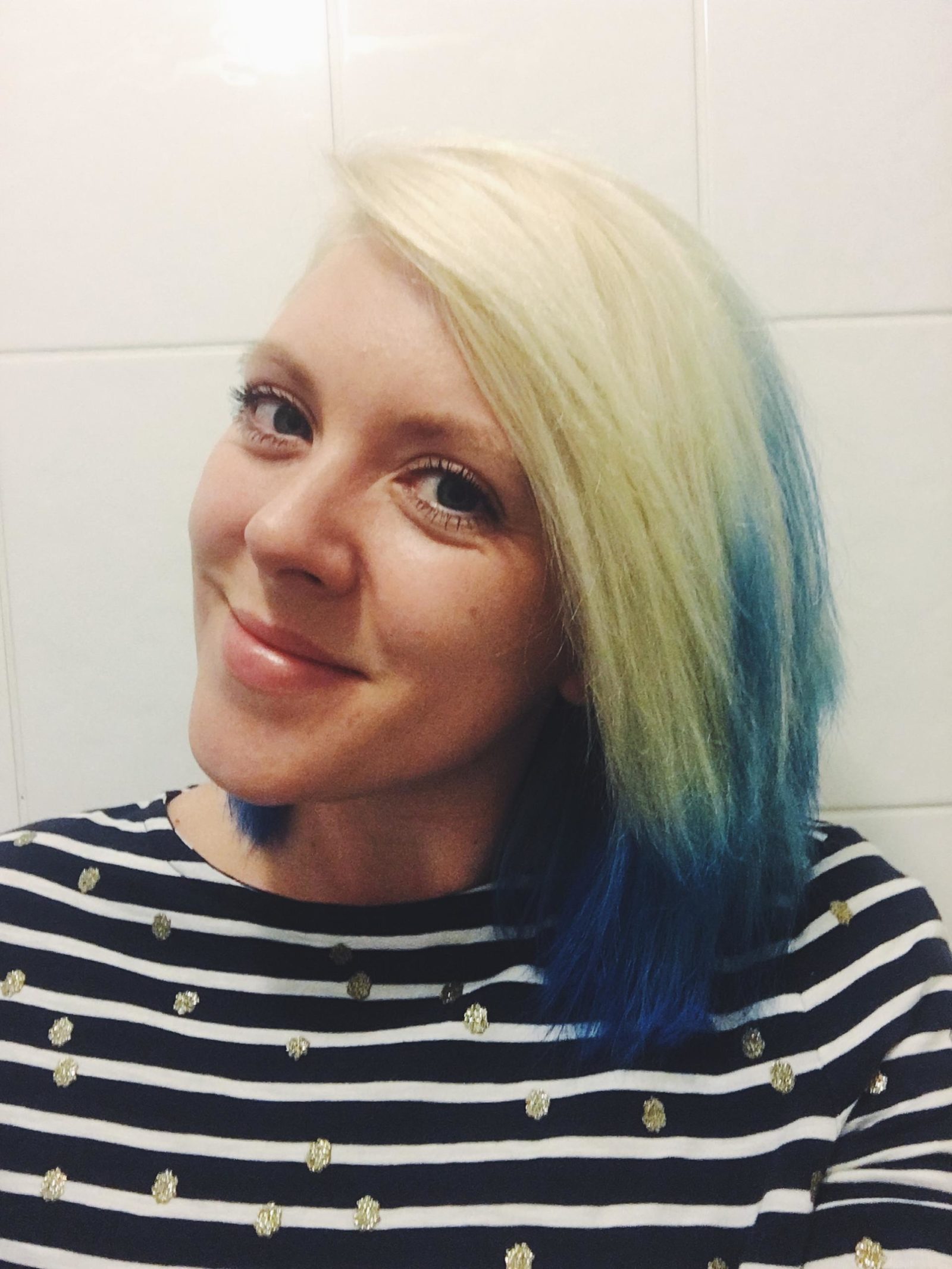 As I wasn’t sure how dark ends would look on my bleached look, I decided to take a more adventurous route and create this dip dye blue hair style with Schwarzkopf live.