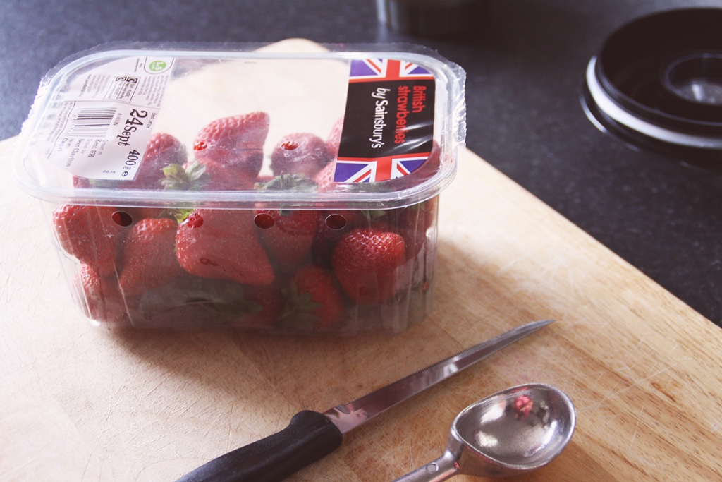First give the Strawberries a wash and cut out the leaves and stalks.