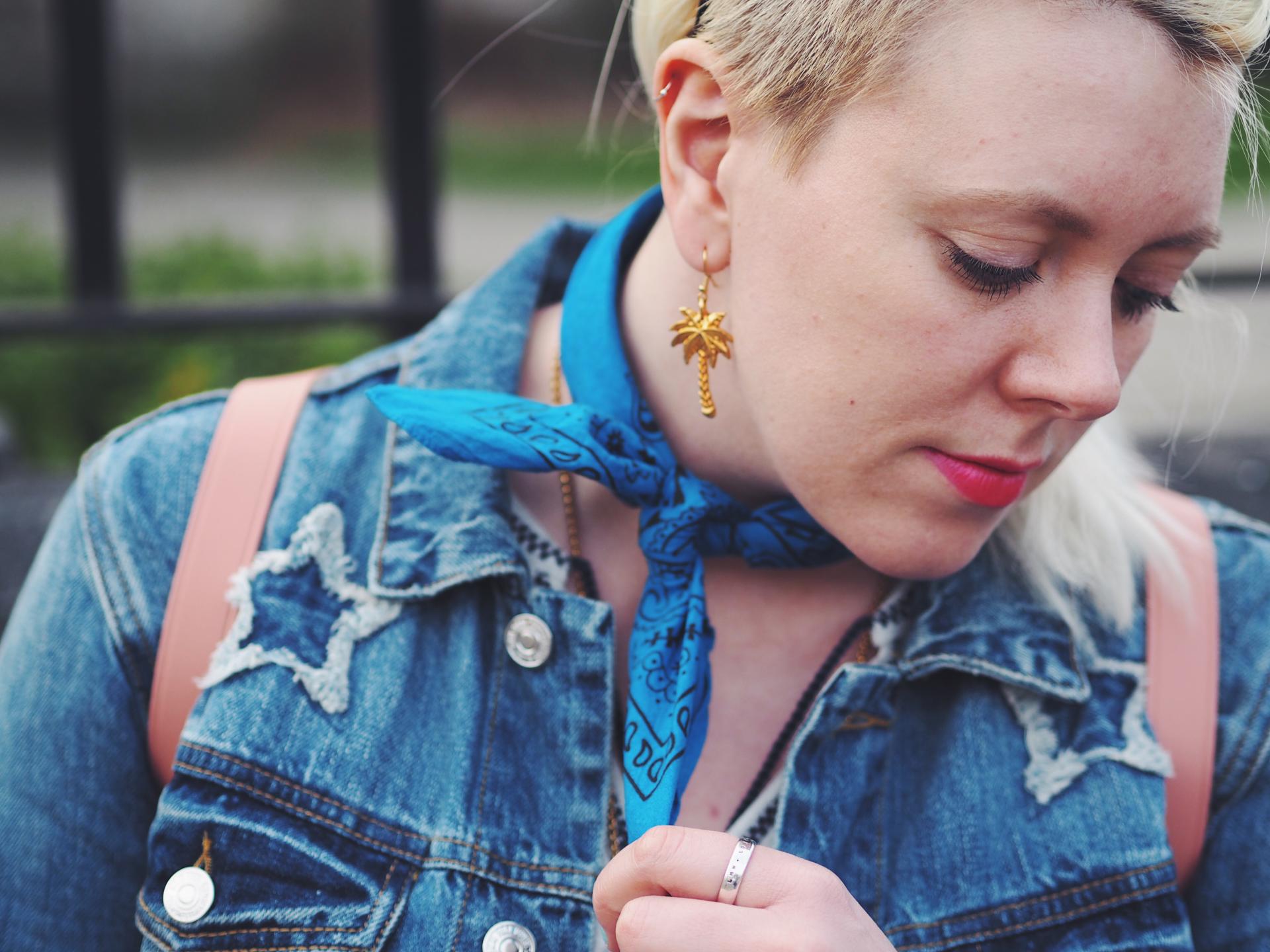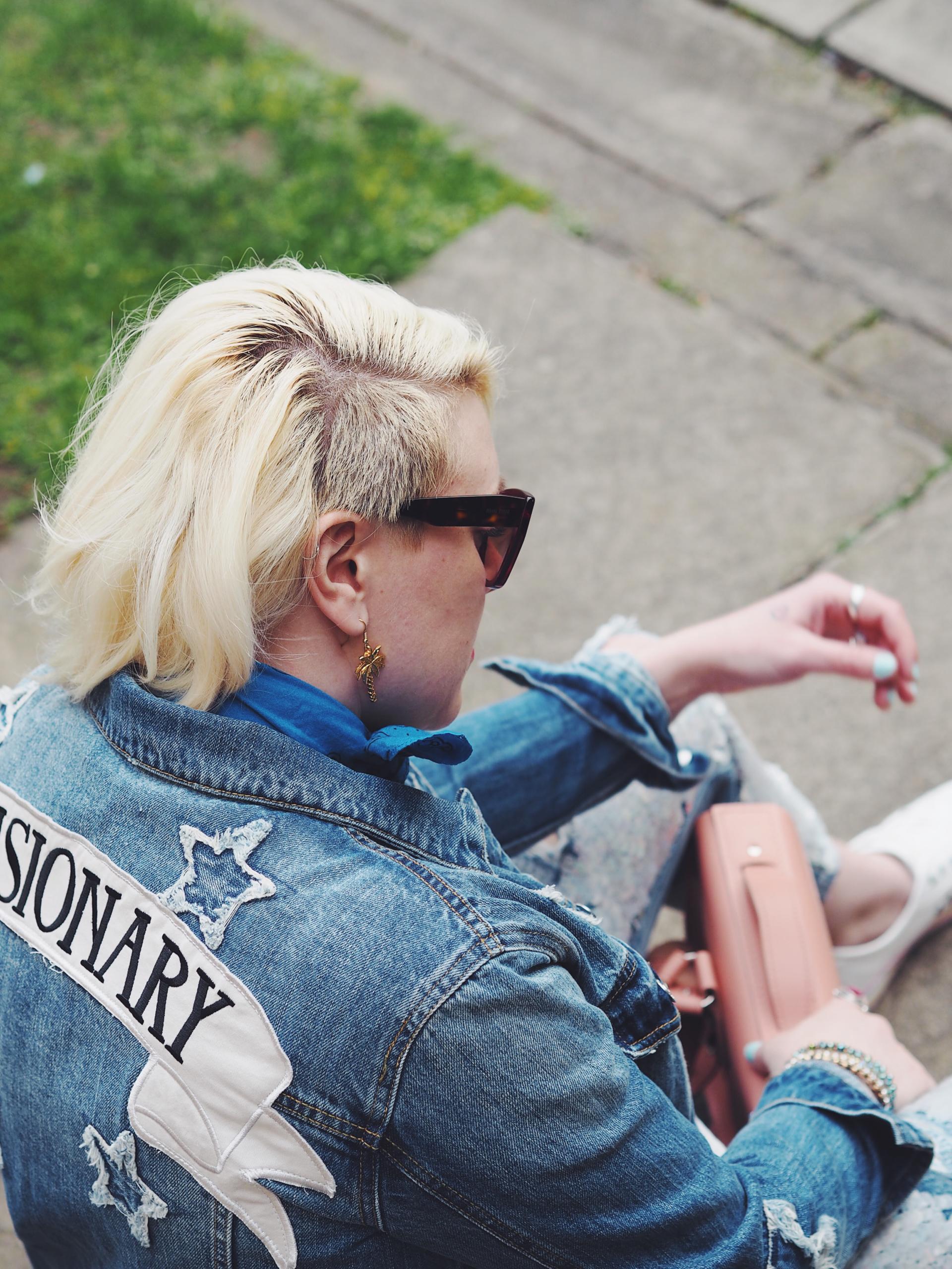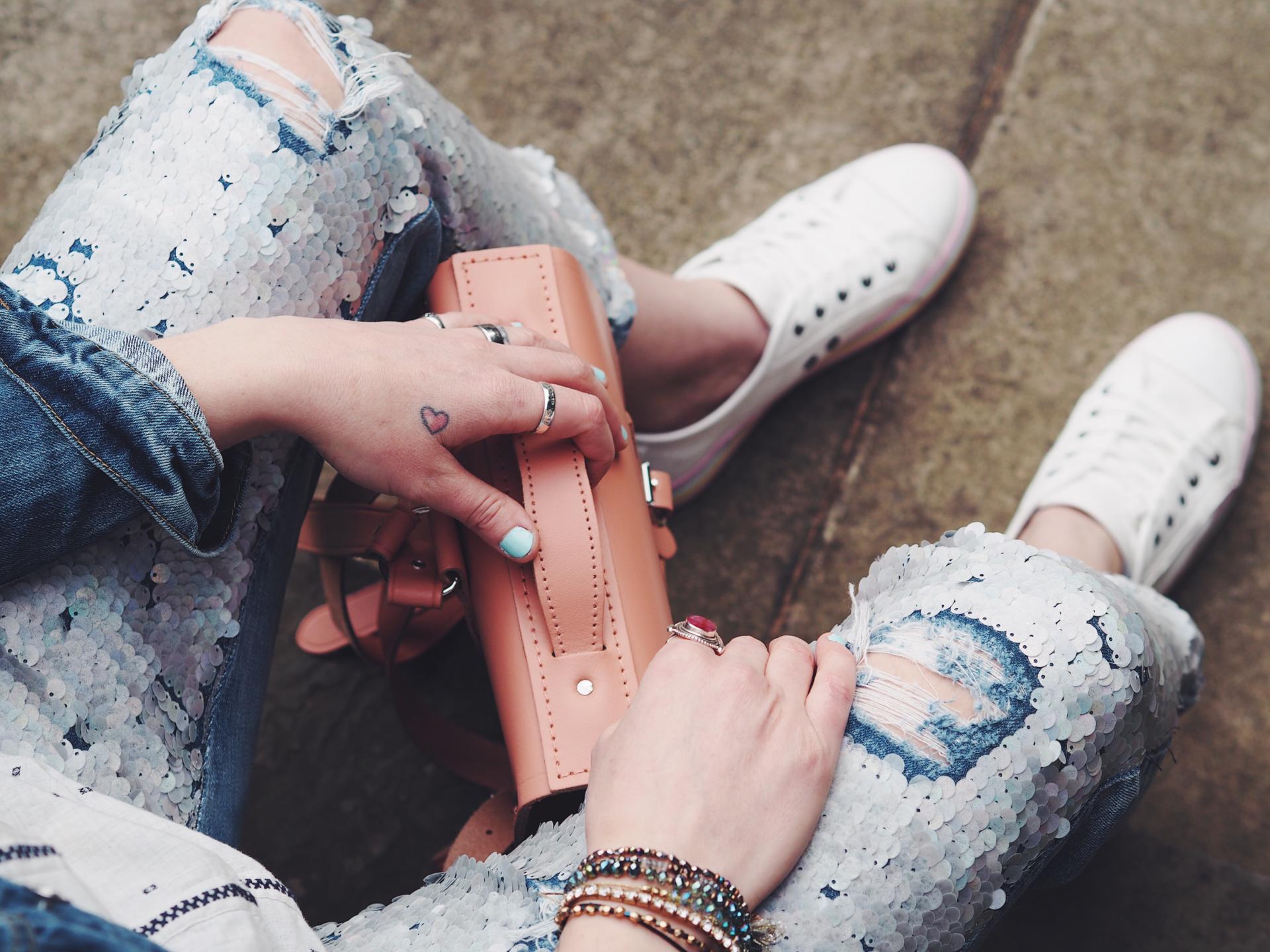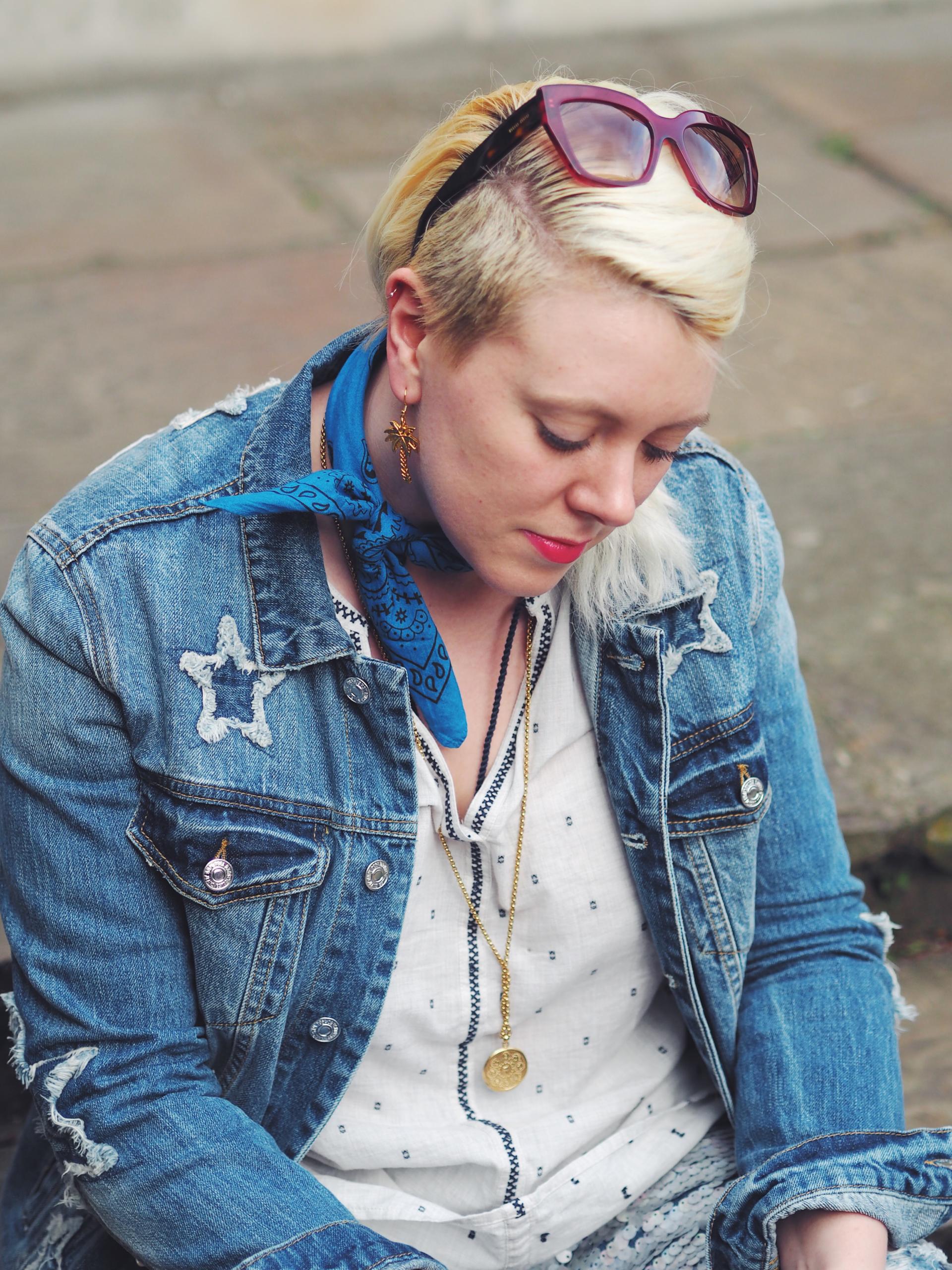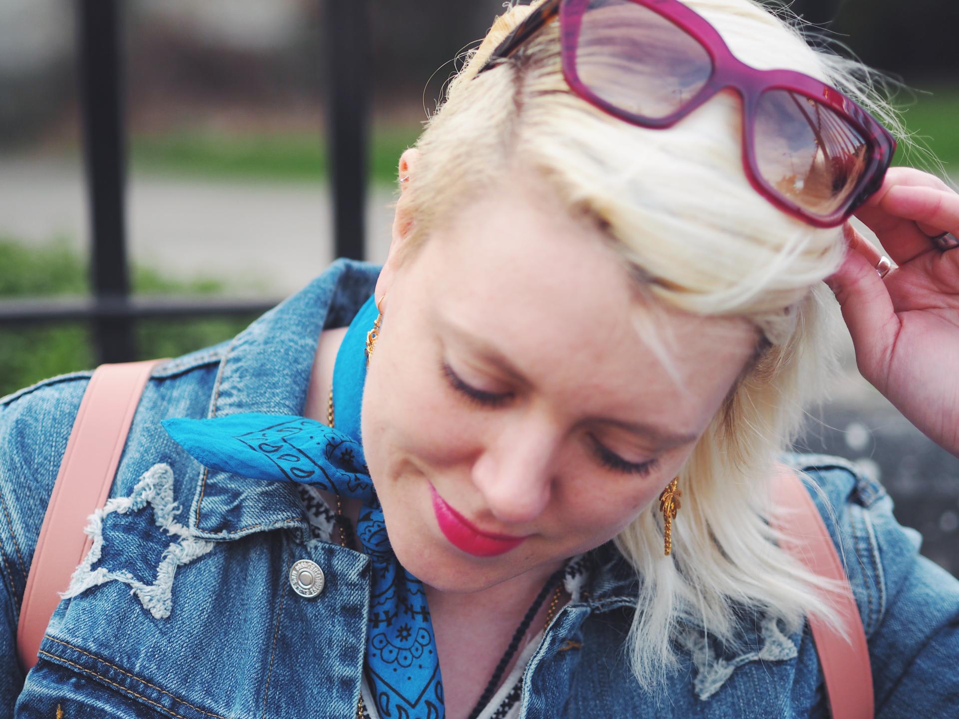 To do this trend with ease, it’s important to choose denim washes that are fairly similar but doesn’t look too coordinated. I think decoration on denim is a good way to break it up and these front sequin jeans from Topshop tone down this trend but gives my outfit a bit of interest and sparkle too. I adore these Topshop jeans when I found them and the cut is a perfect relaxed style for me and my curvy ass.