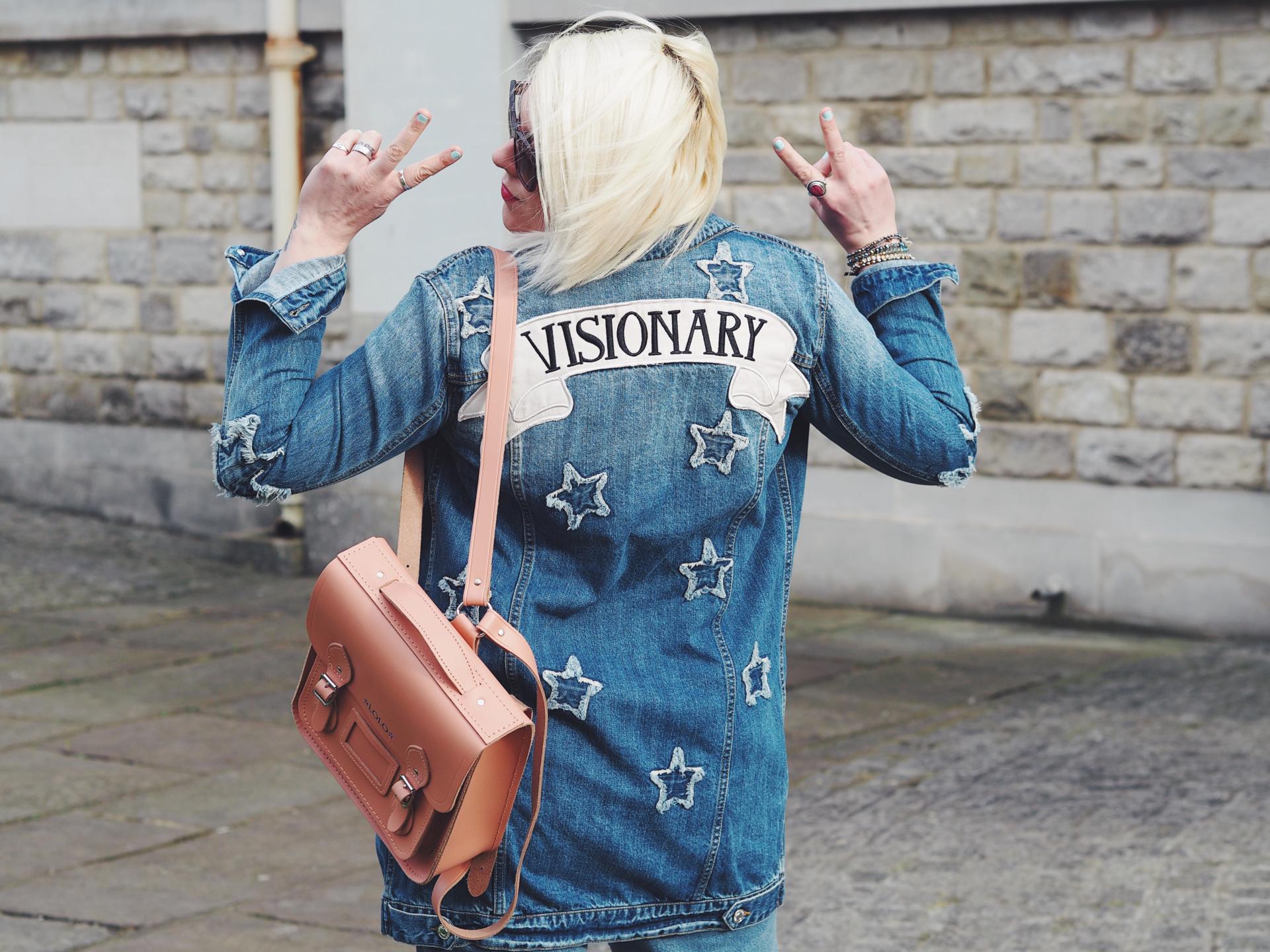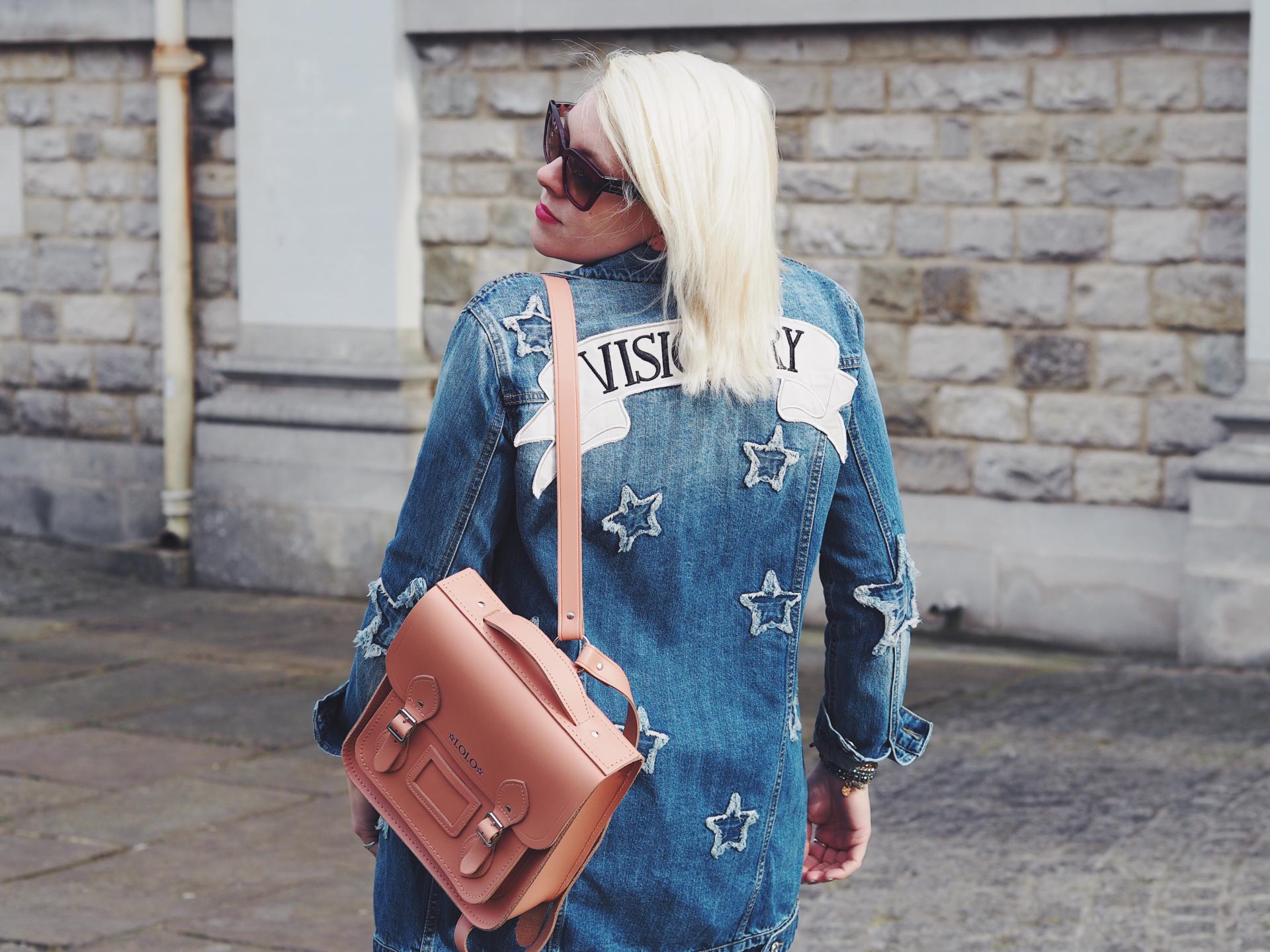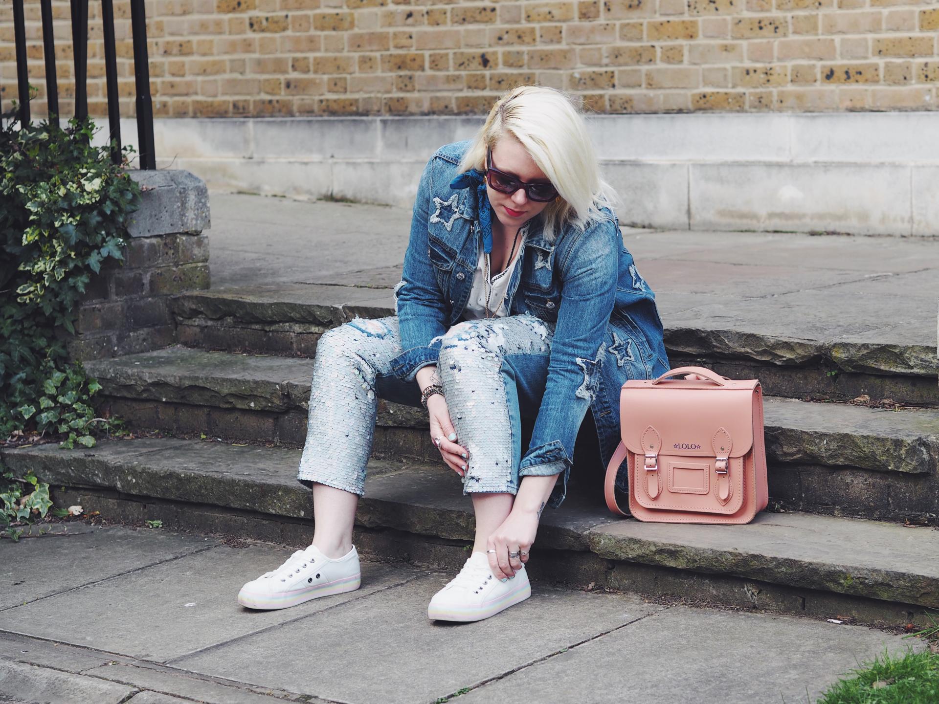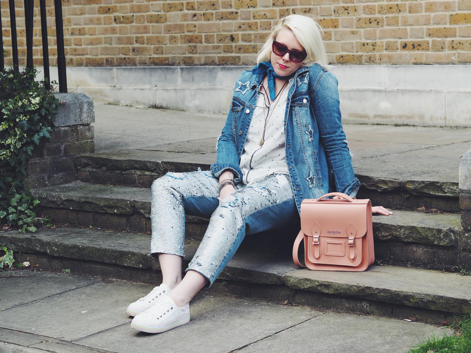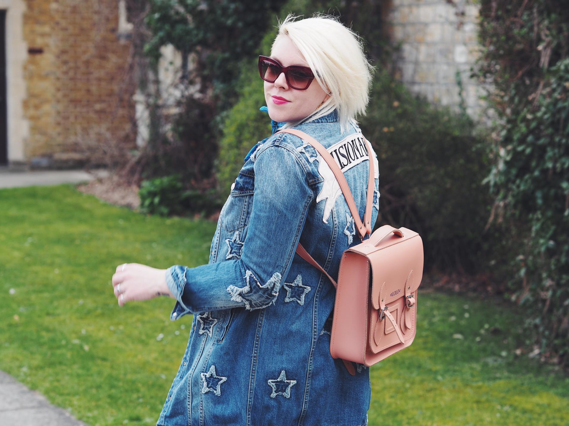 This #AMAZING jacket from Mango totally spoke to me when I fell upon it in their store and when clothing calls to you, you ANSWER! I utterly love the star patches, the back detailing and I think it looks so good with my outfit including these cute Rocket Dog platform trainers and my ever faithful Cambridge Satchel bag.