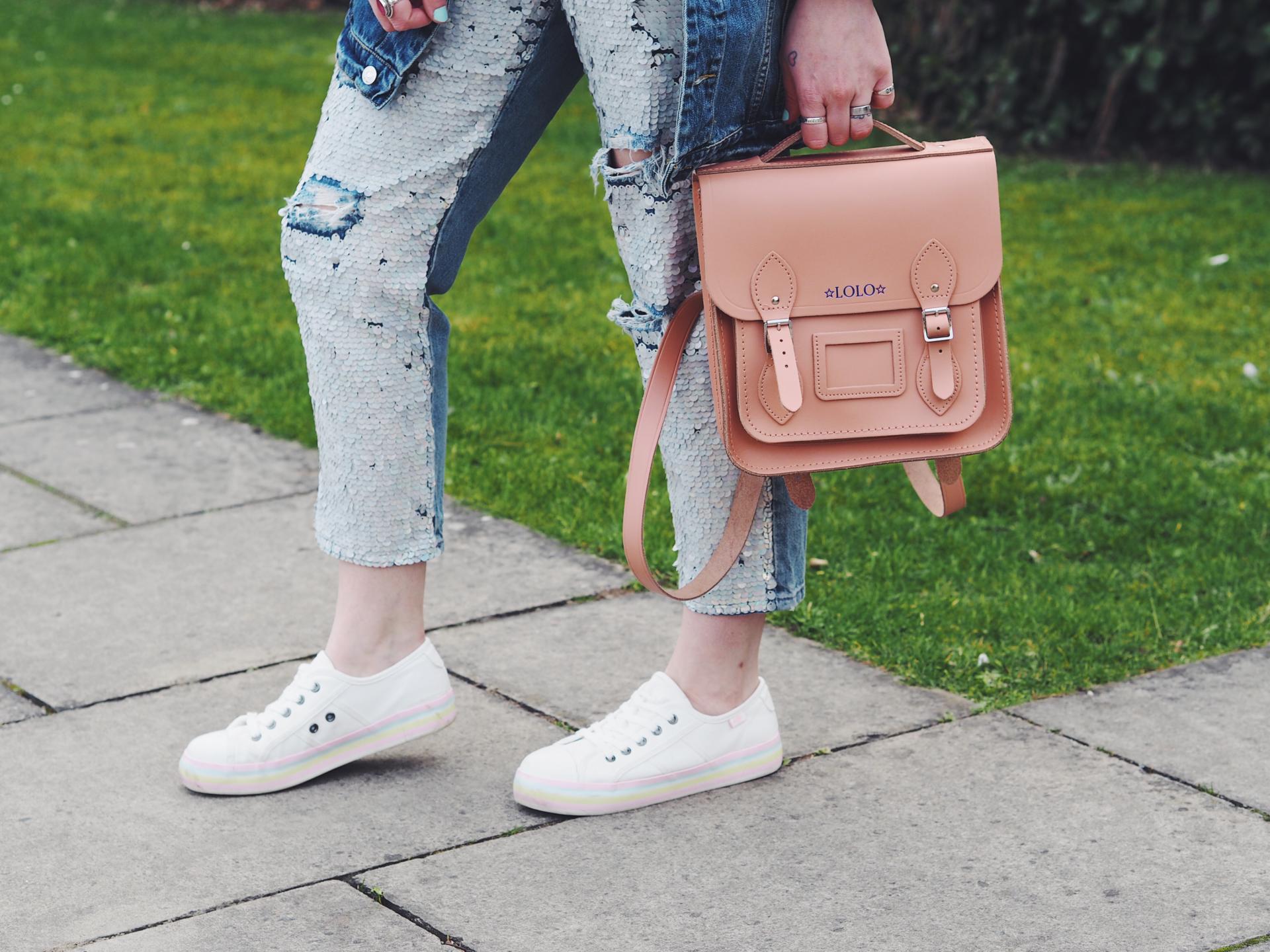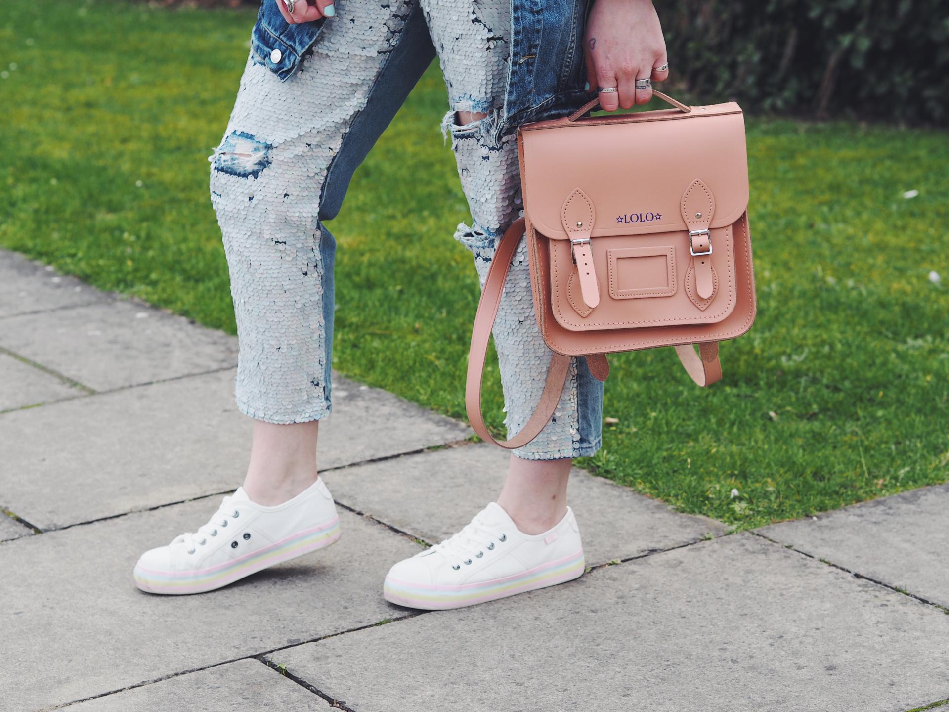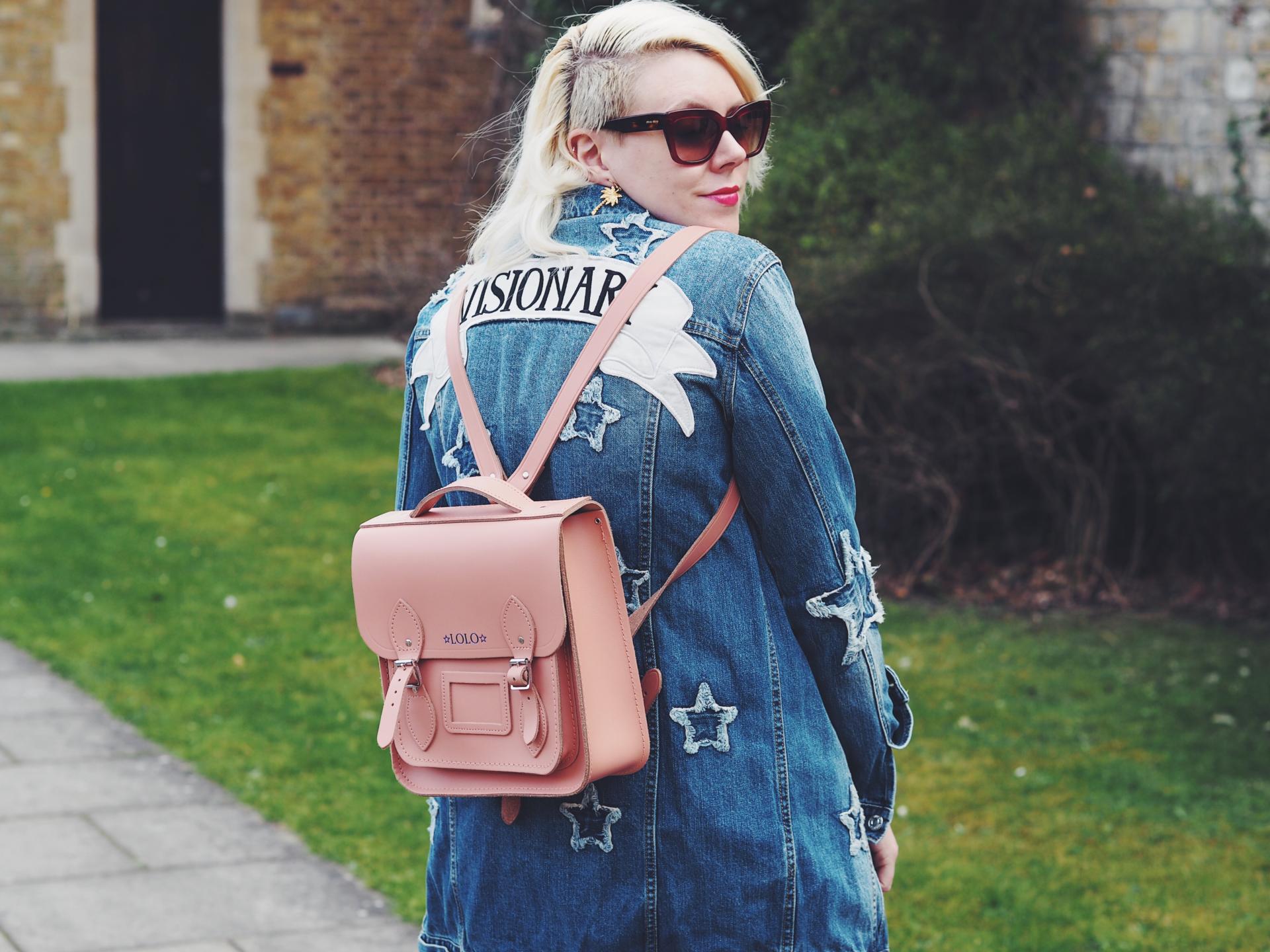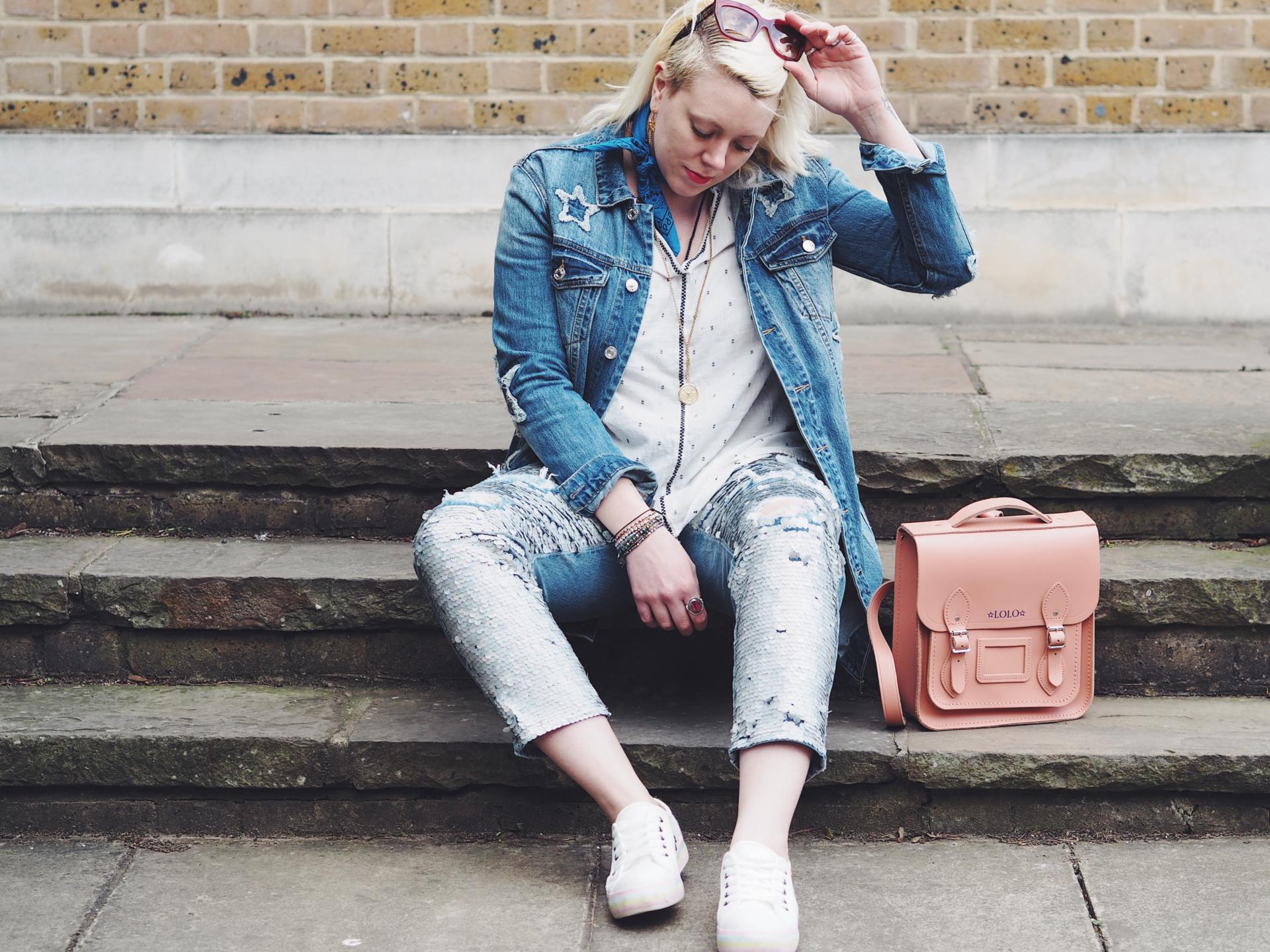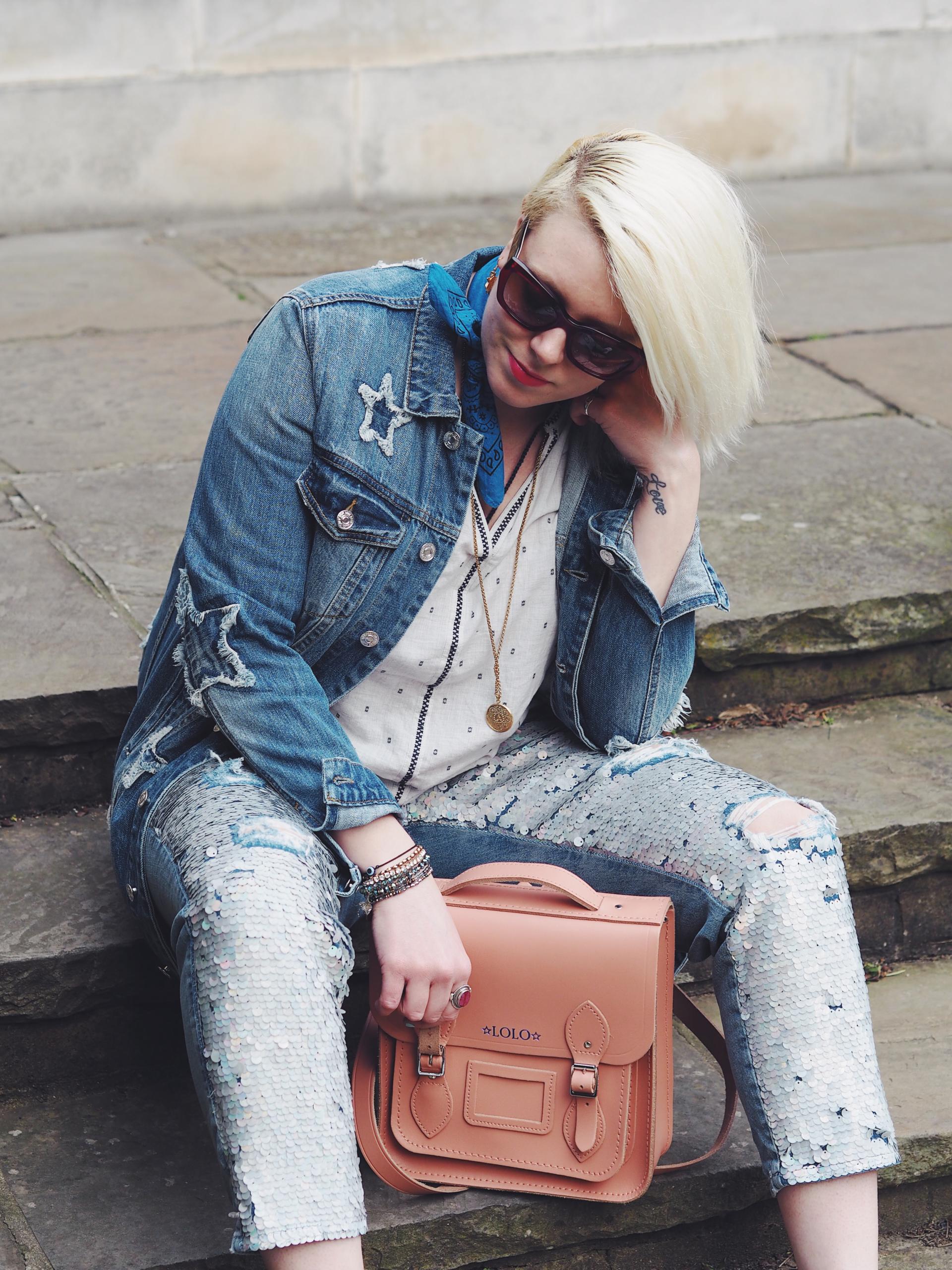 This #AMAZING jacket from Mango totally spoke to me when I fell upon it in their store and when clothing calls to you, you ANSWER! I utterly love the star patches, the back detailing and I think it looks so good with my outfit including these cute Rocket Dog platform trainers and my ever faithful Cambridge Satchel bag.