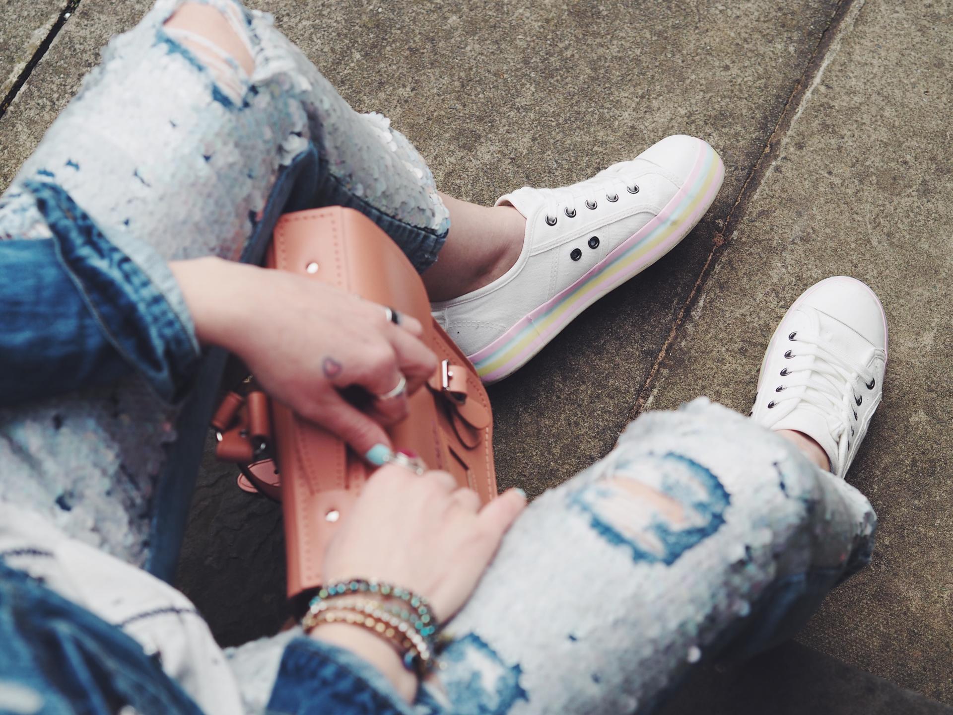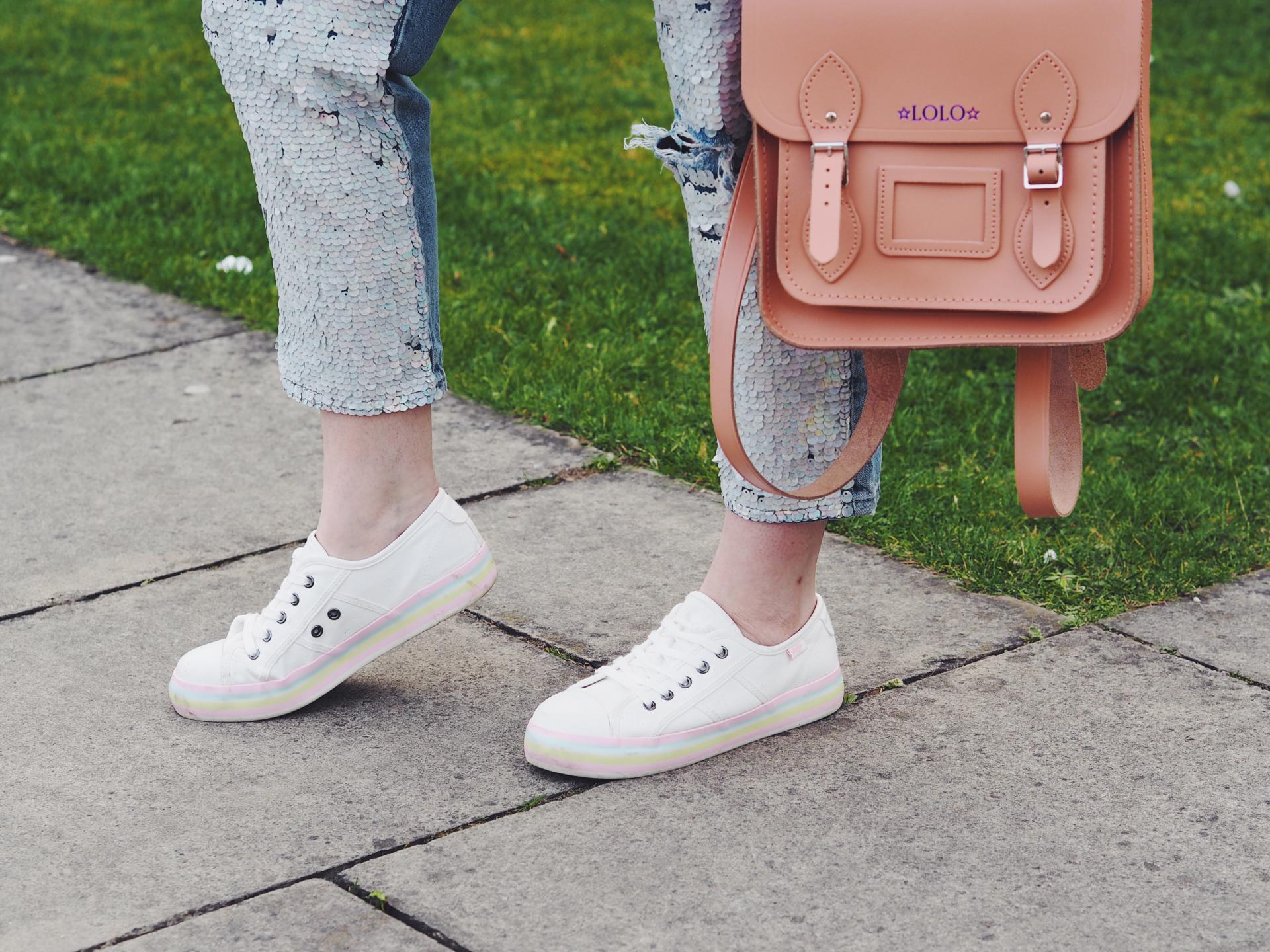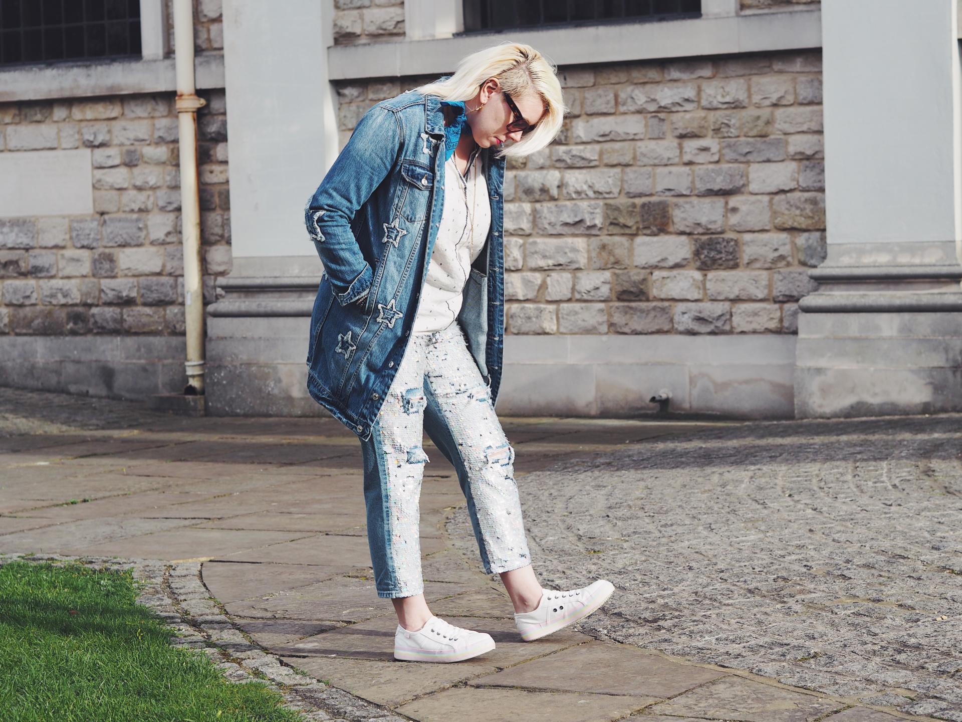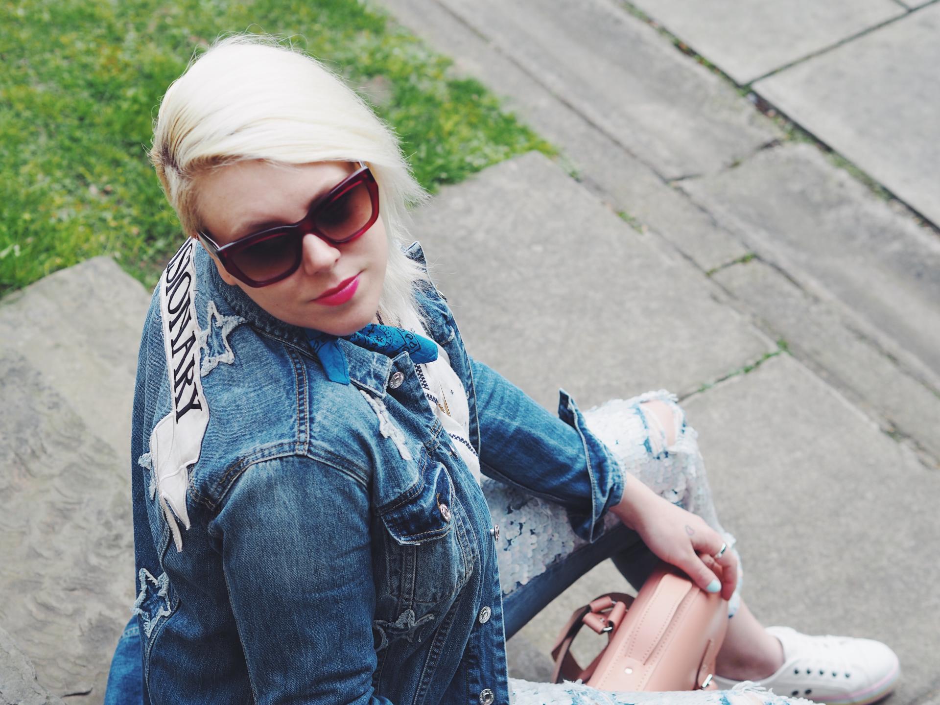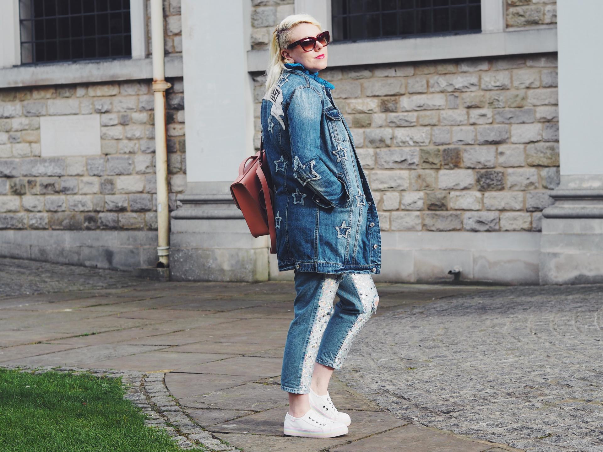 This #AMAZING jacket from Mango totally spoke to me when I fell upon it in their store and when clothing calls to you, you ANSWER! I utterly love the star patches, the back detailing and I think it looks so good with my outfit including these cute Rocket Dog platform trainers and my ever faithful Cambridge Satchel bag.