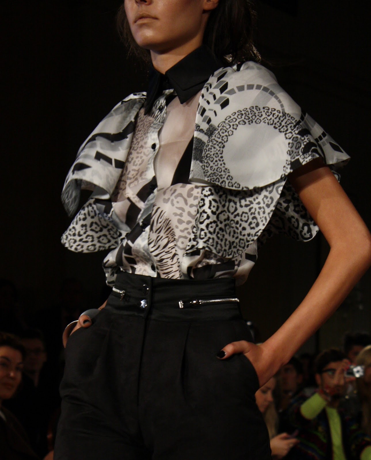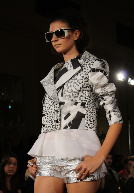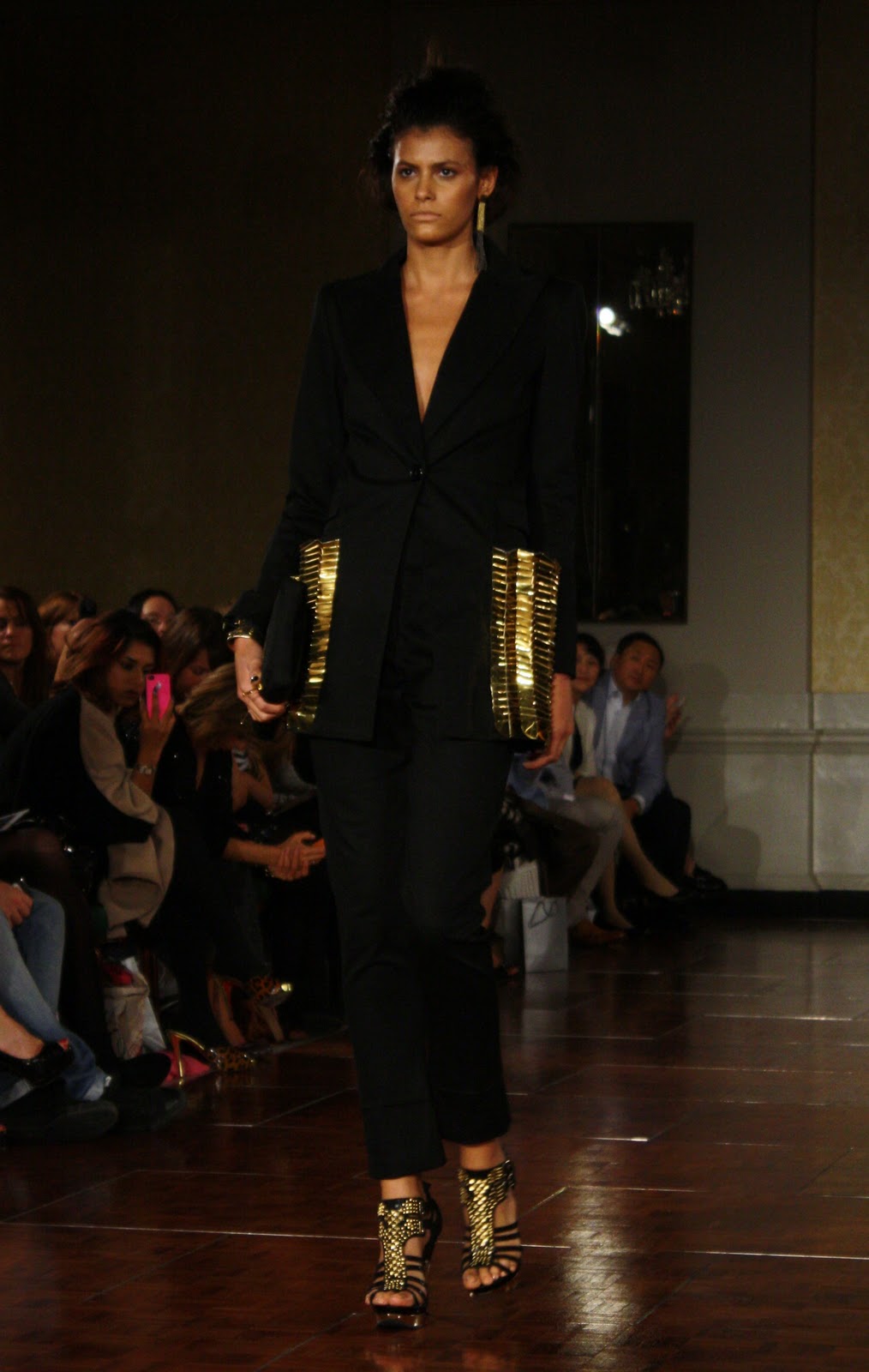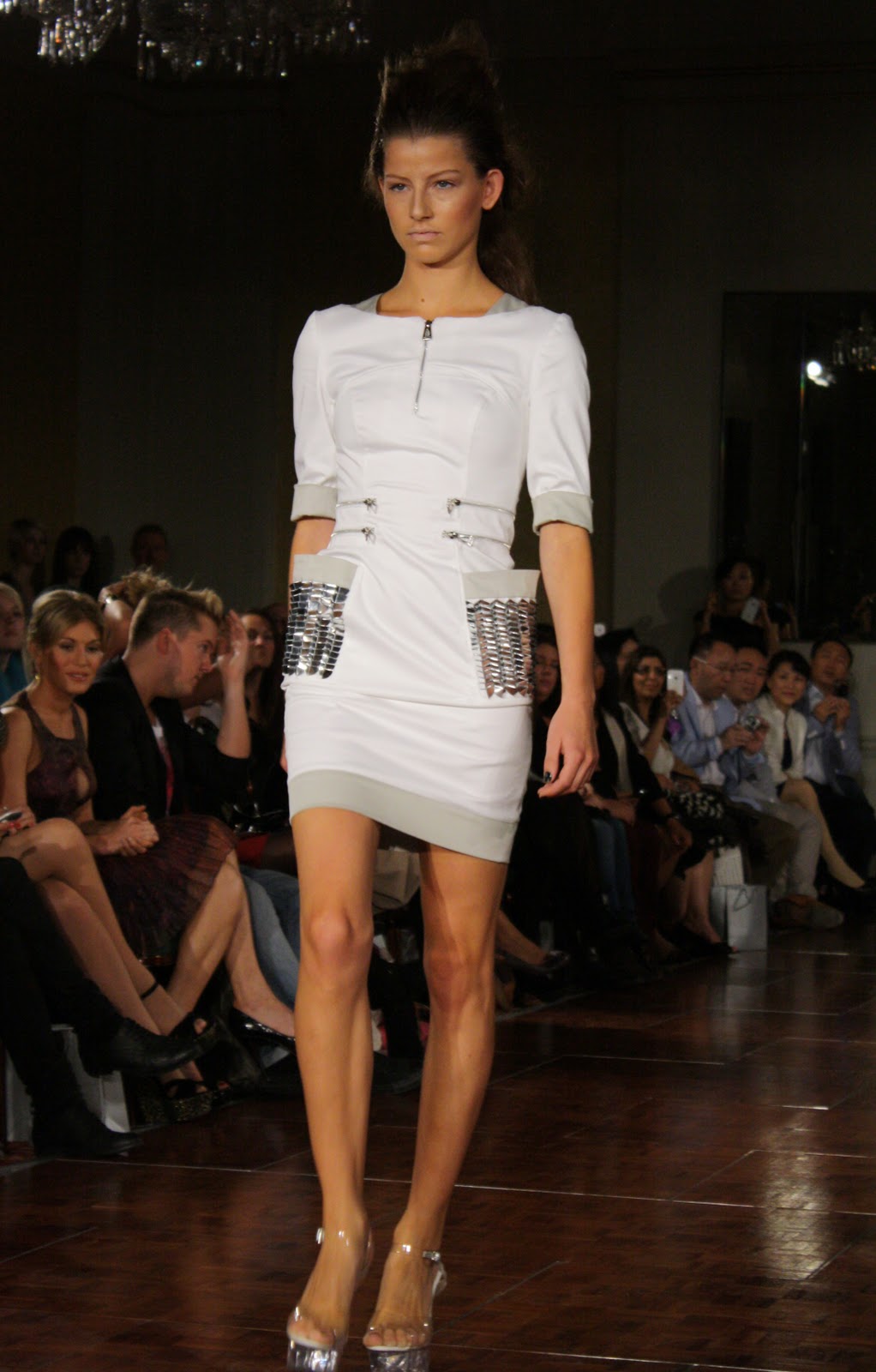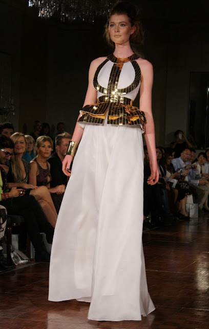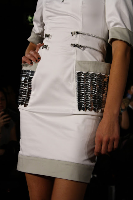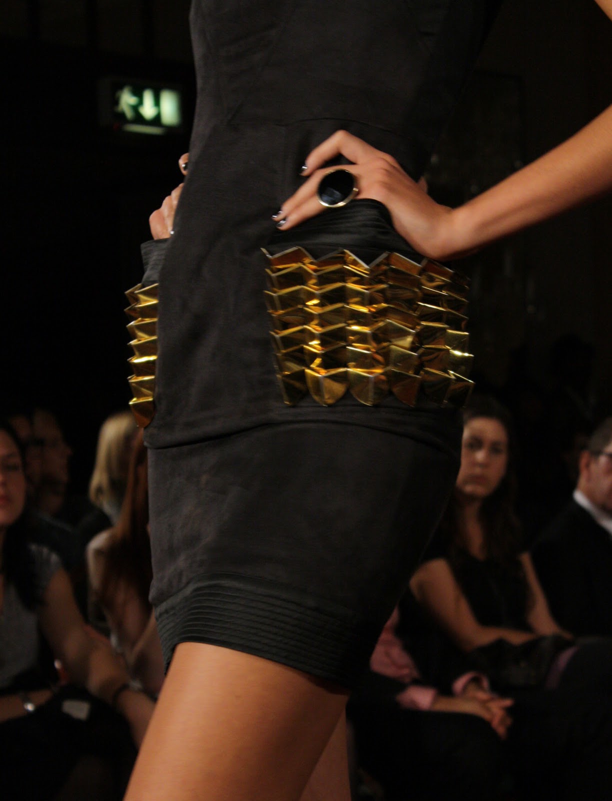 Metallic angels in their evening bests, glanced the catwalk for Jasper Garvida’s S/S 2012 collection. With feminine cuts yet edgy with the metal work and heavy duty details, Jasper’s new pieces were more harder then the designer has done previously. Cuts and shapes such as large over sized pockets, triangle studding and reflective plates all made up the ingredients of the collection and with a signature print to set off some key dresses, beautiful things are to come from Jasper and his creative designs.