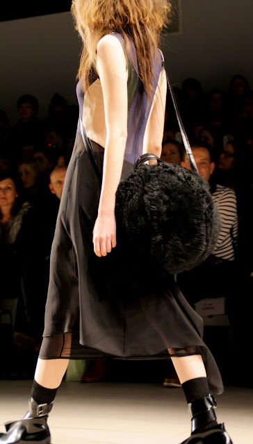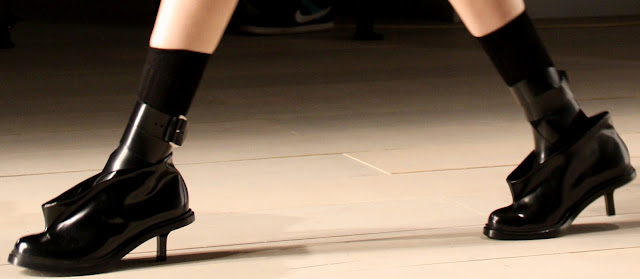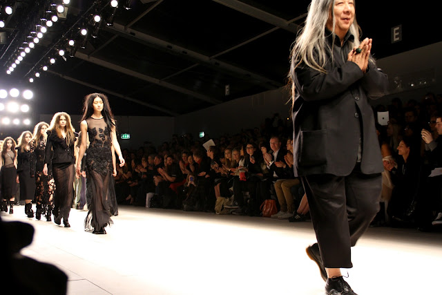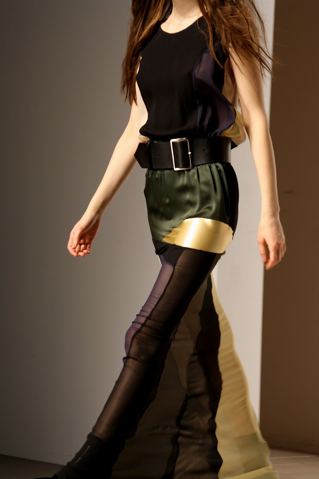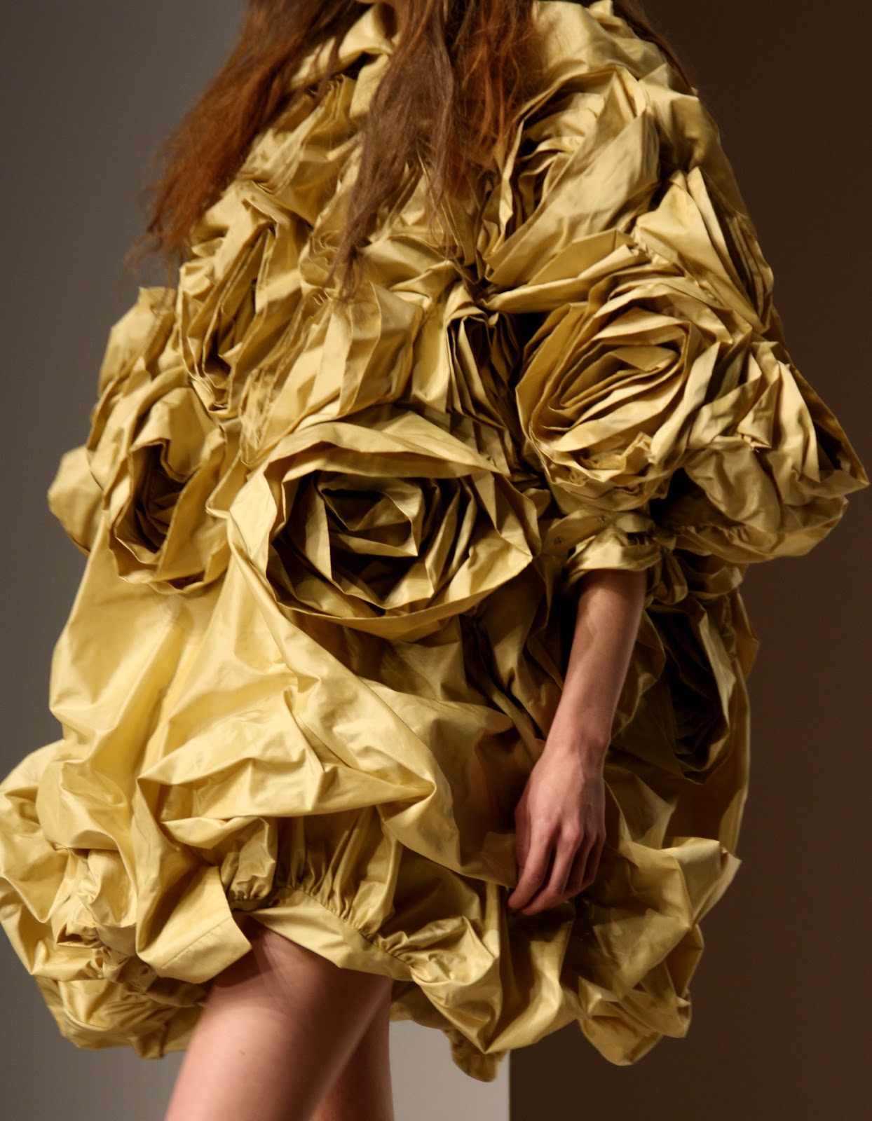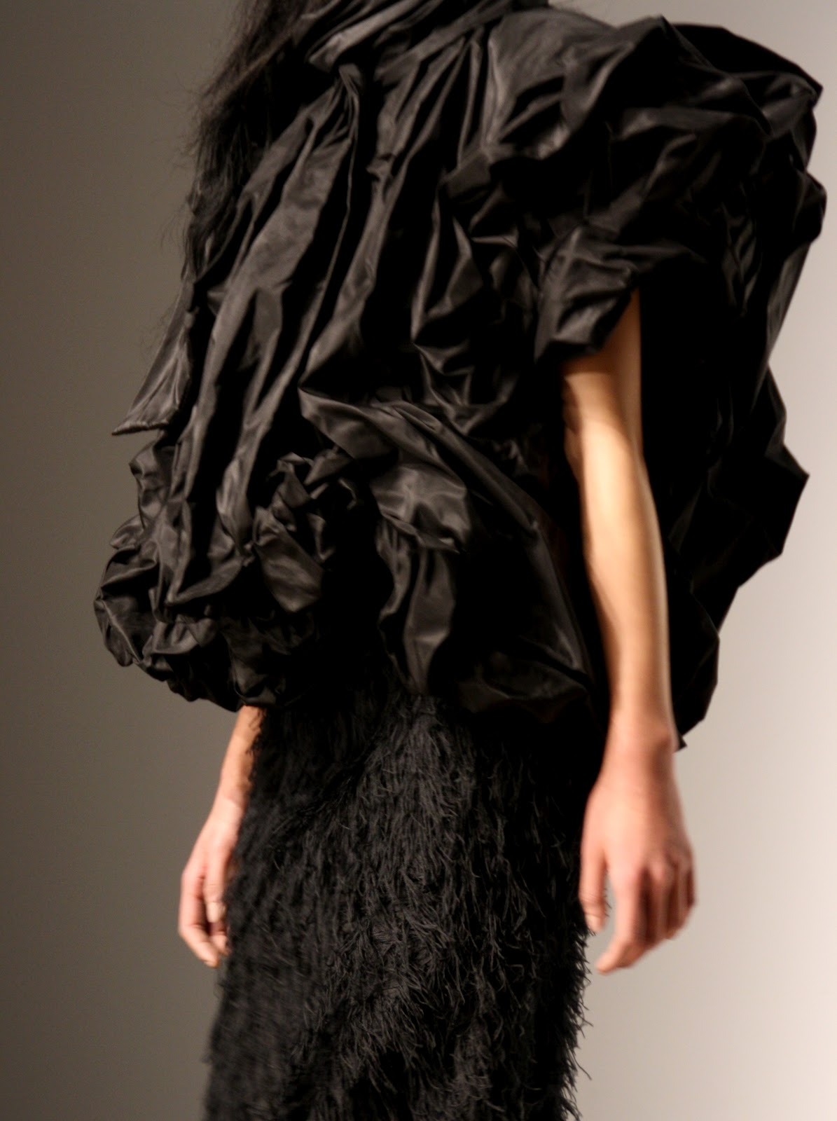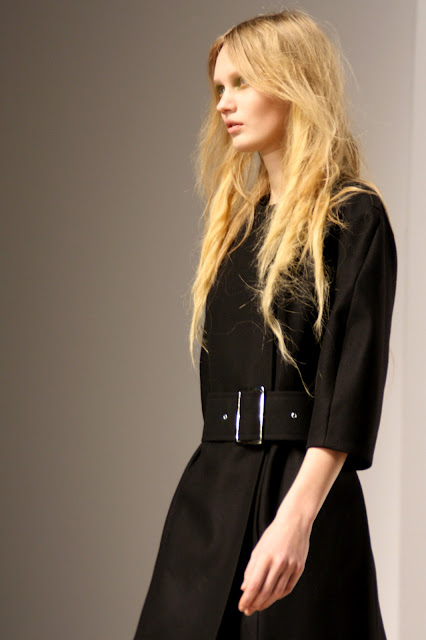 John Rocha’s collection is always a treat and this season is no different. With strong shapes such as Maxi’s with billowing bottoms, clinched in waists with belts and oversized paracute dresses with flowers, Mr Rocha has surprised us again with a complex and creative comination of black, lace and tailoring. As well as Rocha’s trade mark one colour collection, the designer has introduced some blocked shape colour dresses to bring some colour to a already very attractive collection.