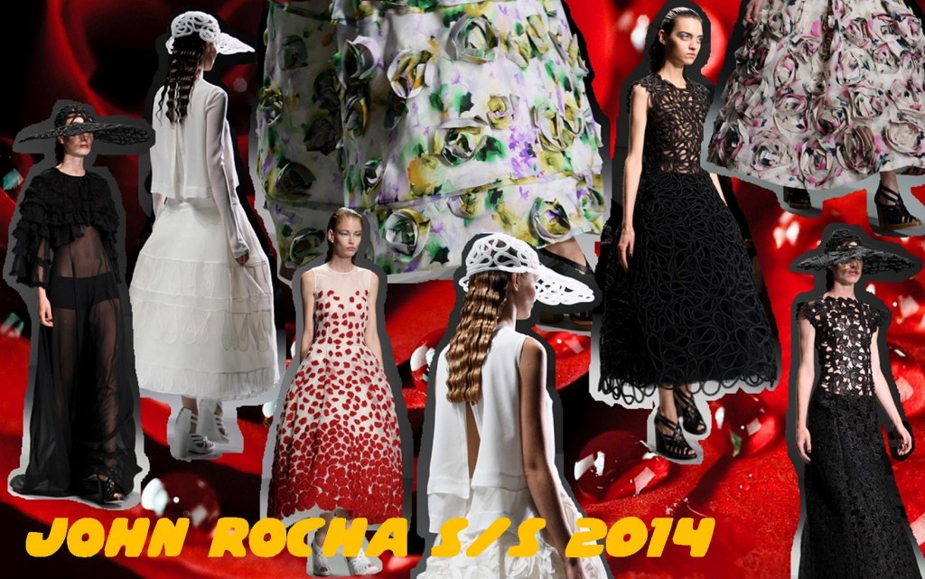 Dramatic and romantic is John Rocha’s style and his new collection embodies both those things. With lace as the main designer’s influence, black, white and red plays a big part as the main colours in John’s Palette. Blossoms and blooms are also injected as prints and material sewn onto dresses in the shapes of buds and flowers. Nude whites and sheer fabrics highlighted the softness wanted for Summer and the long floor skimming dresses were a strong contrast against the structured skirts and dresses. I think the models wavey hair and lace cord caps really topped off the show nicely and all these little details make Mr Rocha the genius he is and always will be.