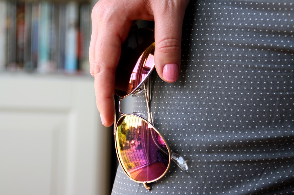 Some girls have a fetish for bags, others shoes but me, I have a thing for Sunglasses. It must have stemmed from when I was little and I used to pinch my Dad’s sunnies whenever we were on holiday and it has stuck ever since. I do have a few pairs (ok, about 40) but I couldn’t wait to show you these gorgeous sunglasses from Sunglass Junkie. With an aviator style that has pink and yellow reflective lenses, I knew these would look great with this outfit. I think the brand name also describes me pretty well and you can get your fix from their site here too!