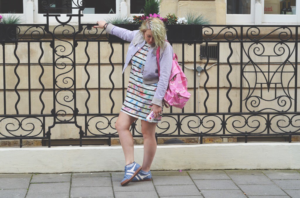 Love these trainers and colours within this outfit, and that dress is beautiful!