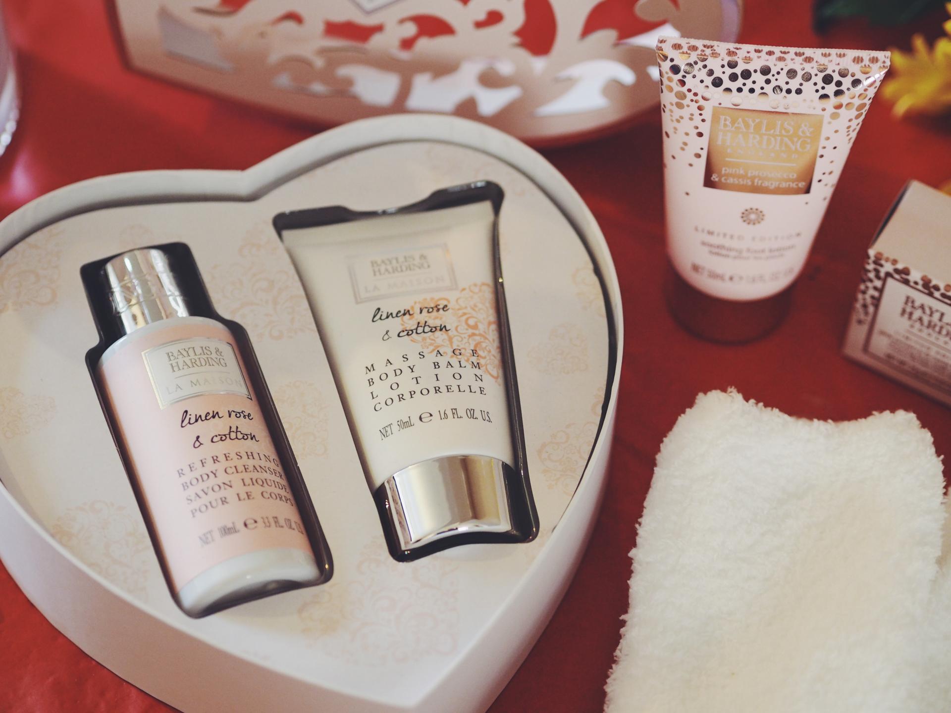 Among these glorious goodies is the Baylis & Harding Pink Prosecco & Luxury Foot Set, the La Maison Linen Rose & Cotton Luxury Bath & Shower Crème Decanter and the cute La Maison Heart Set.