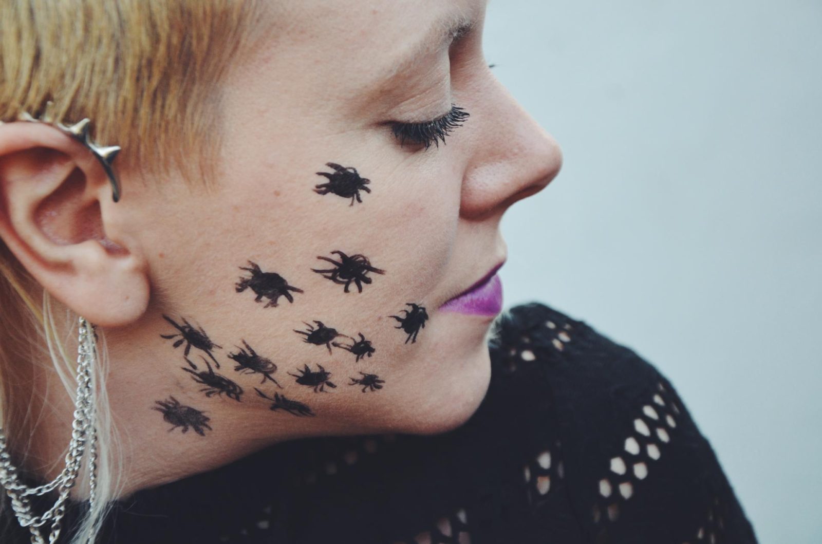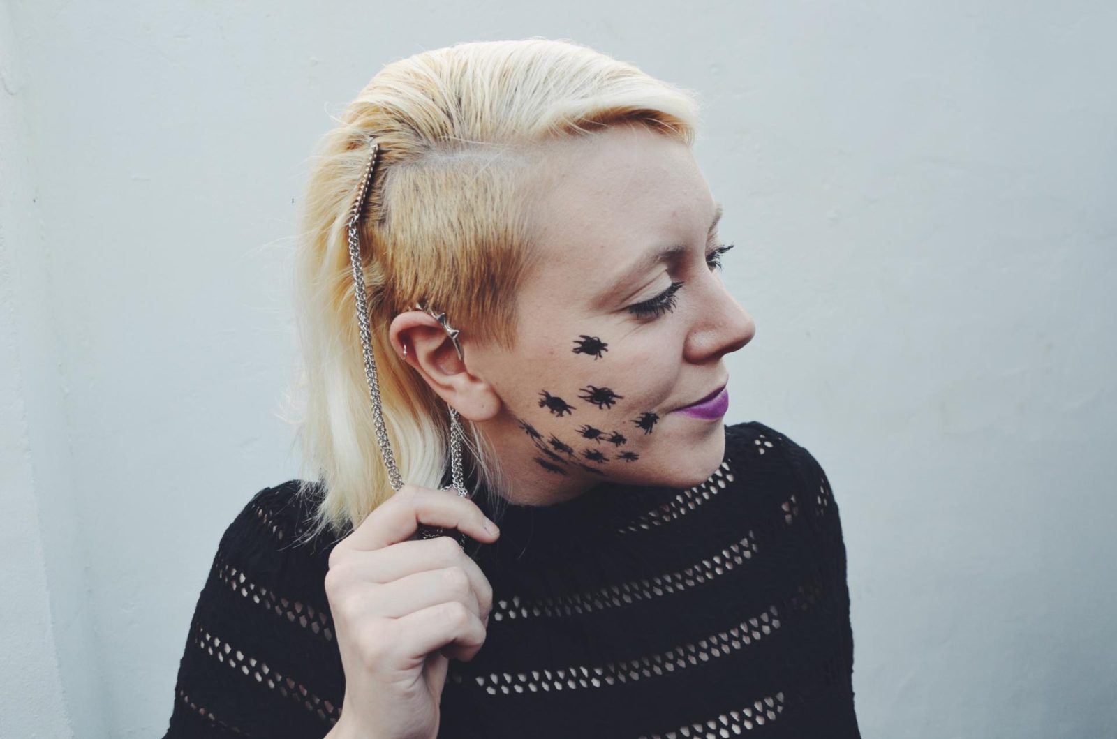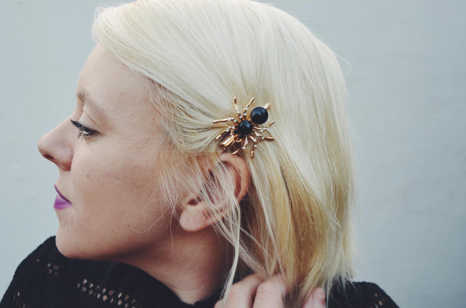 For my hair I wanted to keep it simply and try out this great ear cuff and clip from Toni and Guy which just looks amazing! It instantly gives my halloween look a punk-injection and I just had to include this gold and black Spider hair slide too which really inspired my look.