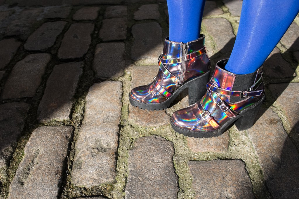I am a total addict when it comes to holograms and once I saw these boots, I knew I had to wear them for Fashion week! I love that the colours really pop in the sunshine and they are pretty comfortable (even though they are pretty high). These would look great with a playsuit or even your favourite denim shorts for summer and are available from Fashion Union.