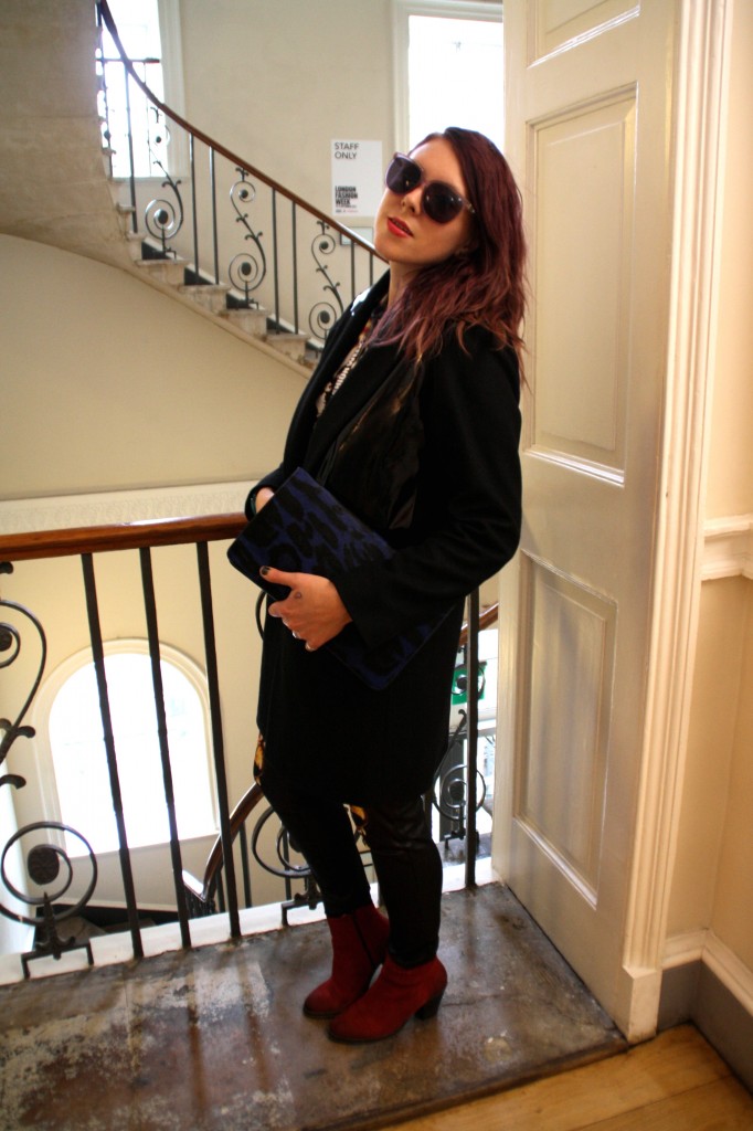 Finally it’s the last day of LFW and the bitter cold has forced me to wear a coat but I am not complaining as it is a lovely one from ASOS which I have been pining to wear for ages. With its PVC panels on the front and it’s oversize mannish style, it’s totally on-trend and has that chic factor which will keep me in style for many seasons to come.